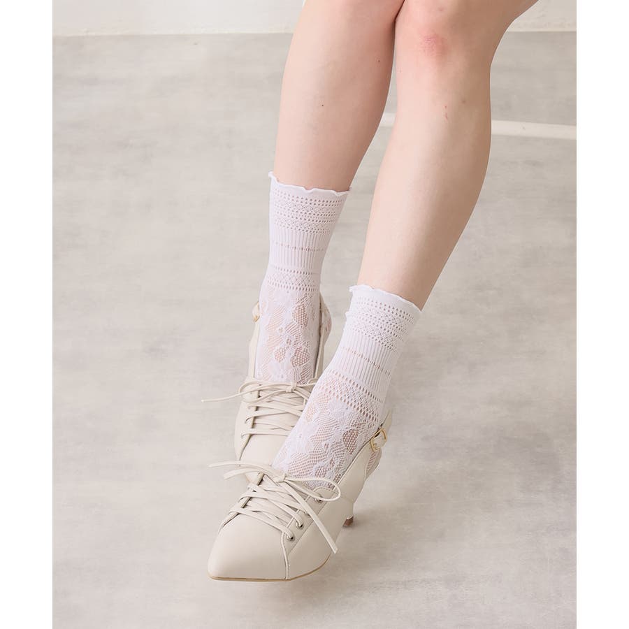 甲部分の編み上げ紐が足元に抜け感と立体感をプラスし、こなれた印象に。