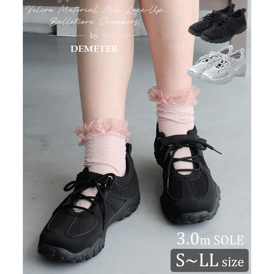 レディース/DMTR/DEMETER/デメテル/シューズ/靴/パンプス/スニーカー/ダッドスニーカー/ボリュームスニーカー/サンダル/ローファー/マニッシュ/ブーツ/ショートブーツ/ロングブーツ/ヒール/チャンキーヒール/太ヒール/厚底/厚底ソール/ボリュームソール/プラットフォーム/バルキー/美脚/脚長/人気/プチプラ/韓国/韓国ファッション/おすすめ/カジュアル/キレイめ/おしゃれ/オシャレ/お洒落/秋/冬/秋冬/秋物/冬物/春/夏/春夏/春物/夏物/新作/AW/SS/セクシー/大人/ストリート/シンプル/バレエコア/バレエコアスニーカー/バレエコアシューズ/レースアップ/レースアップシューズ/レースアップスニーカー/ベルクロバンド/ベルクロスニーカー/ベルクロシューズ/ベルクロスニーカー/ソックスコーデ/クッション/クッション性/ガーリー/フェミニン/デザインソール/スポーティー/クール/モード/スタイルアップ/オールシーズン/トレンド/デイリー/安定感/歩きやすい/履きやすい/S/M/L/LL/黒/BLACK/シルバー/SILVER/素材MIX/異素材