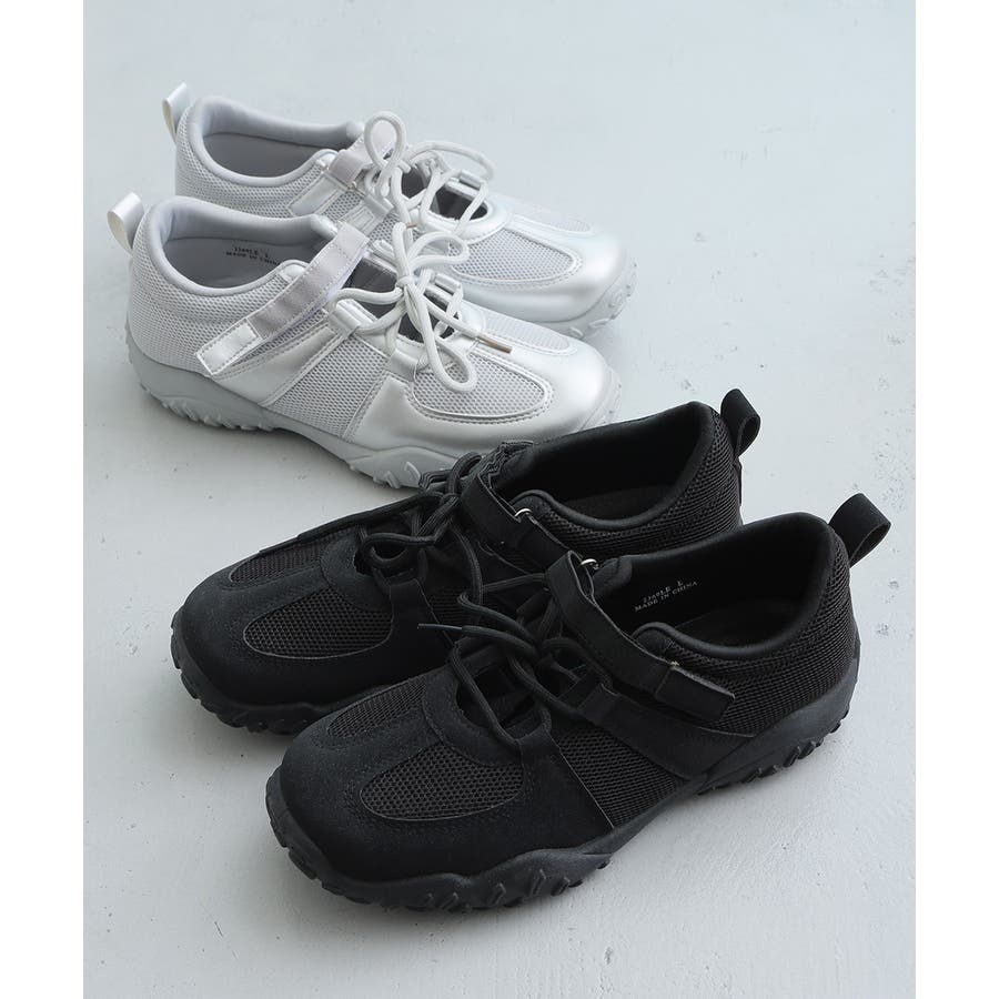 【26年春夏新作】ベルクロ 素材MIX レースアップスニーカー