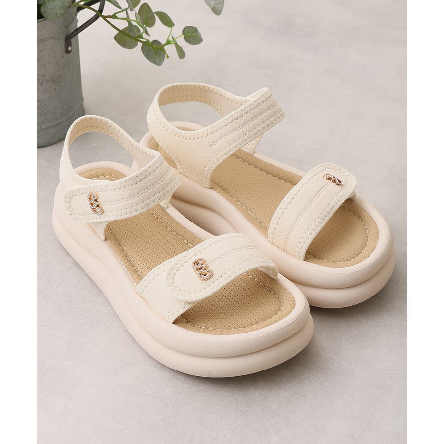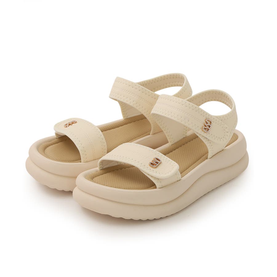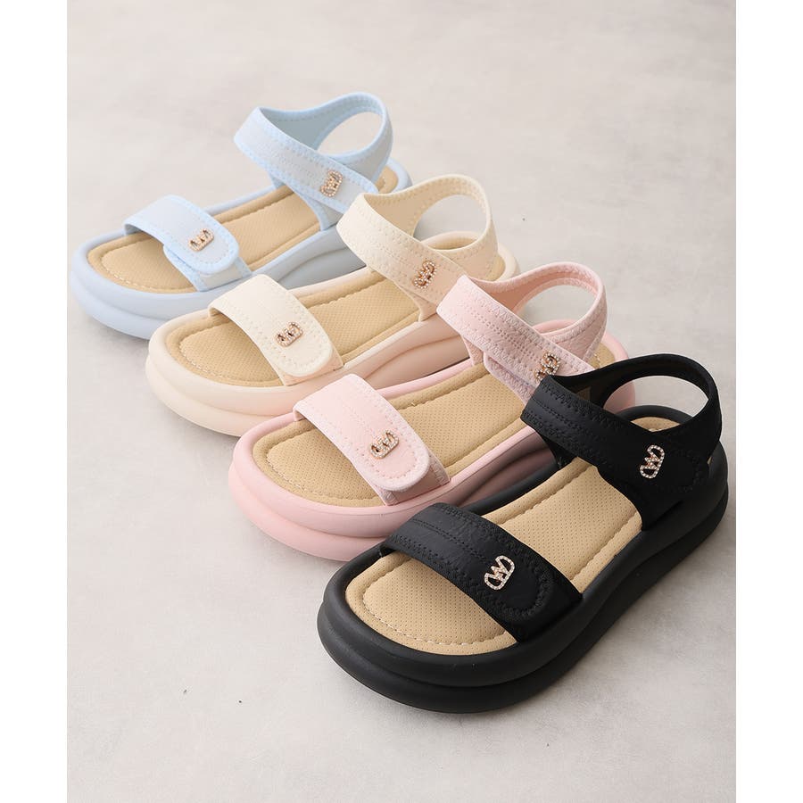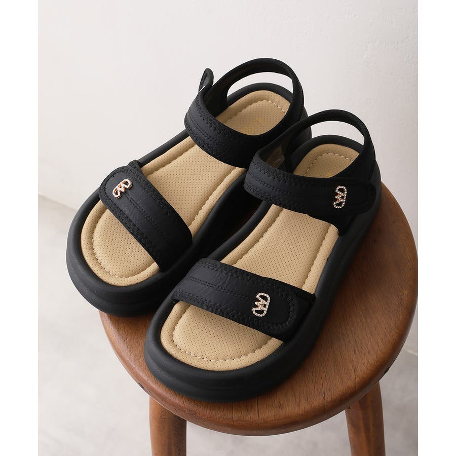 【26年春夏新作】厚底 ダブルソール ビジュー ベルクロ スポーツサンダル