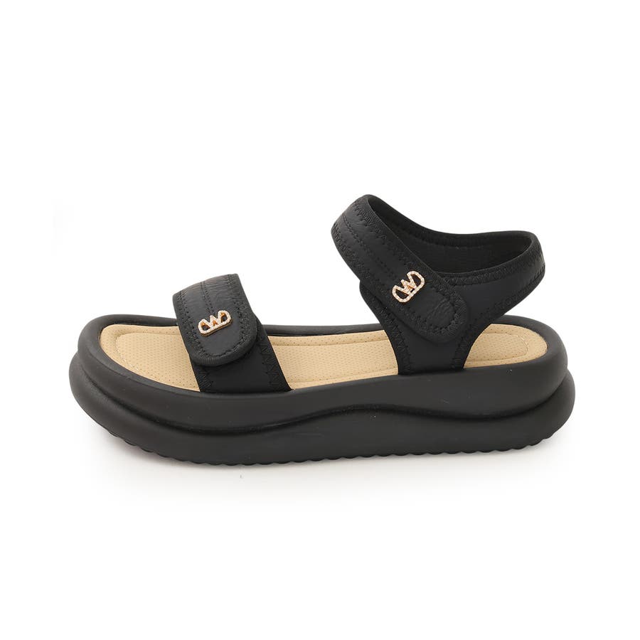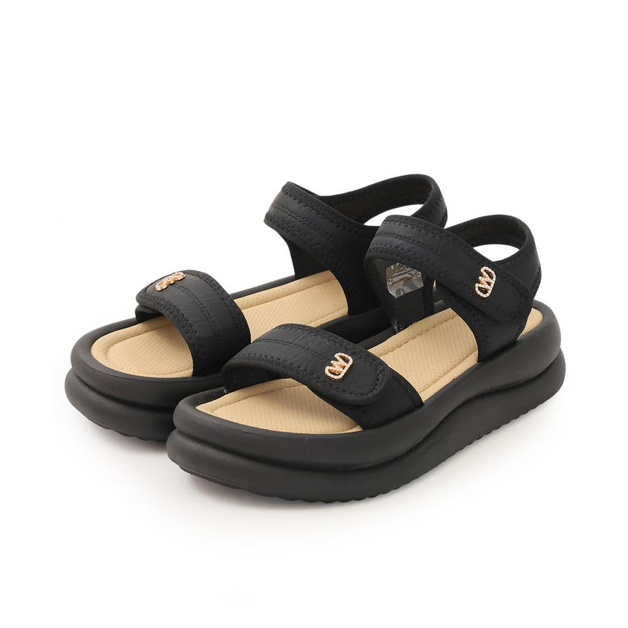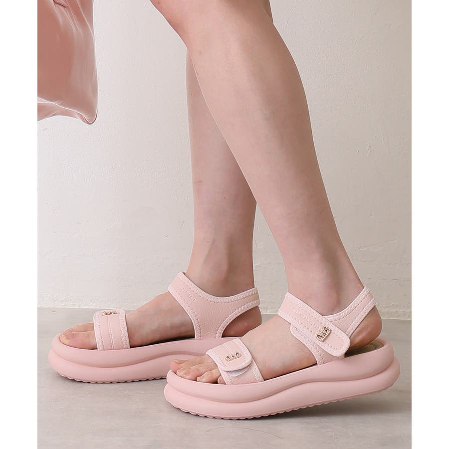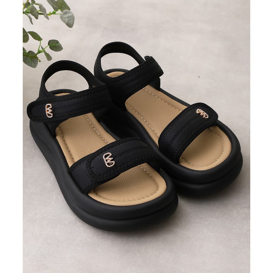 【26年春夏新作】厚底 ダブルソール ビジュー ベルクロ スポーツサンダル