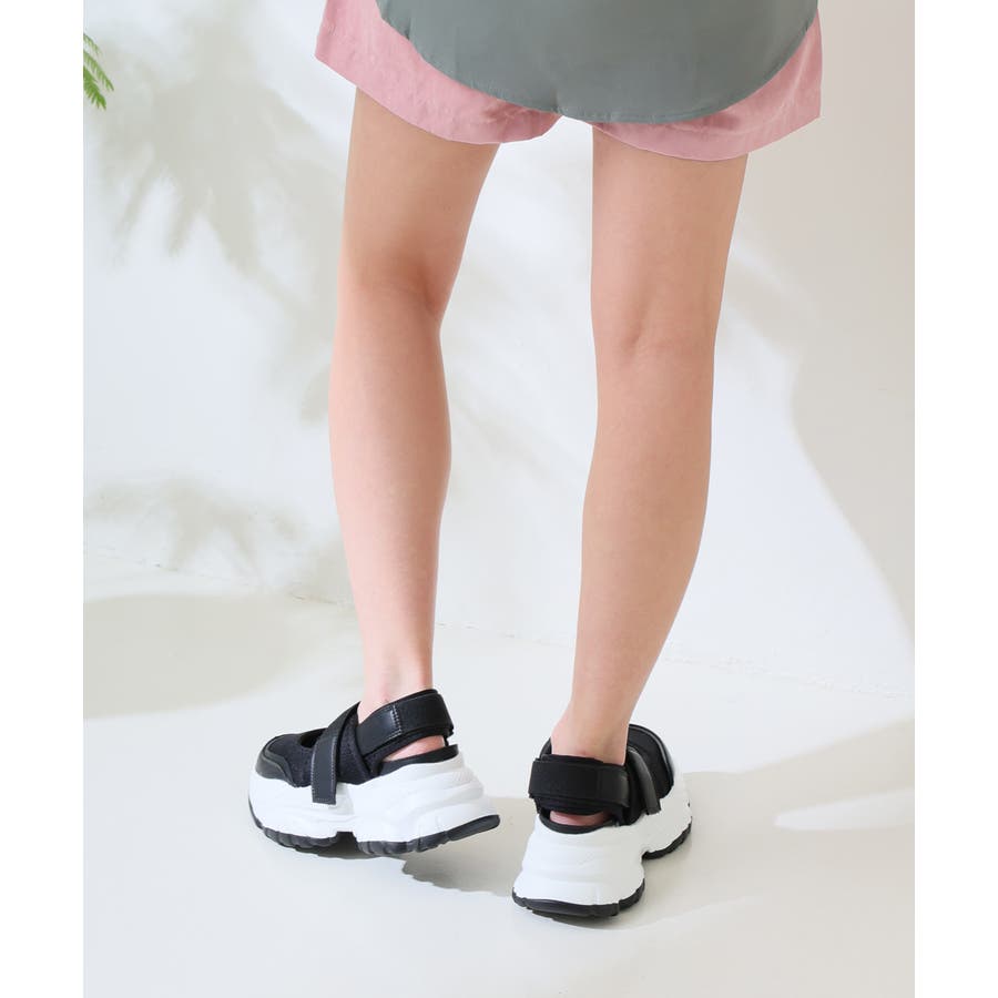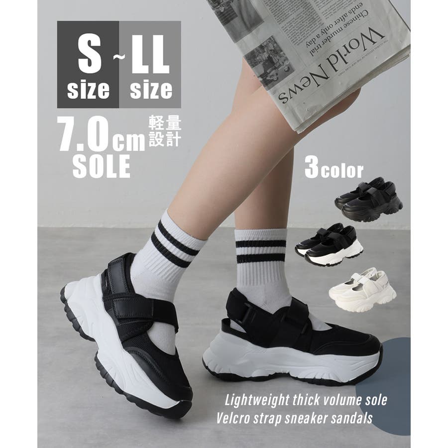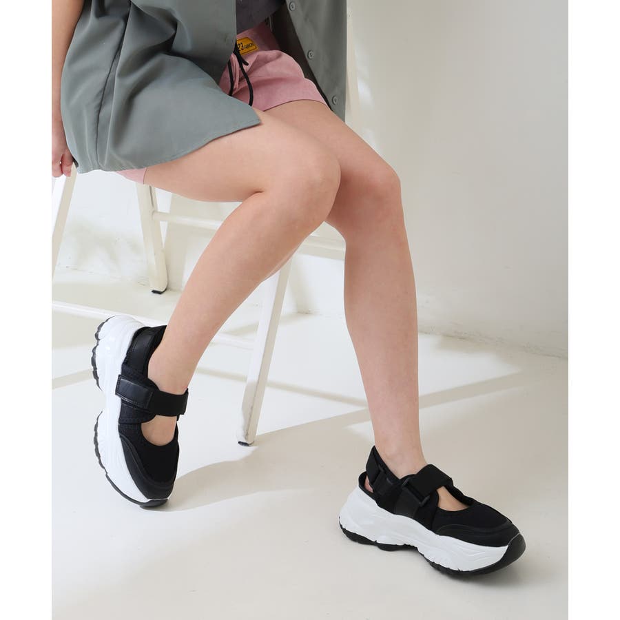 【軽量 厚底 ボリュームソール ベルクロストラップ スニーカーサンダル】