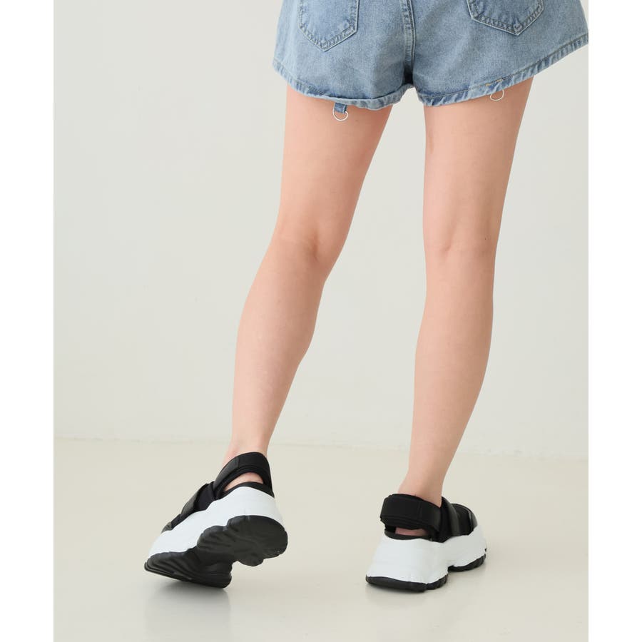 かかとはベルクロデザインで後ろから見た時にスポーティーなアクセントに。(※かかとベルトは調節不可になります)