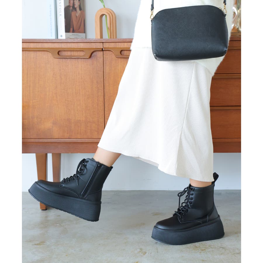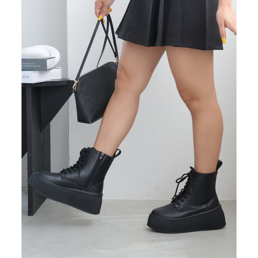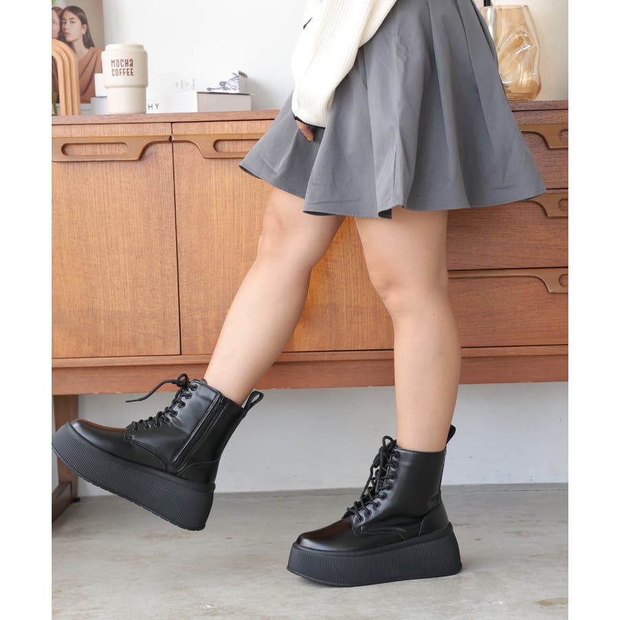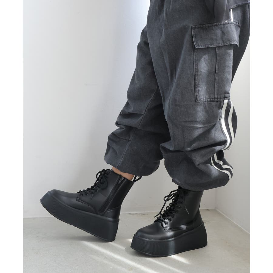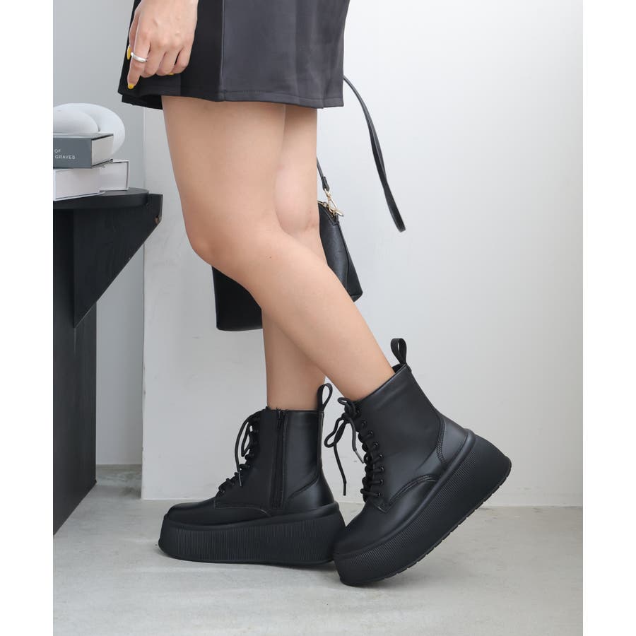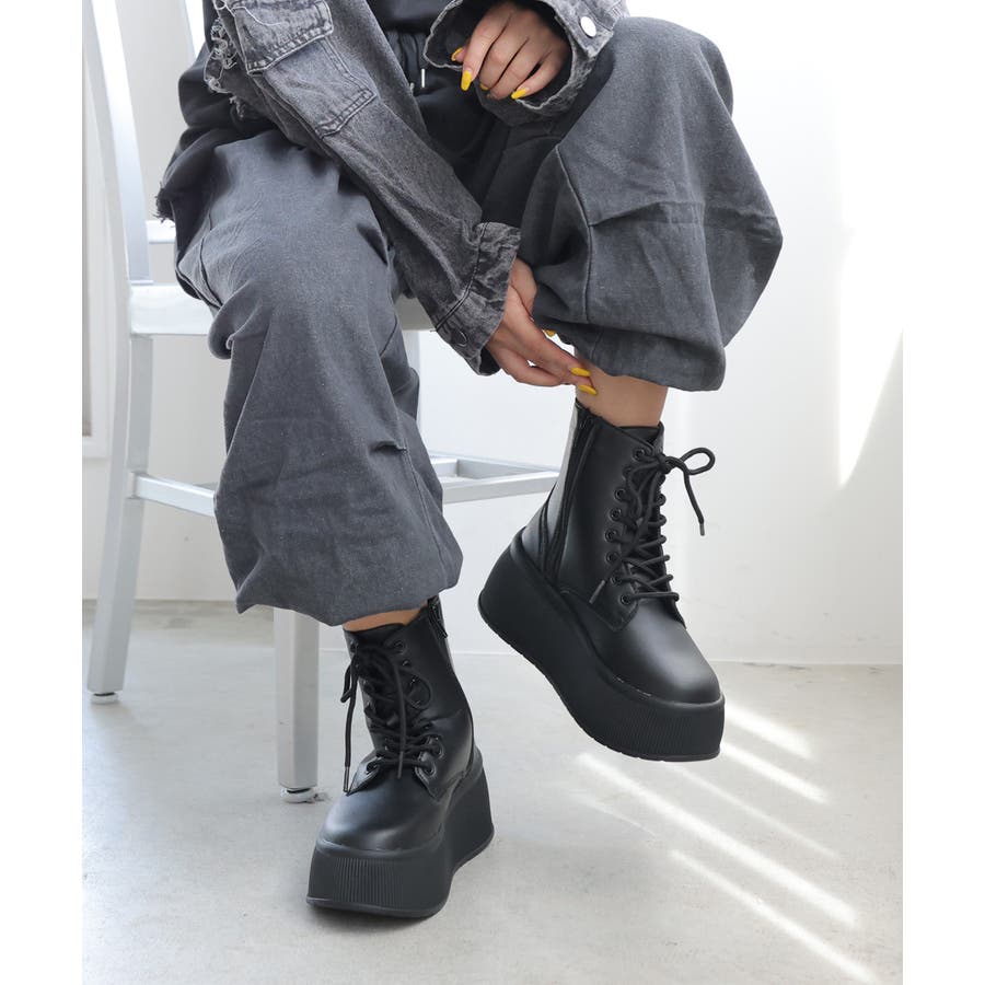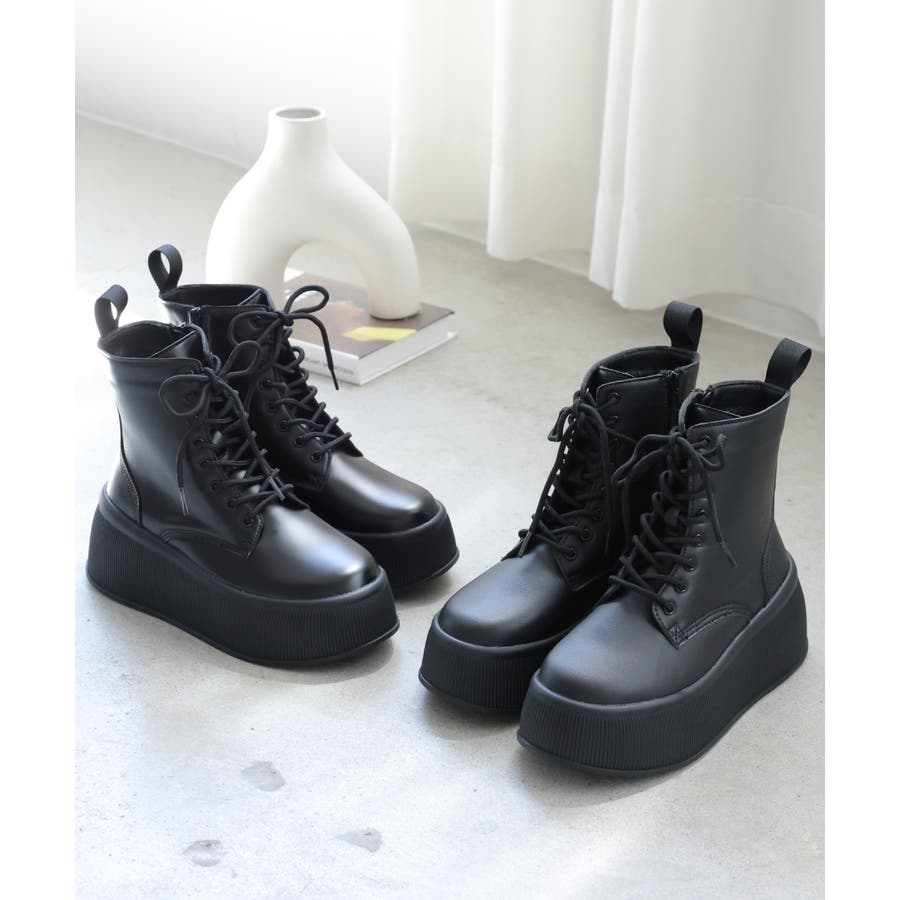 定番のレースアップショートブーツも厚底プラットフォームデザインでトレンド感あふれる今どきブーツに!!