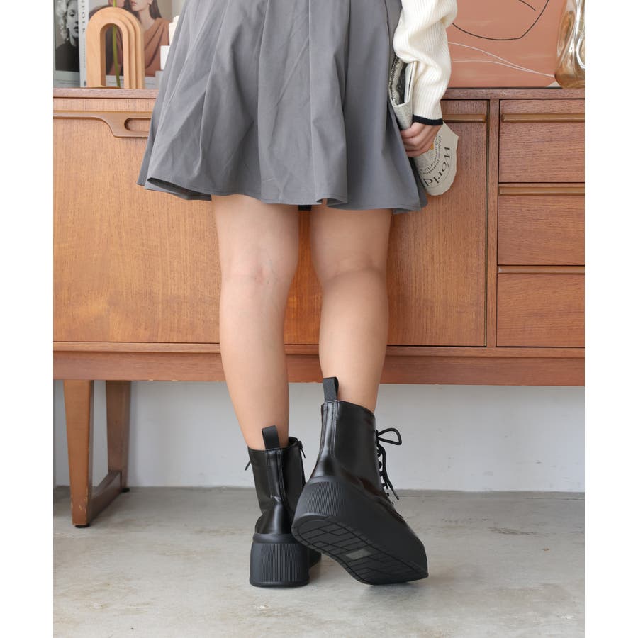 【24年秋冬新作】厚底 プラットフォーム レースアップ ショートブーツ