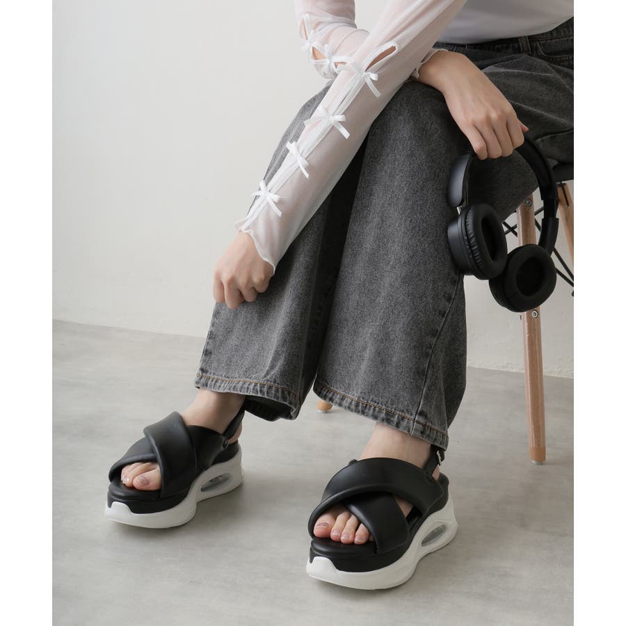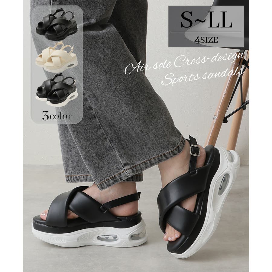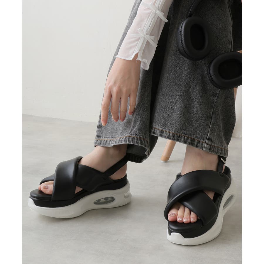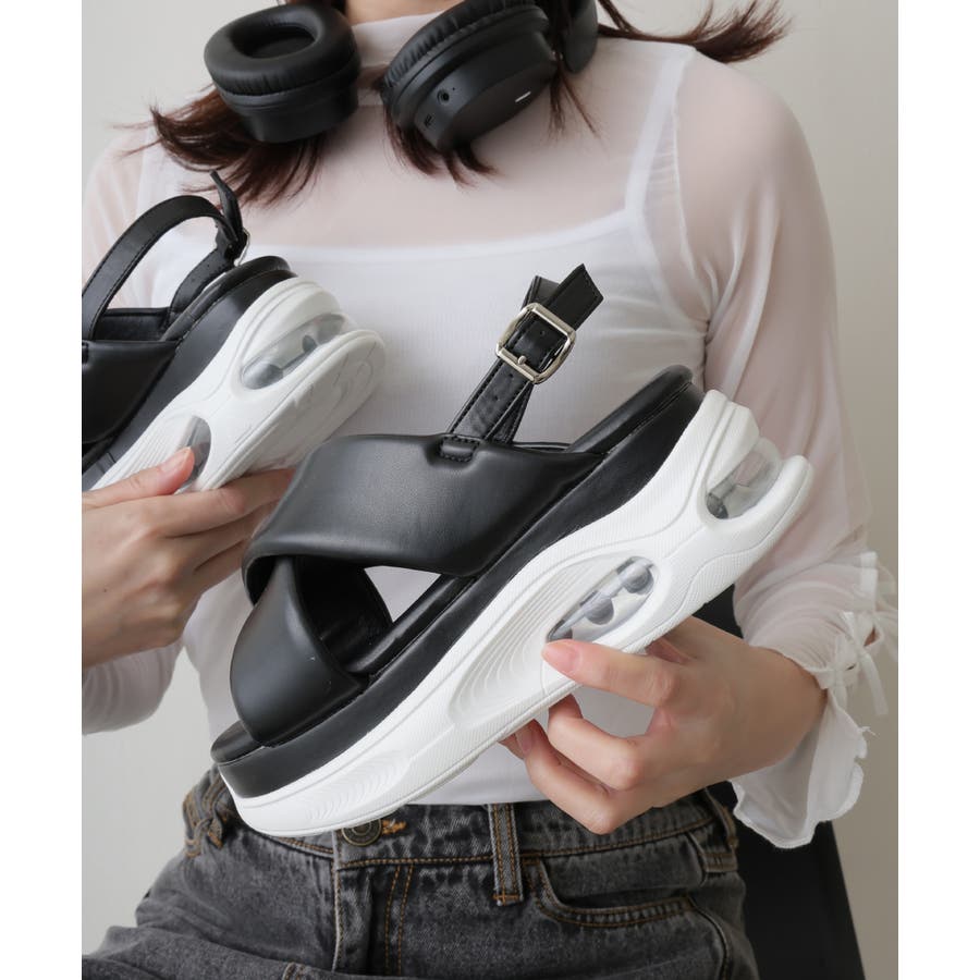 【25年春夏新作】厚底 エアーソール クロスデザイン スポーツサンダル
