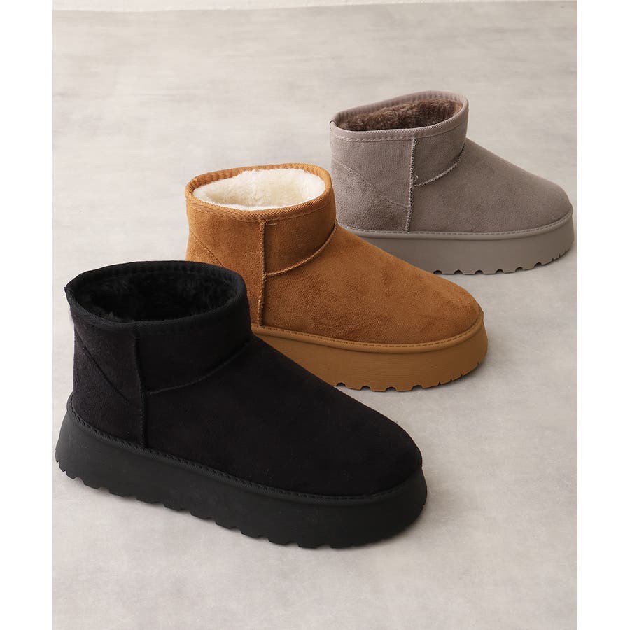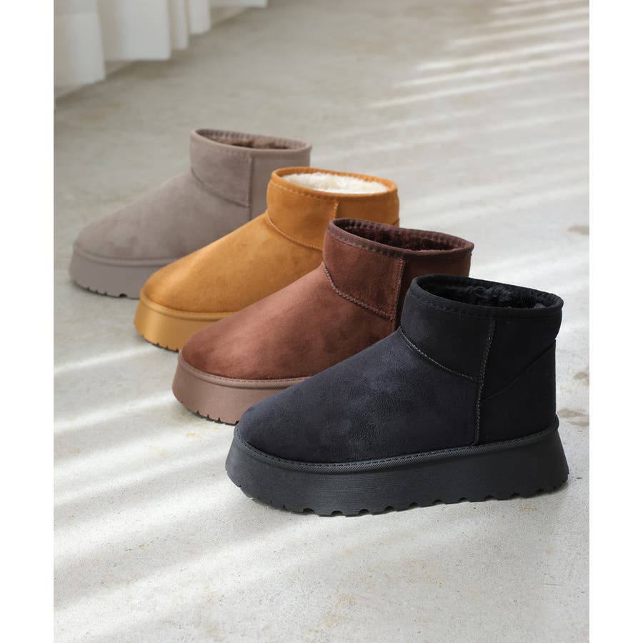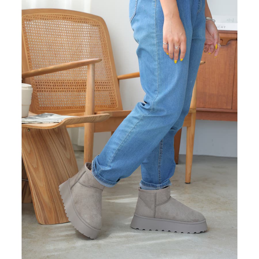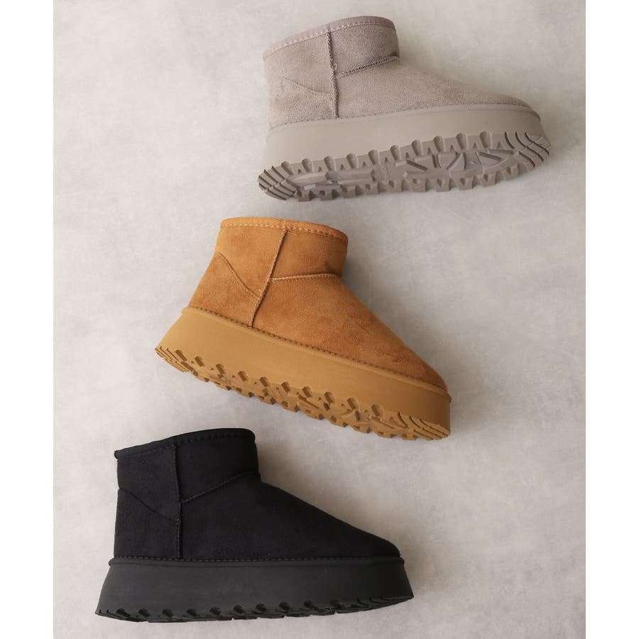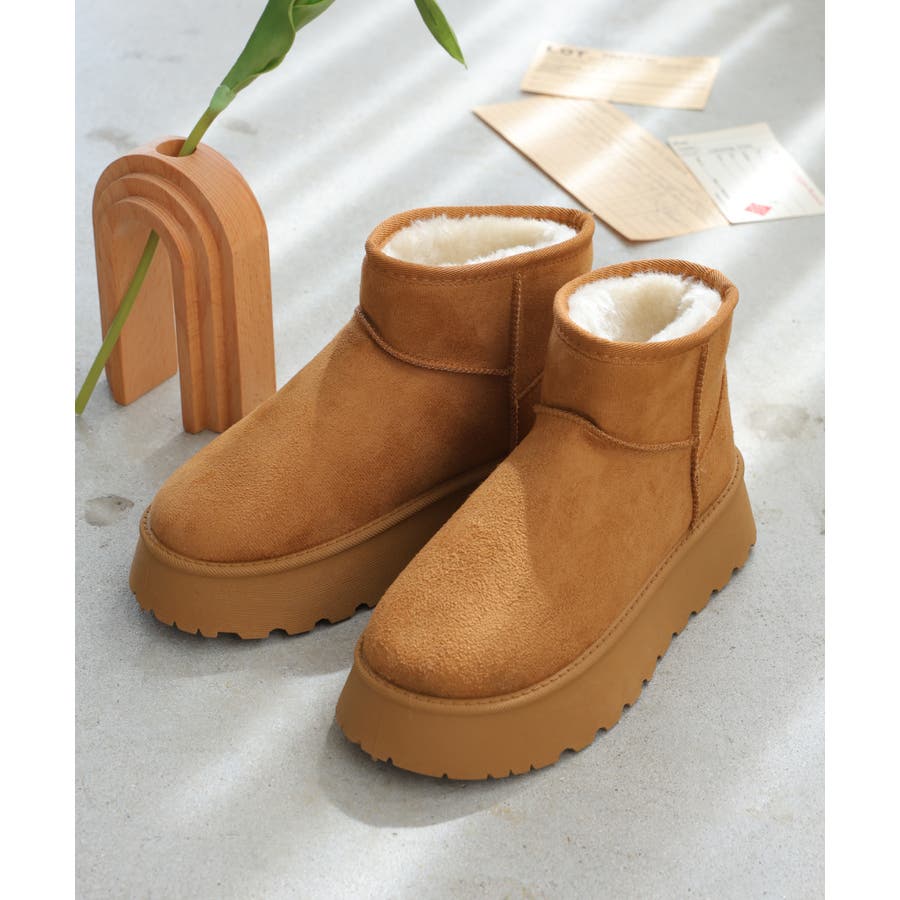 【24年秋冬再販】厚底ソール ボリュームファー ショート丈 ムートンブーツ