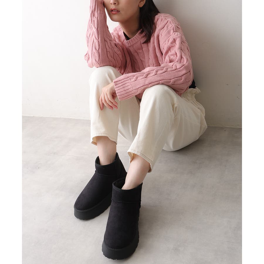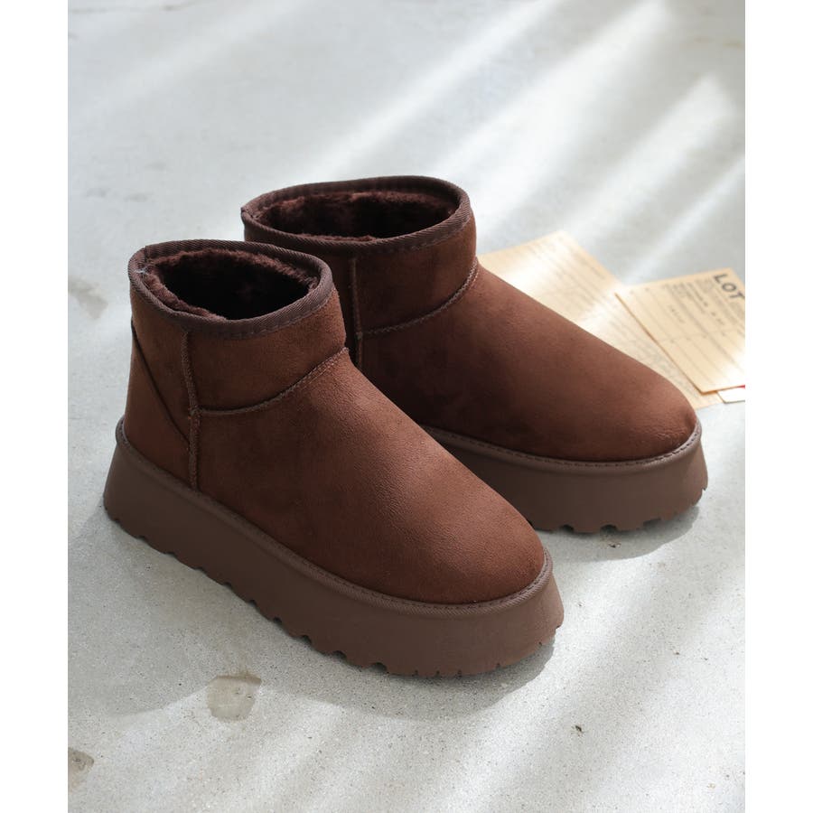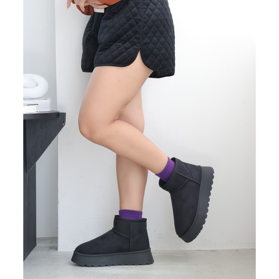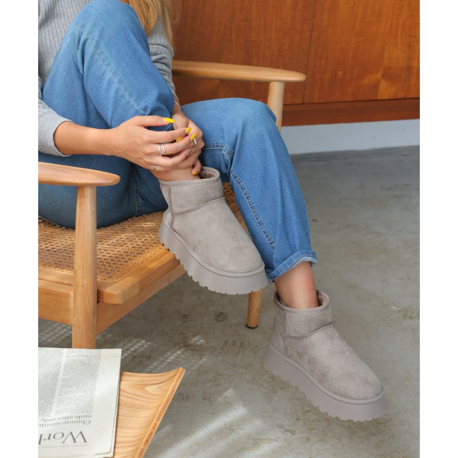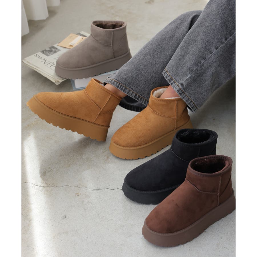 【24年秋冬再販】厚底ソール ボリュームファー ショート丈 ムートンブーツ