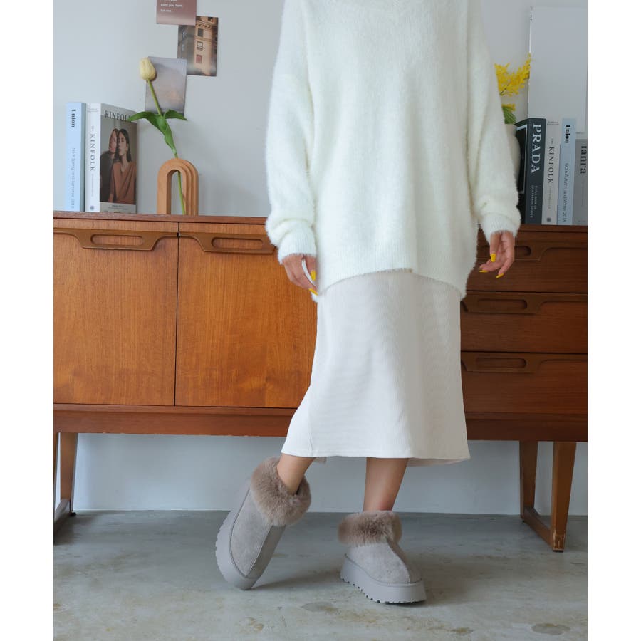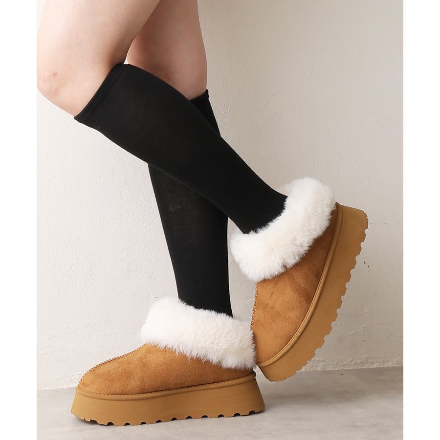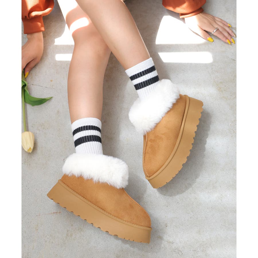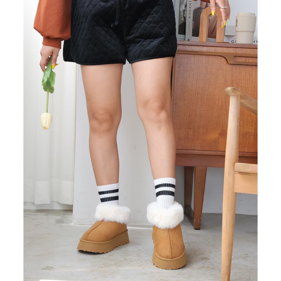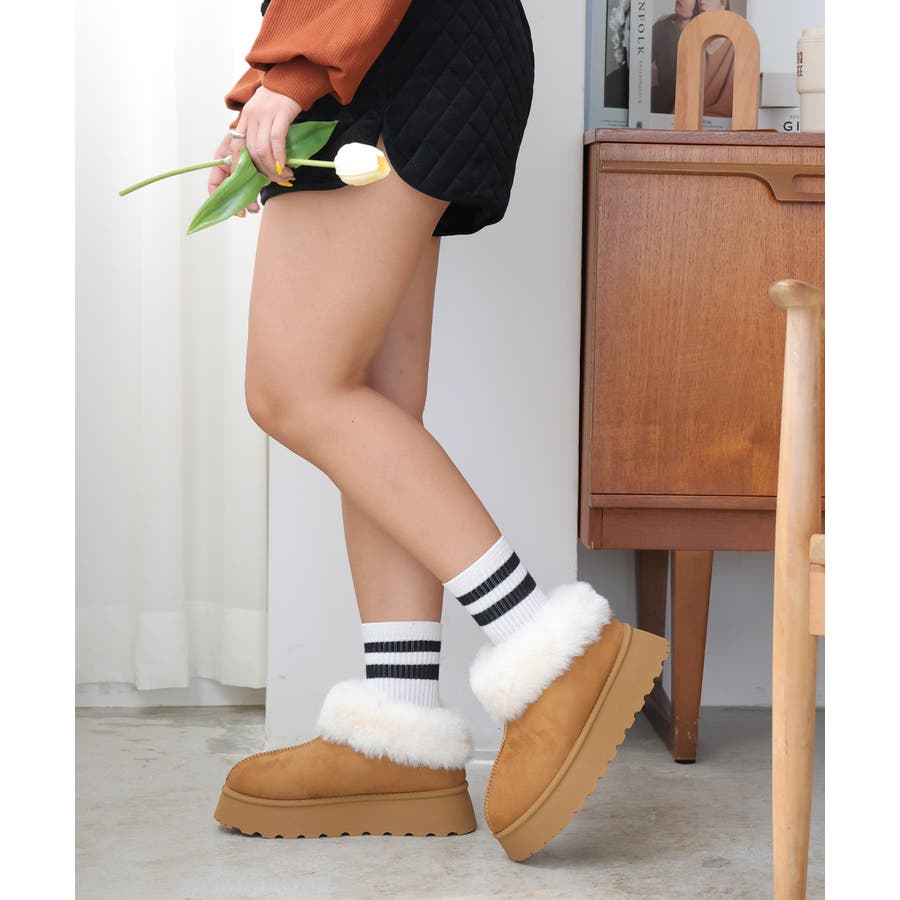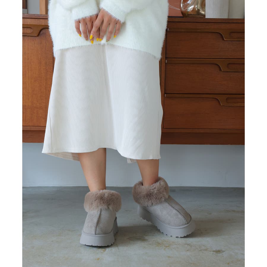 【24年秋冬新作】厚底ソール ボリュームファー アンクル丈 ムートンブーツ