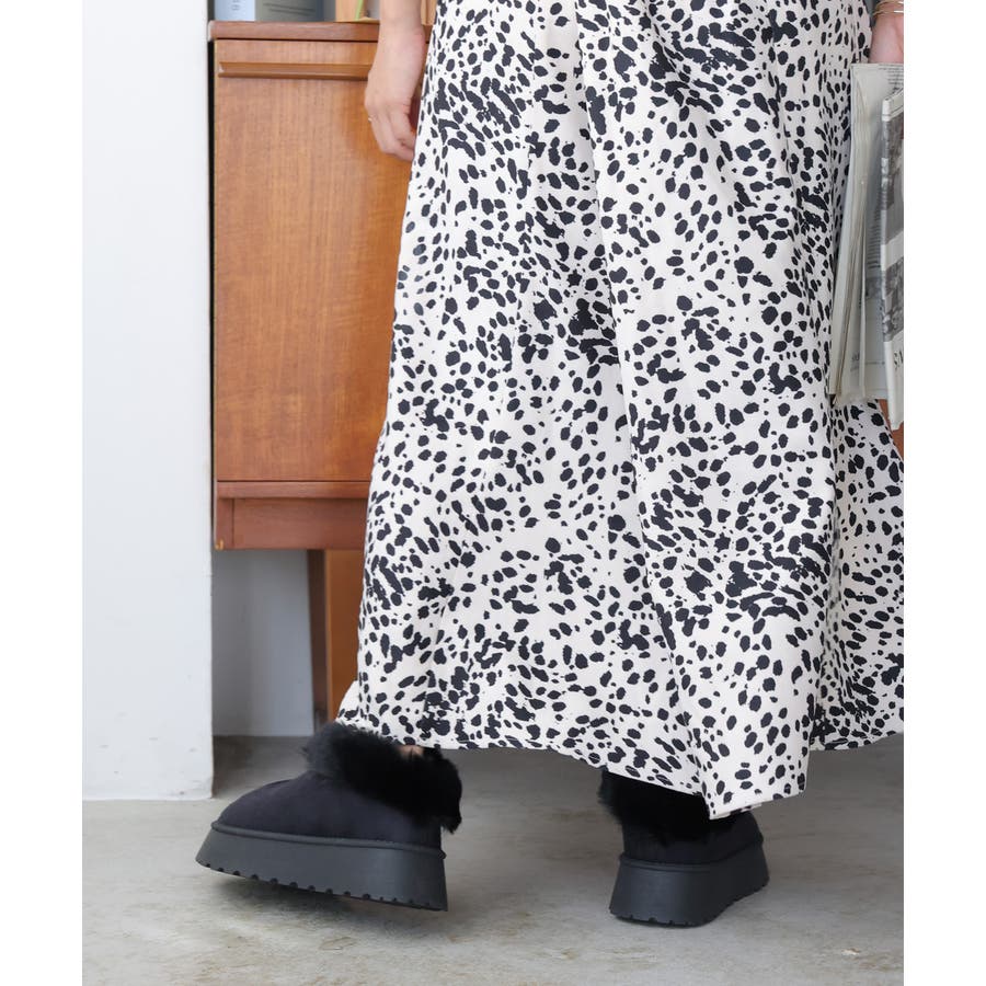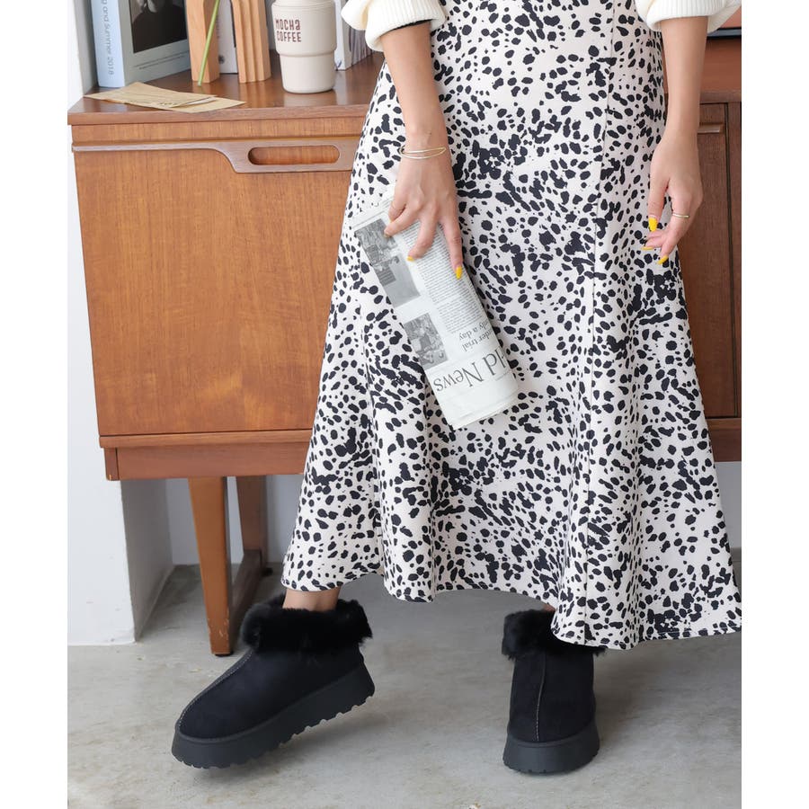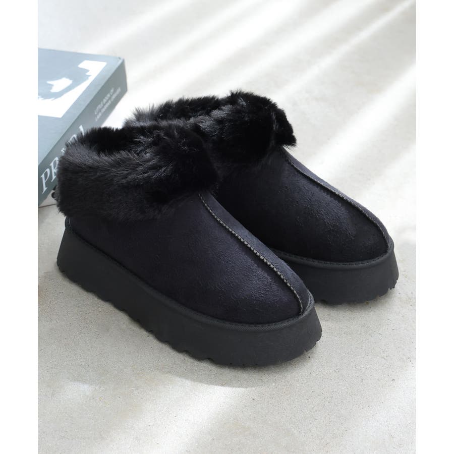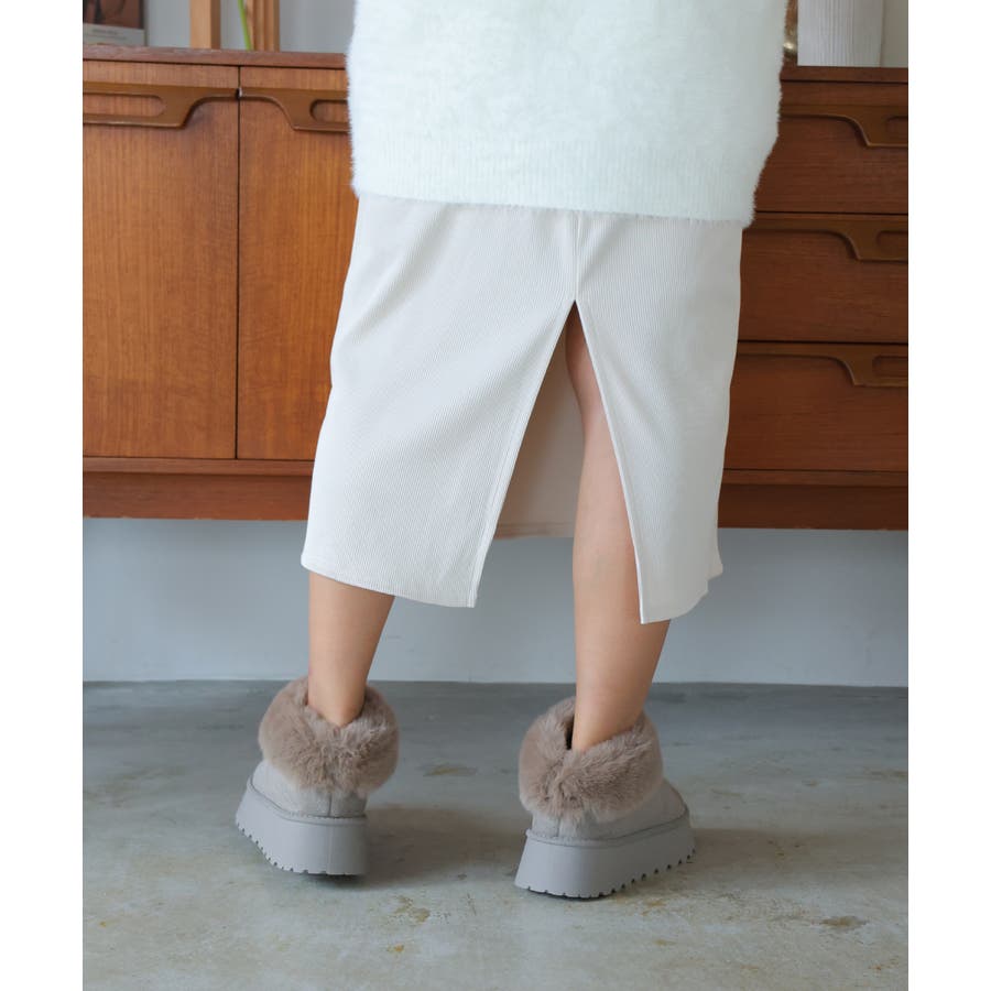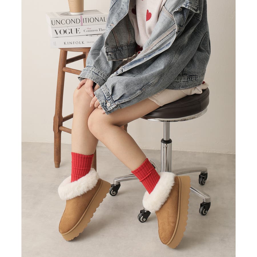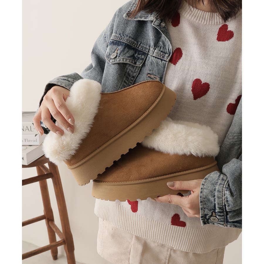 【24年秋冬新作】厚底ソール ボリュームファー アンクル丈 ムートンブーツ