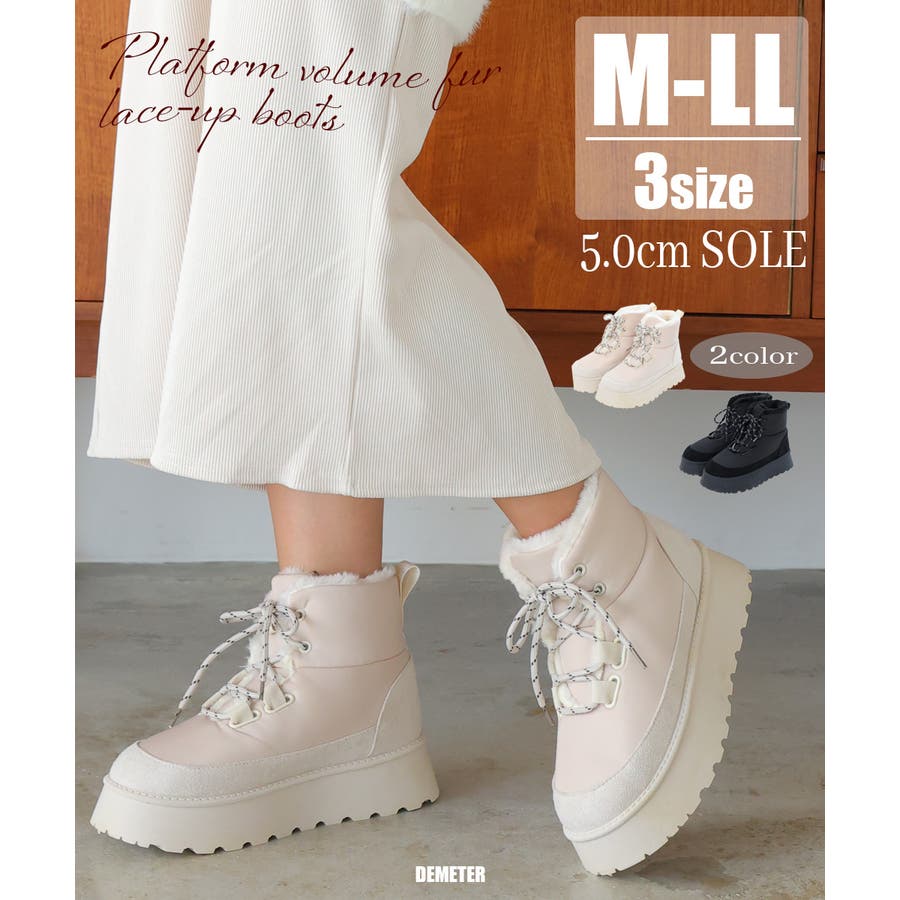 レディース/DEMETER/デメテル/シューズ/パンプス/スニーカー/ダッドスニーカー/ボリュームスニーカー/サンダル/ローファー/マニッシュ/ブーツ/ショートブーツ/ロングブーツ/ヒール/チャンキーヒール/太ヒール/厚底/厚底ソール/ボリュームソール/プラットフォーム/バルキー/美脚/脚長/人気/プチプラ/韓国/韓国ファッション/おすすめ/カジュアル/キレイめ/おしゃれ/オシャレ/お洒落/秋/冬/秋冬/秋物/冬物/春/夏/春夏/春物/夏物/新作/AW/SS/セクシー/大人/ストリート/シンプル/レースアップ/レースアップブーツ/定番/ベーシック厚底ブーツ/ボア/ふわふわ/もこもこ/フェイクファー/フェイクファーブーツ/ボリュームファー/ボリュームファーブーツ/スノーブーツ/ムートン/ムートンブーツ/ミドル丈/防寒/暖かい/S/M/L/LL/黒/ブラック/BLACK/白/ホワイト/WHITE/アイボリー/IVORY