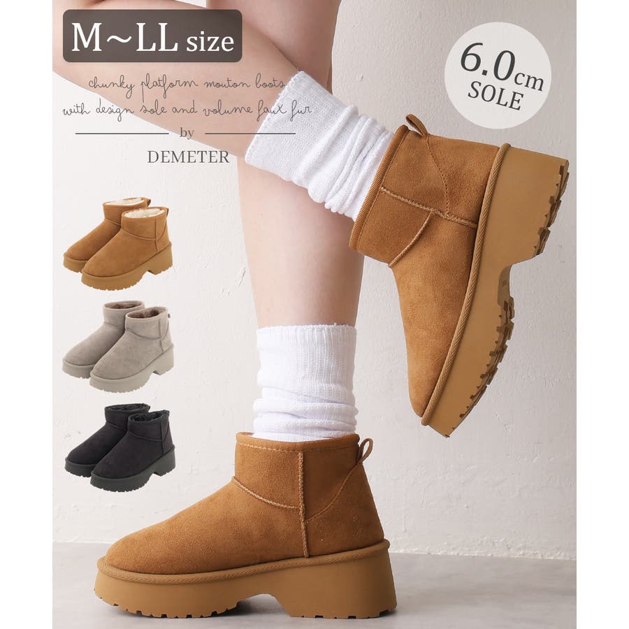レディース/DMTR/DEMETER/デメテル/シューズ/靴/パンプス/スニーカー/ダッドスニーカー/ボリュームスニーカー/サンダル/ローファー/マニッシュ/ブーツ/ショートブーツ/ロングブーツ/ヒール/チャンキーヒール/太ヒール/厚底/厚底ソール/ボリュームソール/プラットフォーム/バルキー/美脚/脚長/人気/プチプラ/韓国/韓国ファッション/おすすめ/カジュアル/キレイめ/おしゃれ/オシャレ/お洒落/秋/冬/秋冬/秋物/冬物/春/夏/春夏/春物/夏物/新作/AW/SS/セクシー/大人/ストリート/シンプル/ムートンブーツ/ショートブーツ/厚底ショートブーツ/ムートン/ボリュームファー/ファー/ファー付き/ボリューム感/ボリューム/ボア/ボアブーツ/ファームートン/厚底ムートンブーツ/厚底ファームートン/トレンド/ガーリー/クール/防寒/冬用/暖かい/あたたかい/もこもこ/ふわふわ/ふわもこ/モード感/スタイルアップ/デイリー/カジュアル/安定感/厚底サンダル/歩きやすい/履きやすい/M/L/LL/黒/BLACK/ブラック/茶色/キャメル/CAMEL/オーク/OAK
