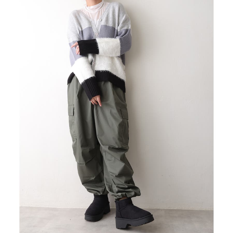 ミニ丈ボトムスやワイドパンツと相性抜群で、バランスよく大人カジュアルにまとまります♪