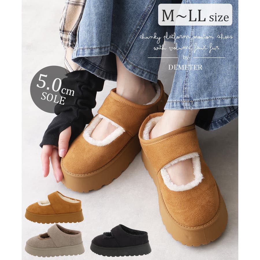 レディース/DMTR/DEMETER/デメテル/シューズ/靴/パンプス/スニーカー/ダッドスニーカー/ボリュームスニーカー/サンダル/ローファー/マニッシュ/ブーツ/ショートブーツ/ロングブーツ/ヒール/チャンキーヒール/太ヒール/厚底/厚底ソール/ボリュームソール/プラットフォーム/バルキー/美脚/脚長/人気/プチプラ/韓国/韓国ファッション/おすすめ/カジュアル/キレイめ/おしゃれ/オシャレ/お洒落/秋/冬/秋冬/秋物/冬物/春/夏/春夏/春物/夏物/新作/AW/SS/セクシー/大人/ストリート/シンプル/ムートンシューズ/ムートン/ムートンブーツ/ボリュームファー/ファー/ファー付き/ボリューム感/ボリューム/ボア/ボアシューズ/ファームートン/厚底ムートンブーツ/厚底ファームトン/トレンド/ガーリー/クール/防寒/冬用/暖かい/あたたかい/もこもこ/ふわふわ/ふわもこ/モード感/スタイルアップ/デイリー/カジュアル/安定感/厚底サンダル/歩きやすい/履きやすい/M/L/LL/黒/BLACK/ブラック/茶色/キャメル/CAMEL/オーク/OAK