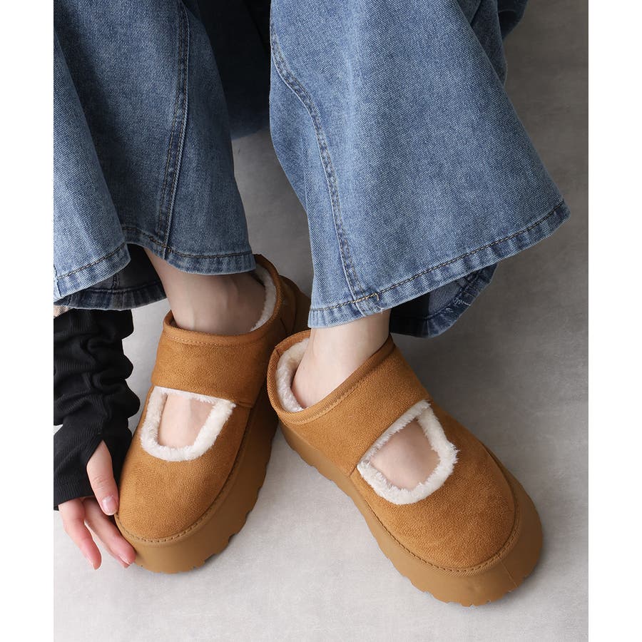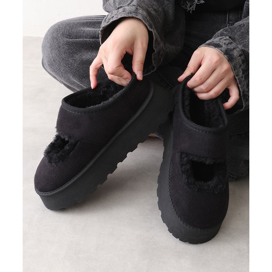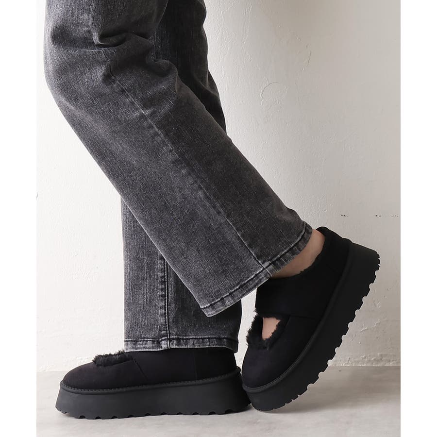 【25年秋冬新作】厚底 ボリュームファー ムートンシューズ