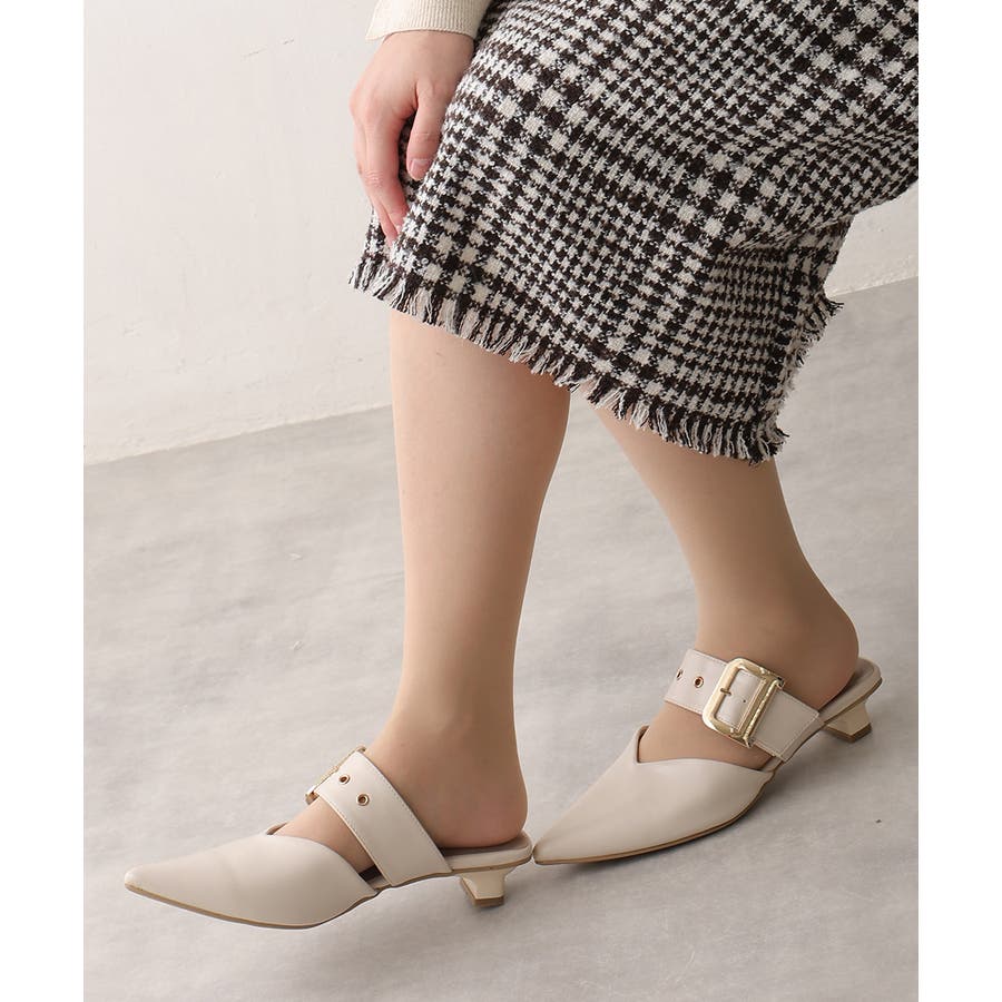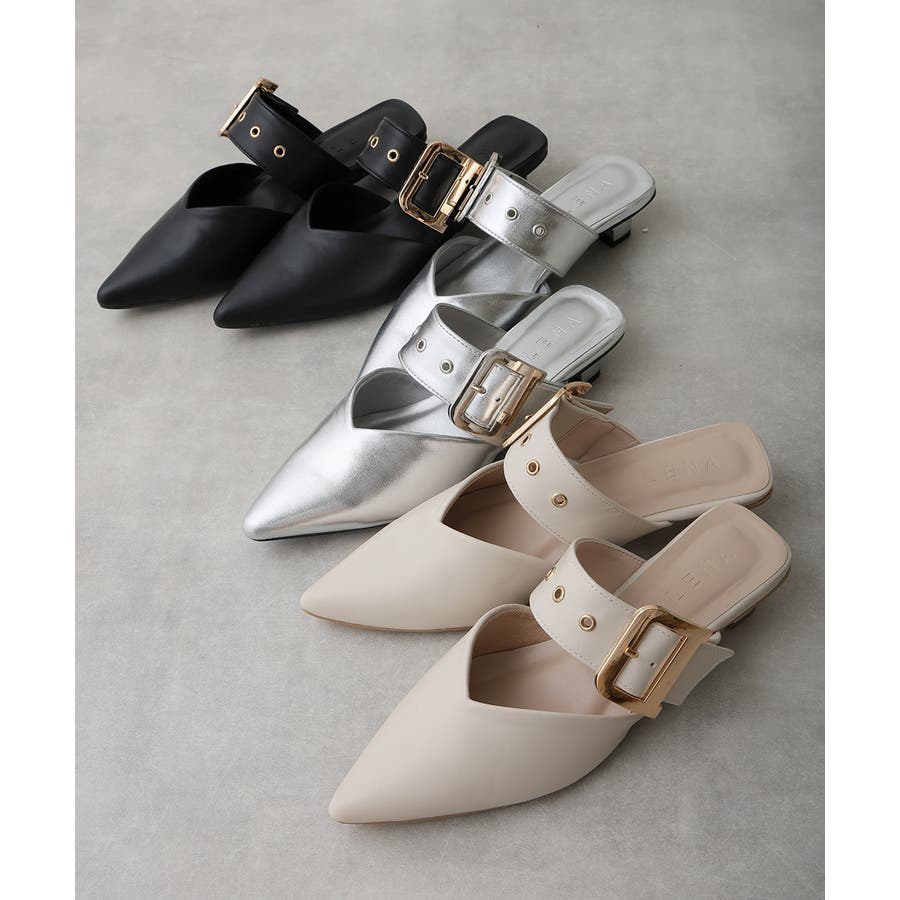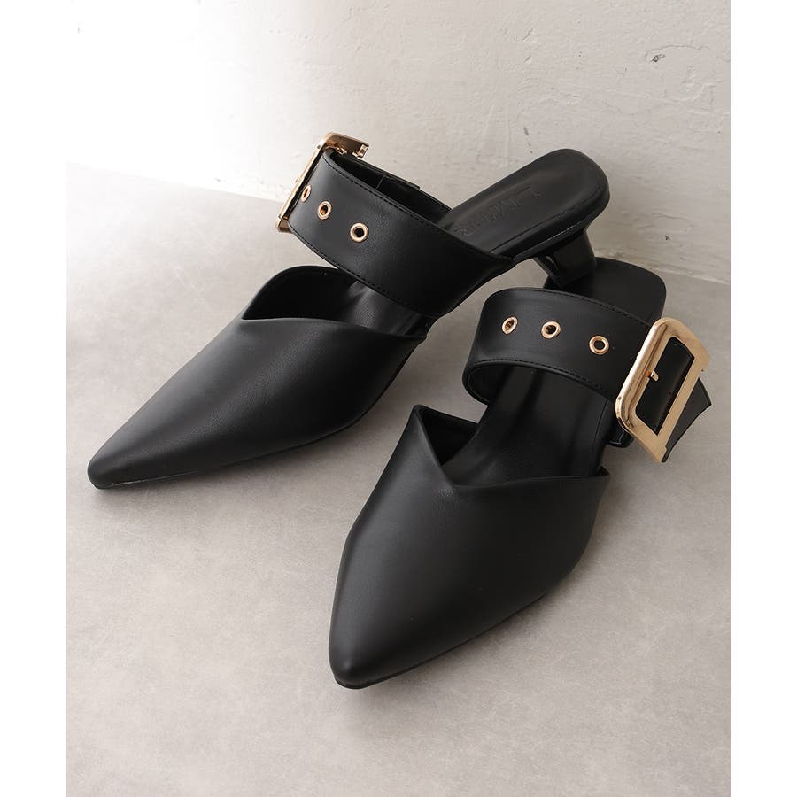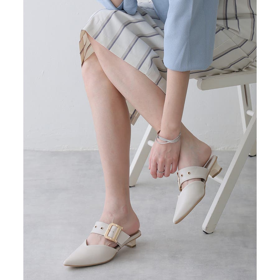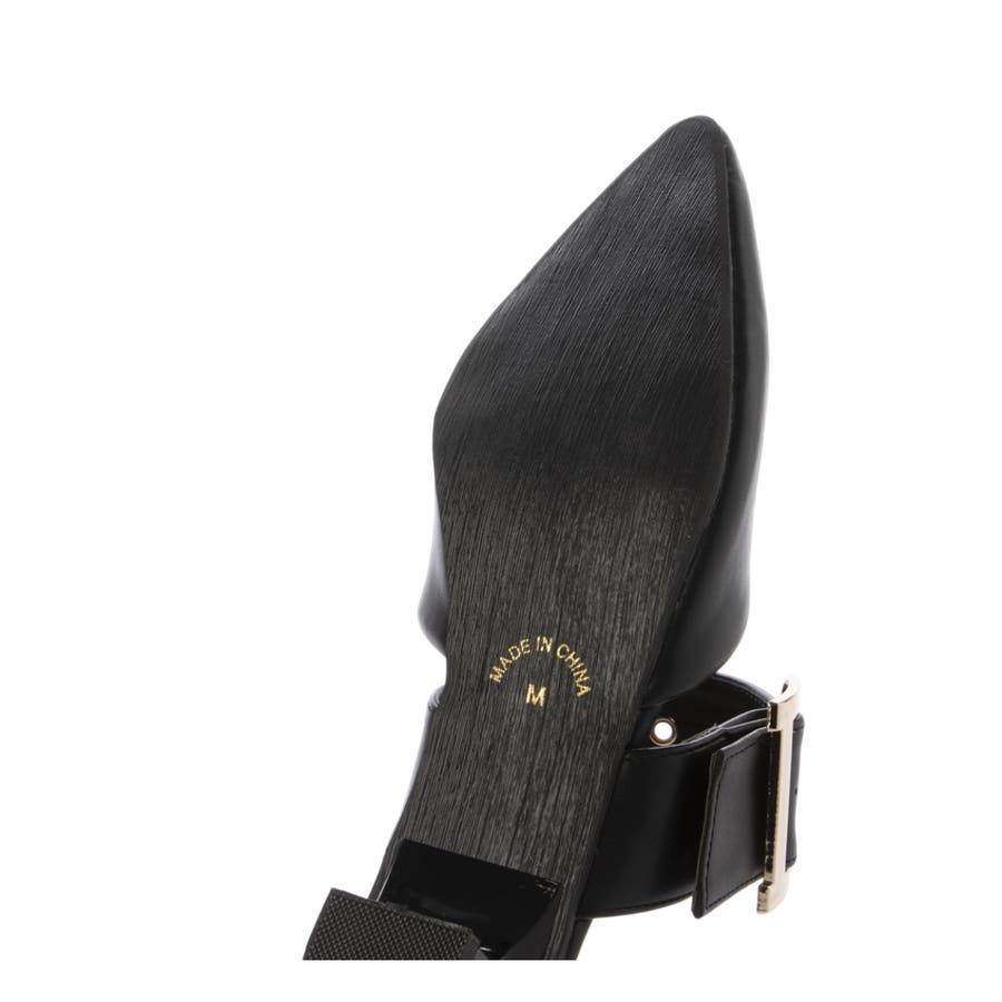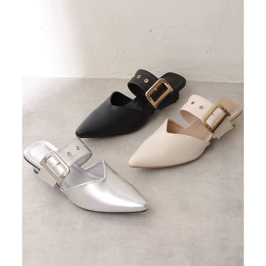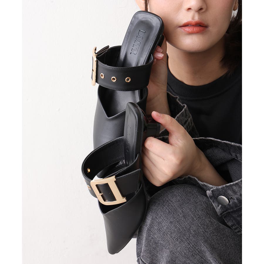 【25年春夏新作】ポインテッドトゥ バックルベルト ミュールパンプス