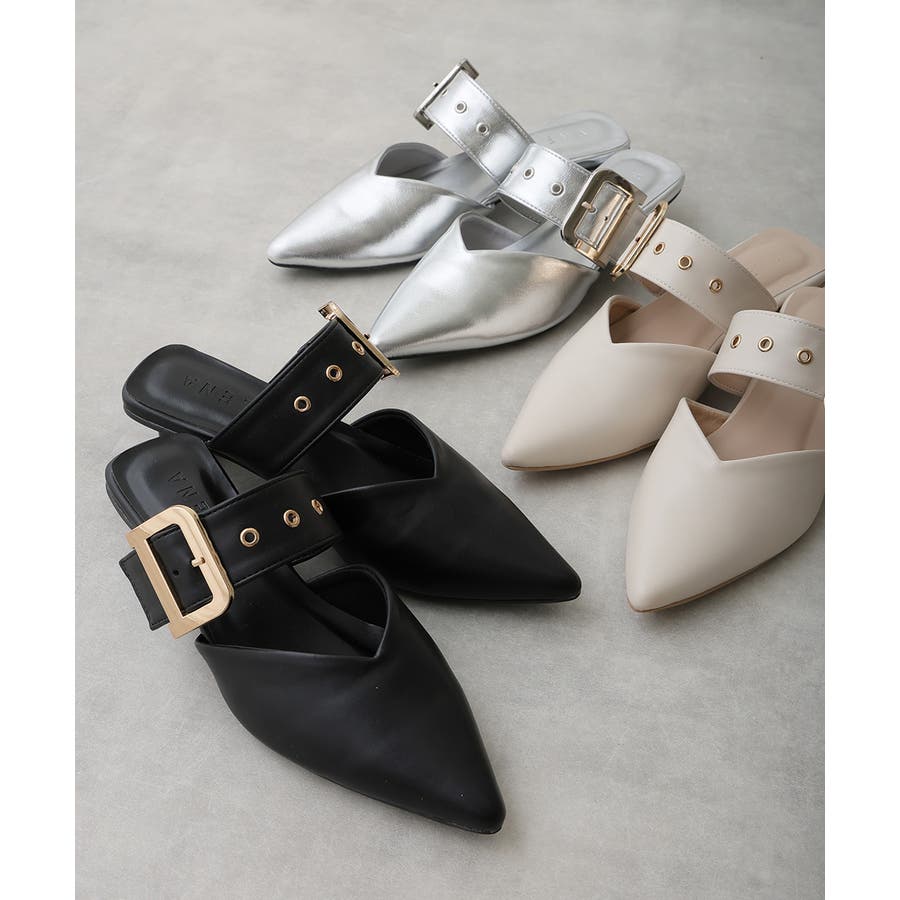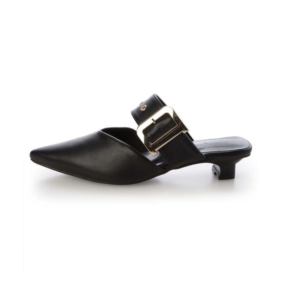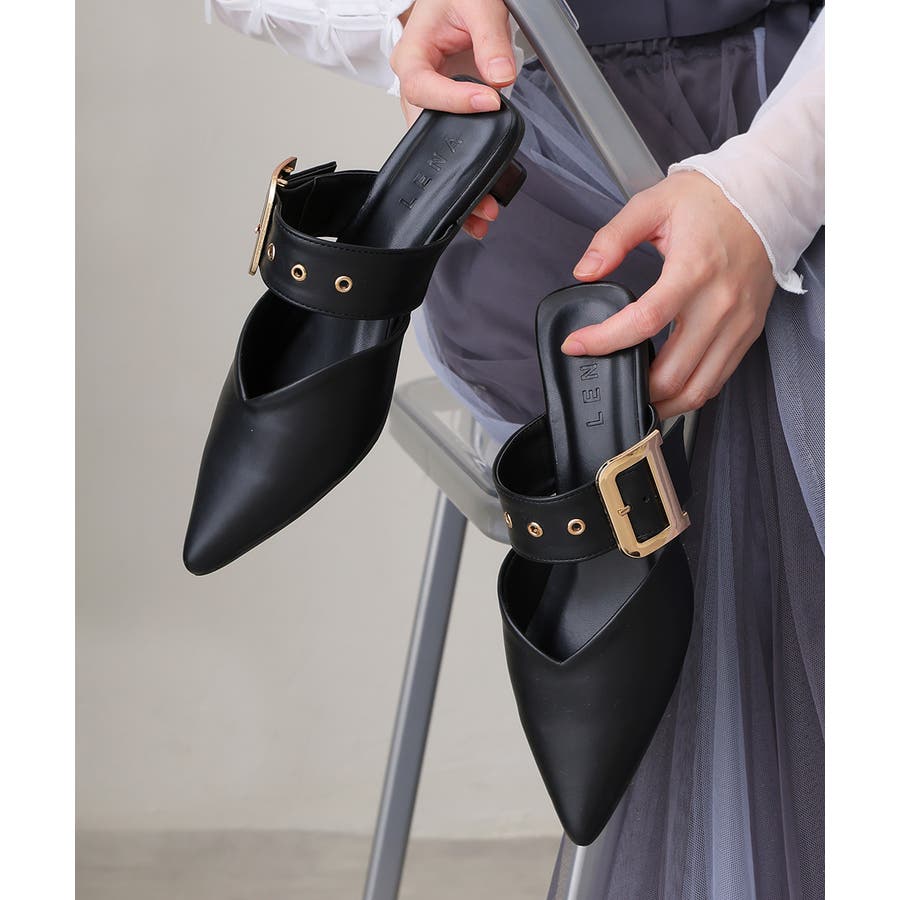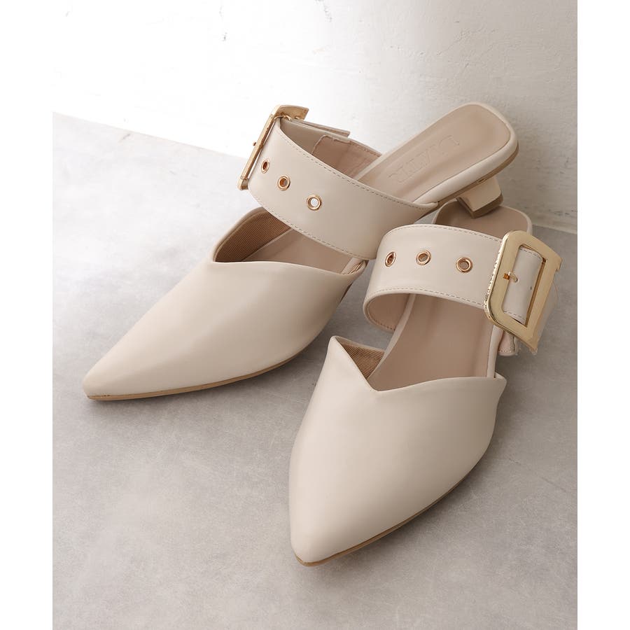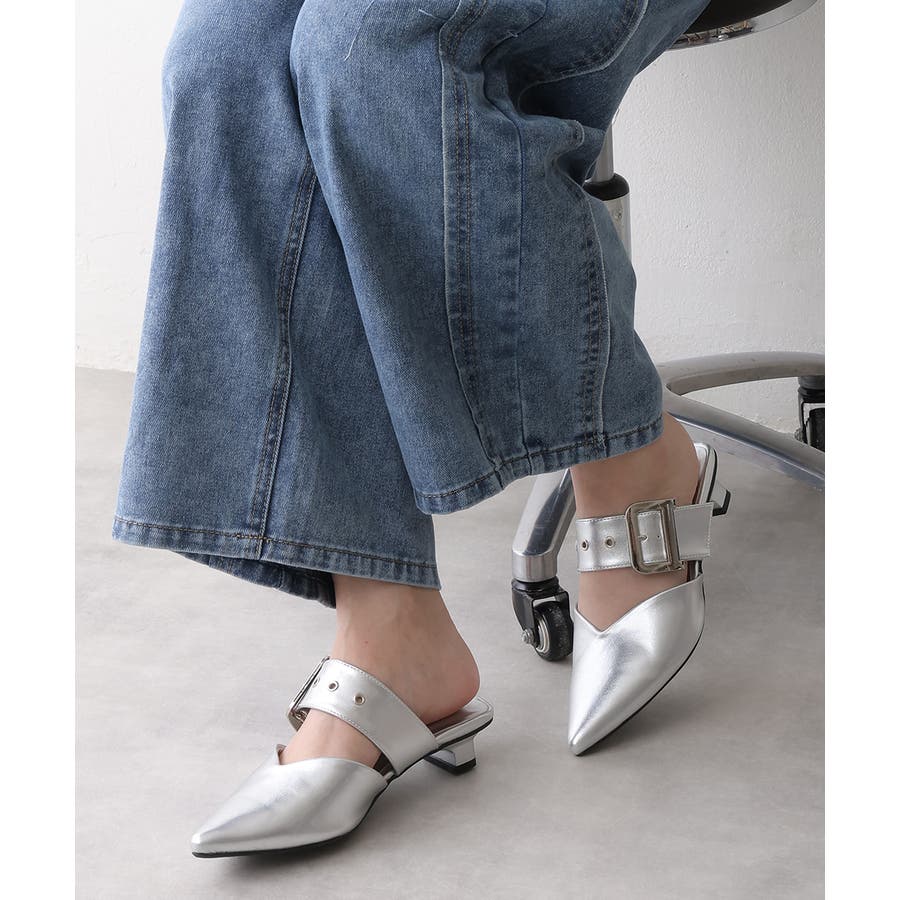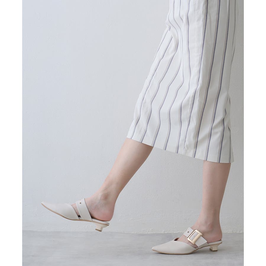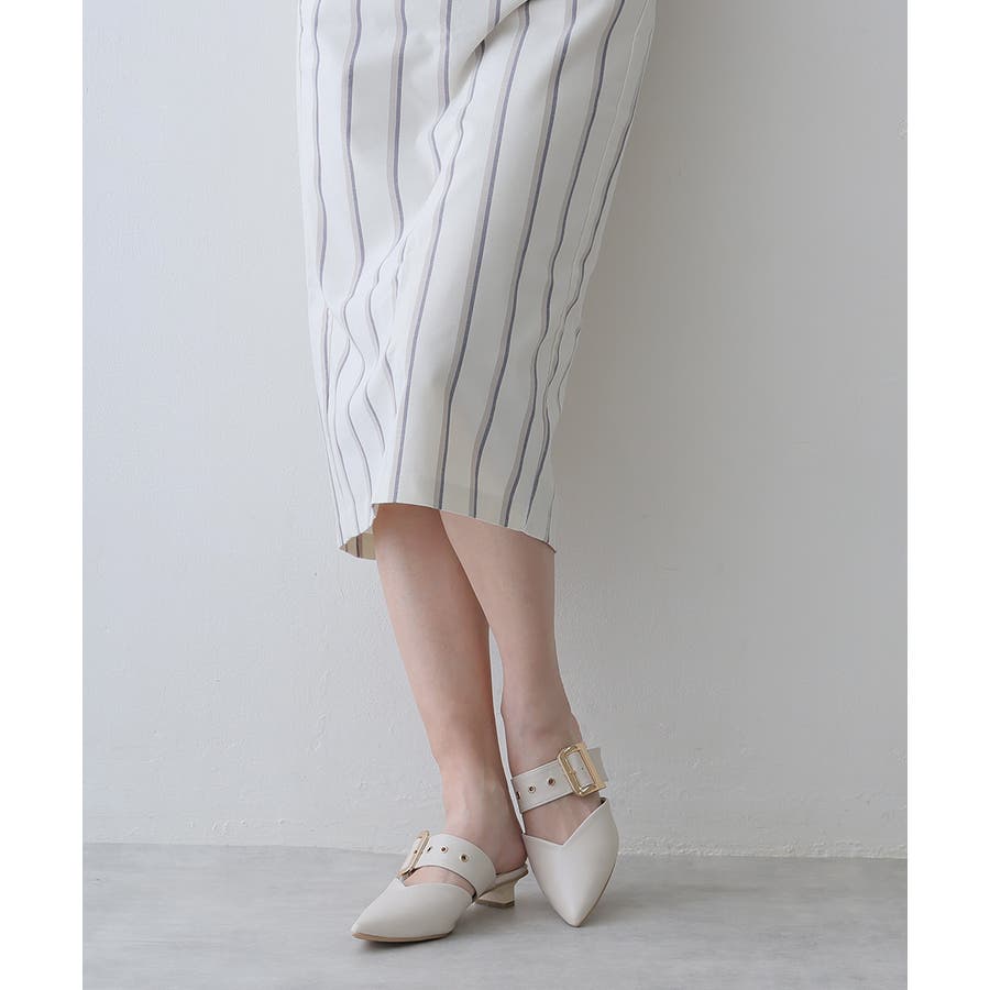 【25年春夏新作】ポインテッドトゥ バックルベルト ミュールパンプス