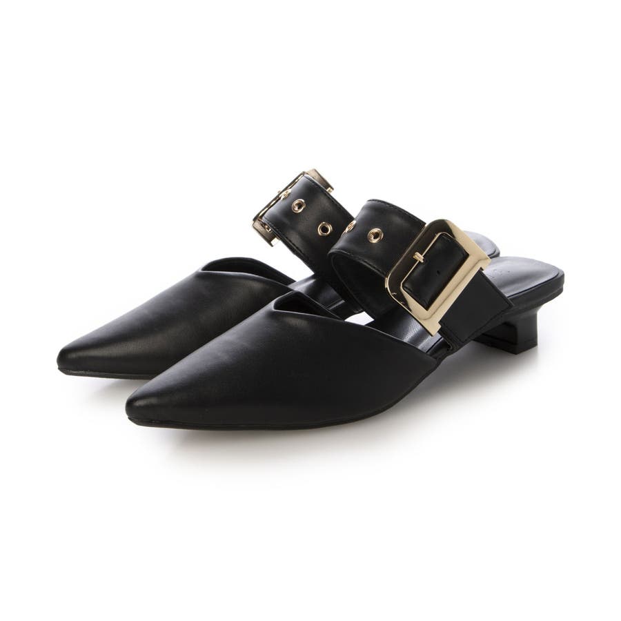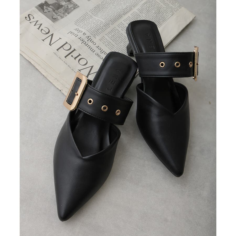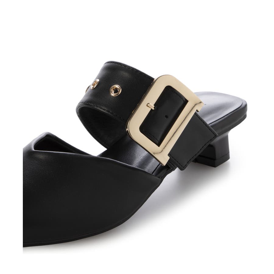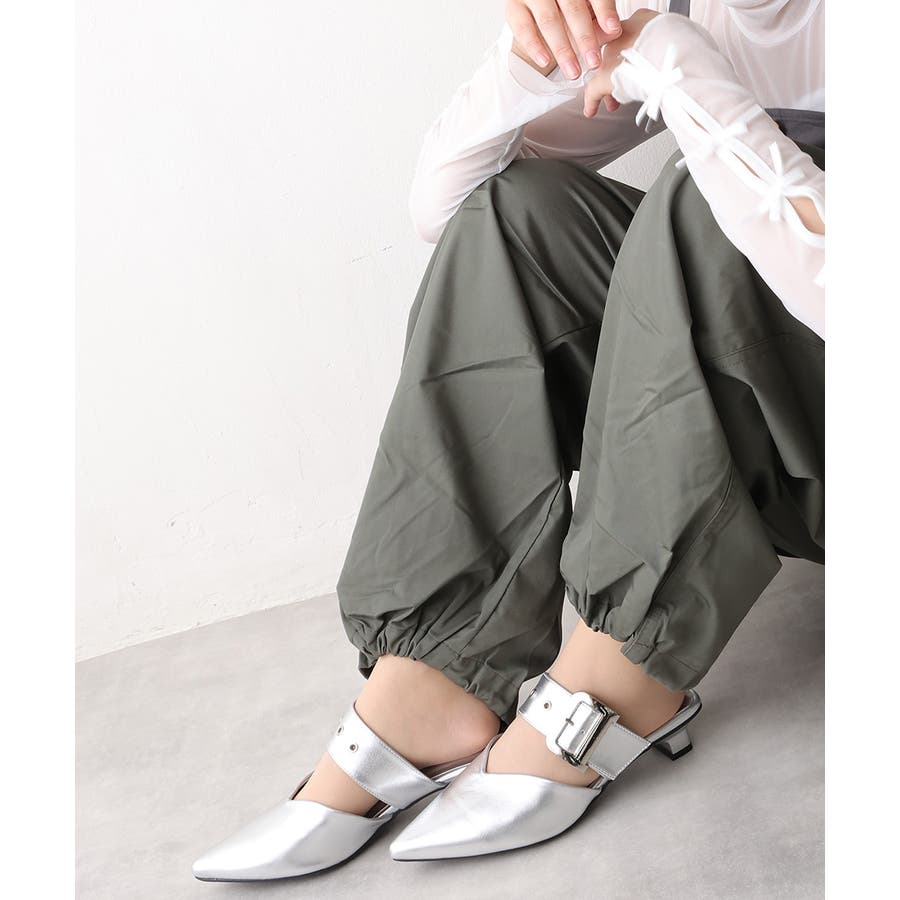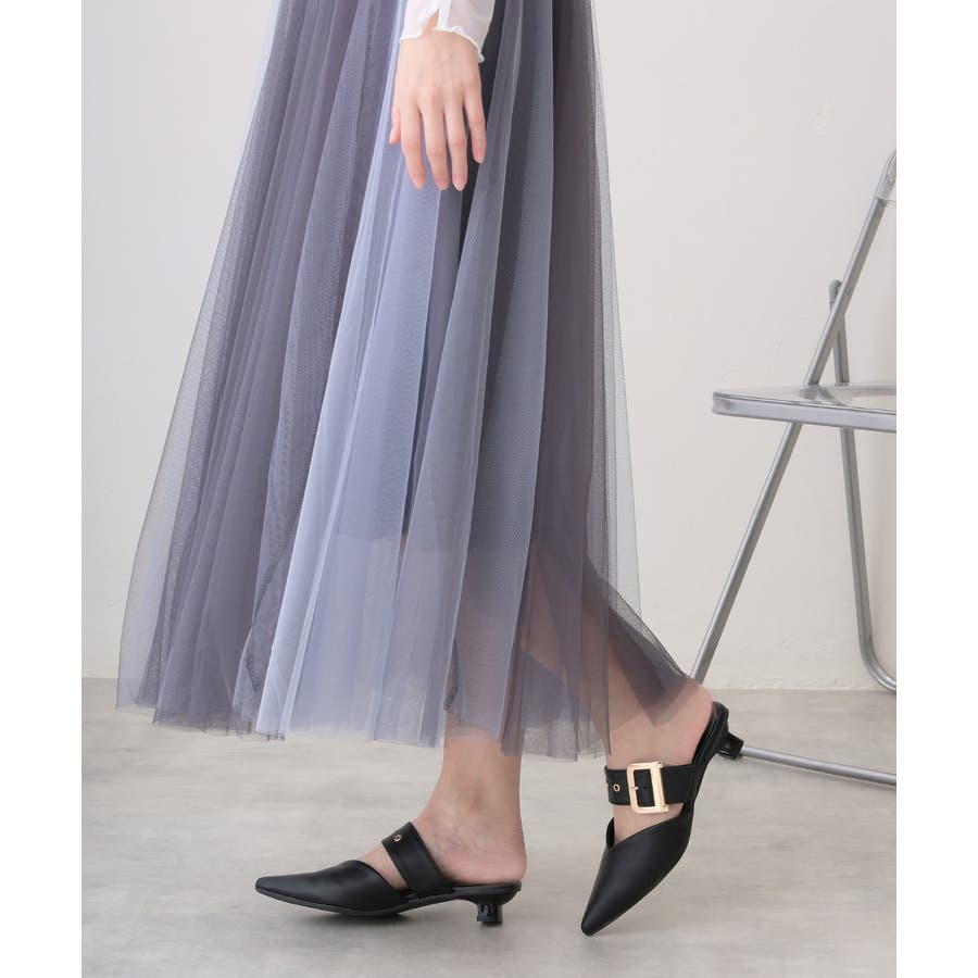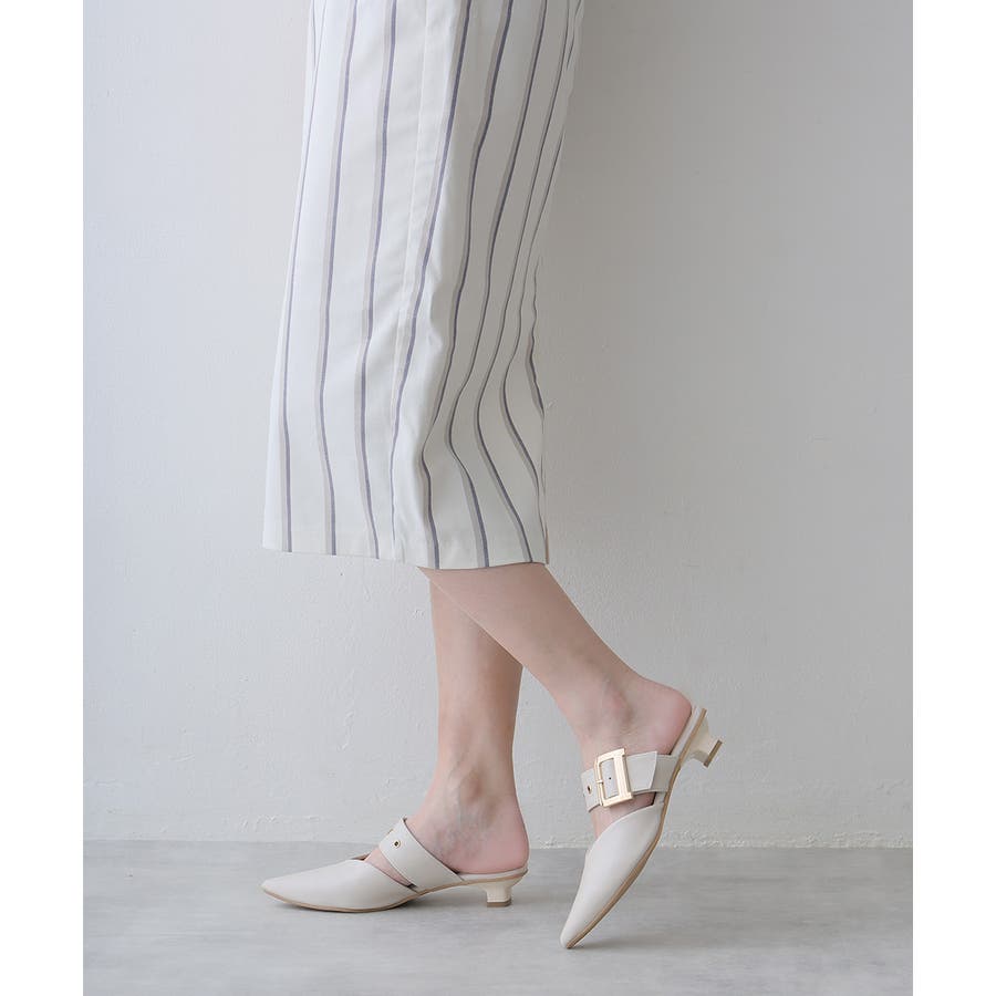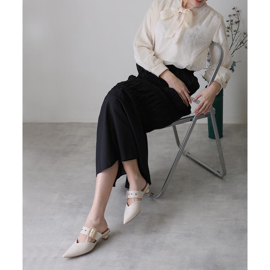 【25年春夏新作】ポインテッドトゥ バックルベルト ミュールパンプス