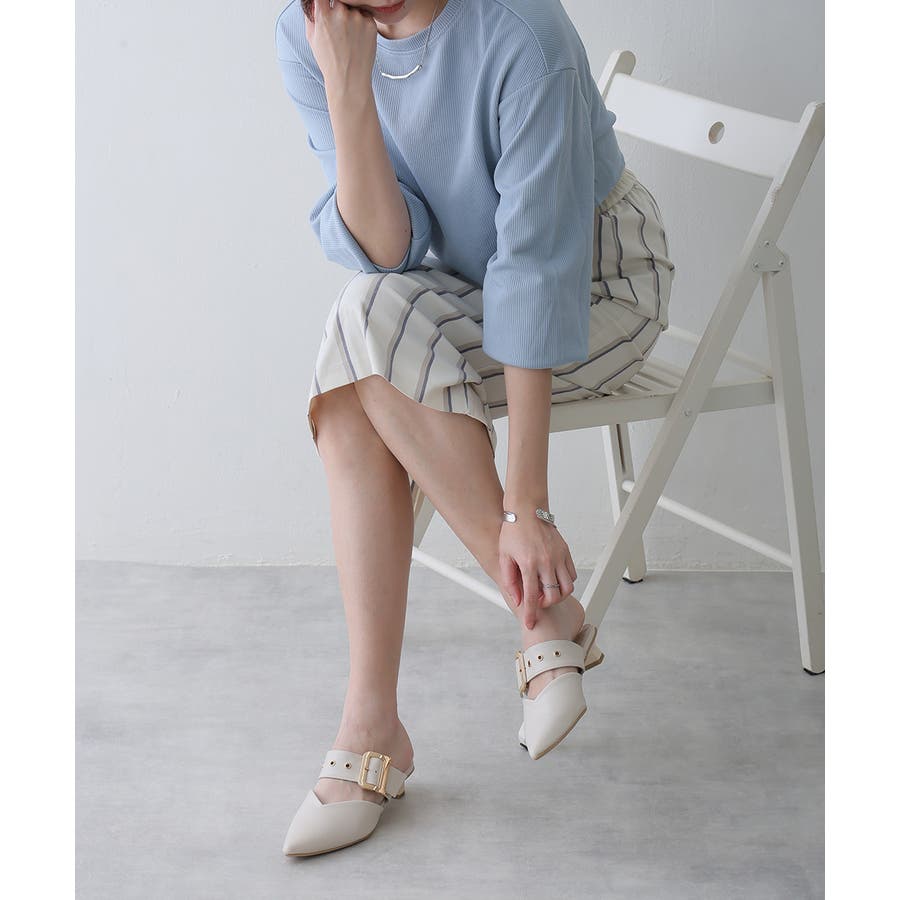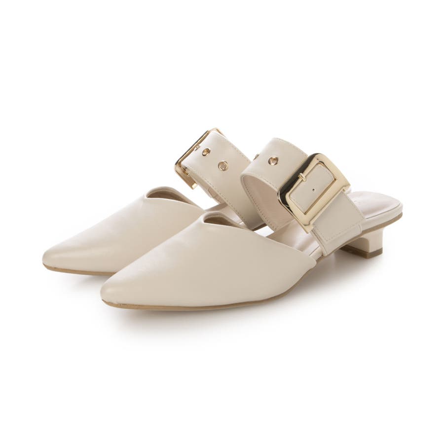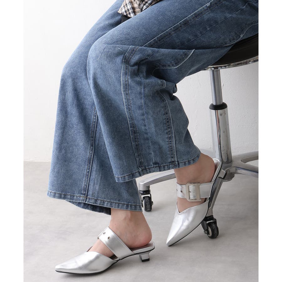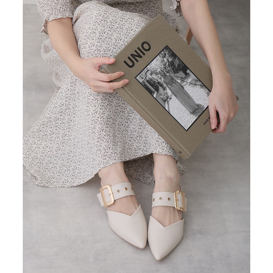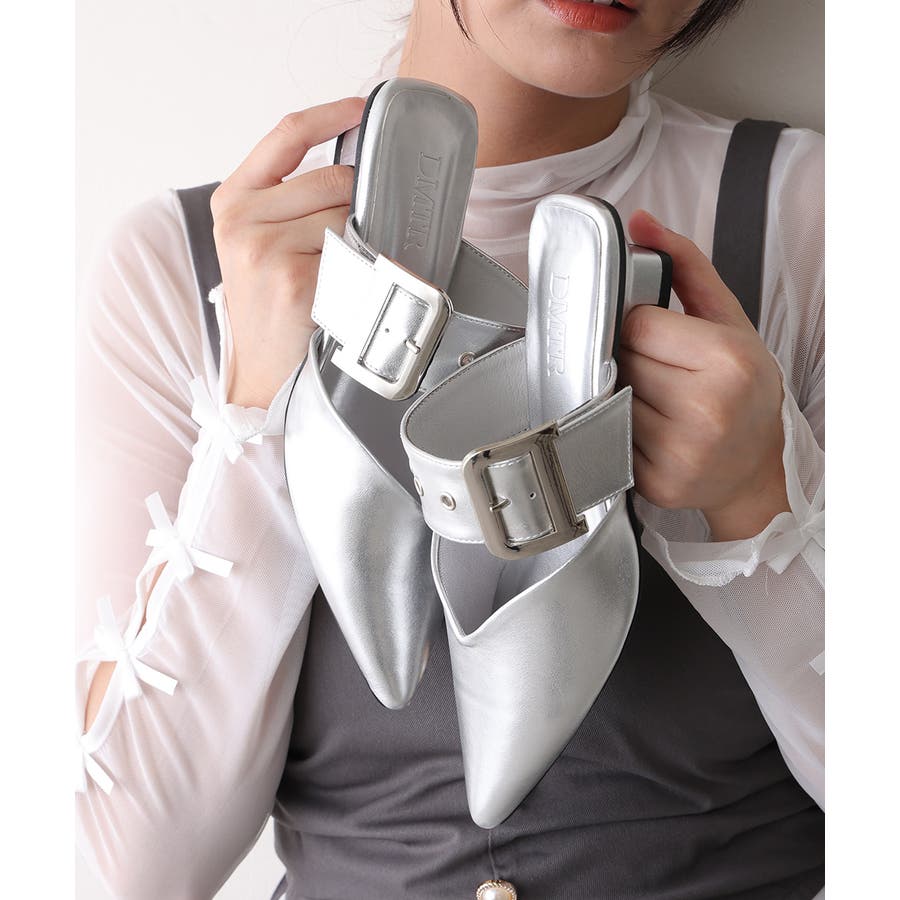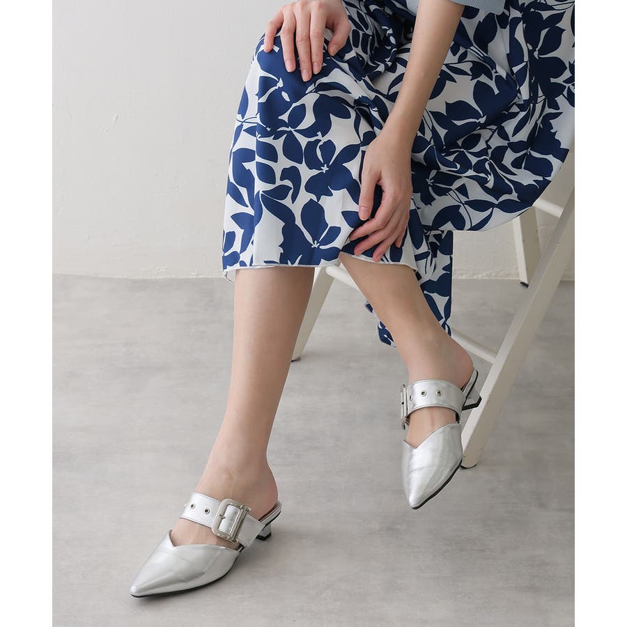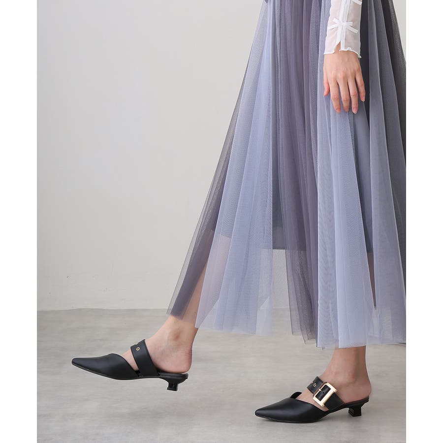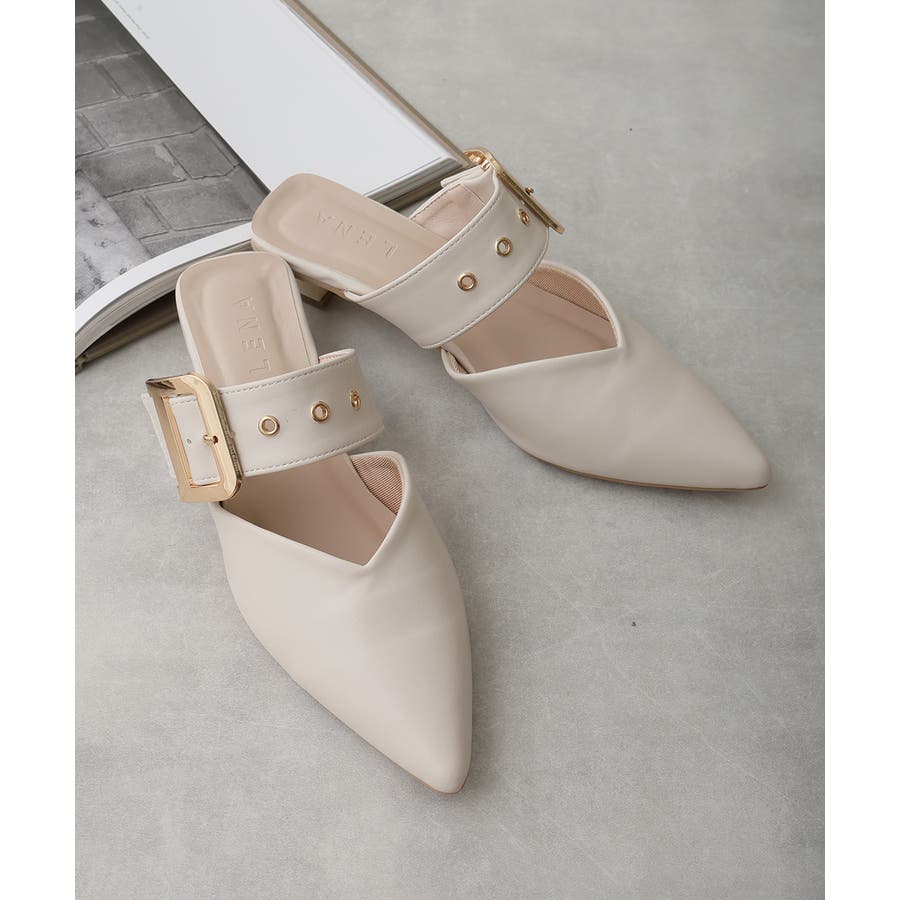 【25年春夏新作】ポインテッドトゥ バックルベルト ミュールパンプス