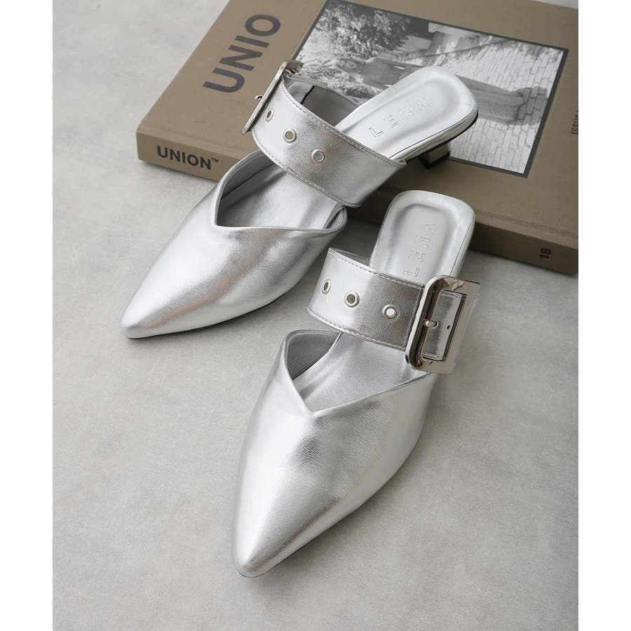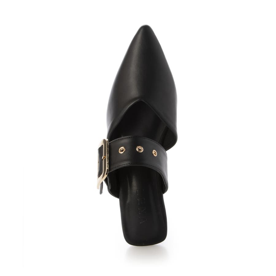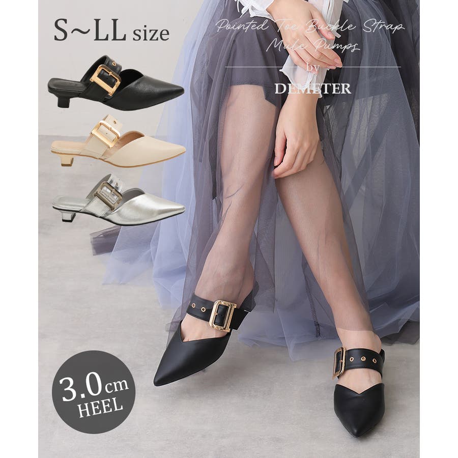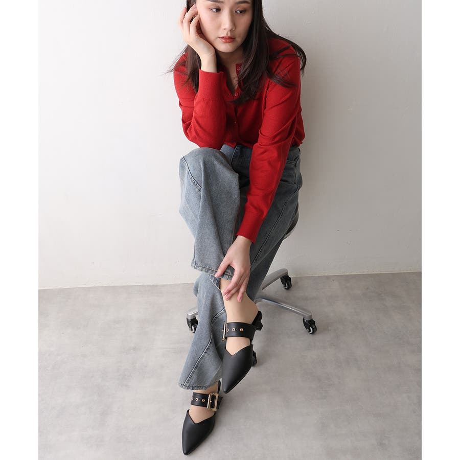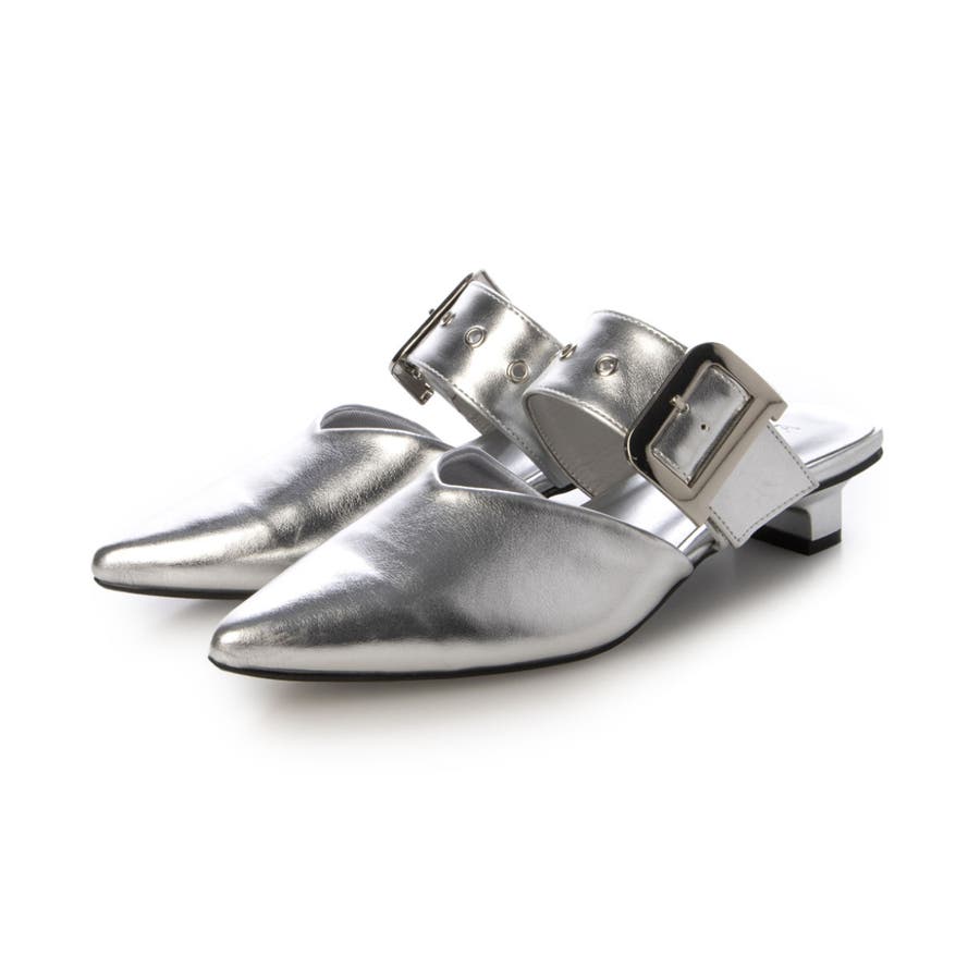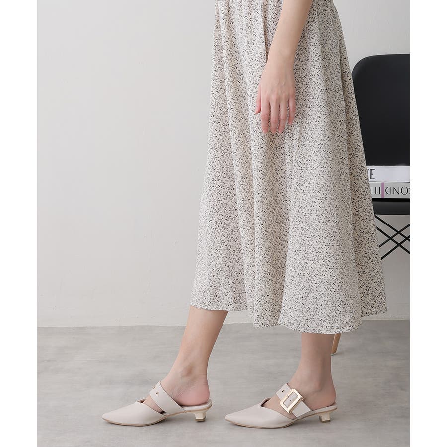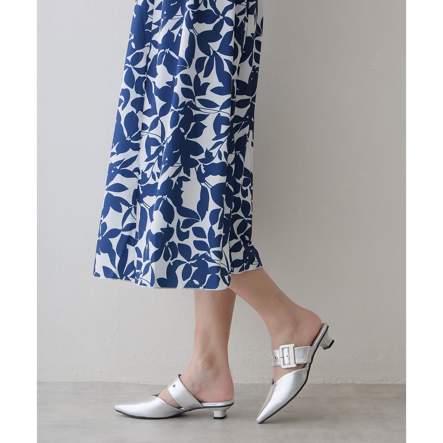 【25年春夏新作】ポインテッドトゥ バックルベルト ミュールパンプス