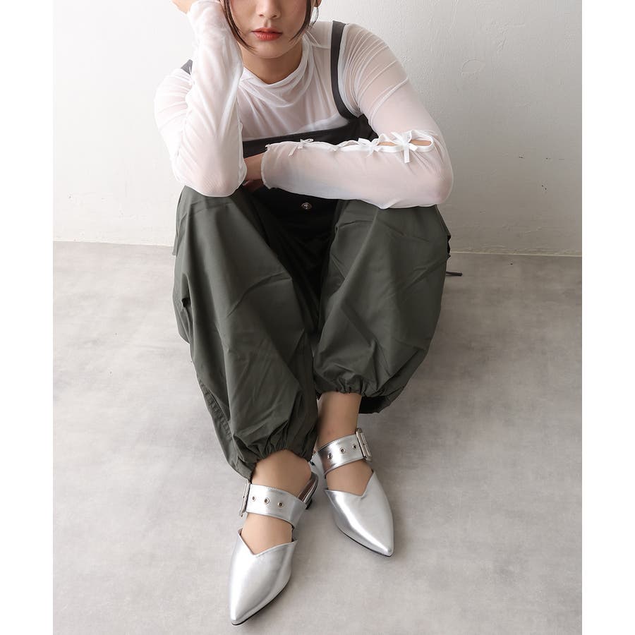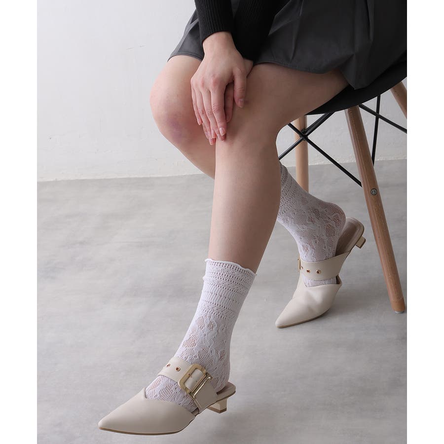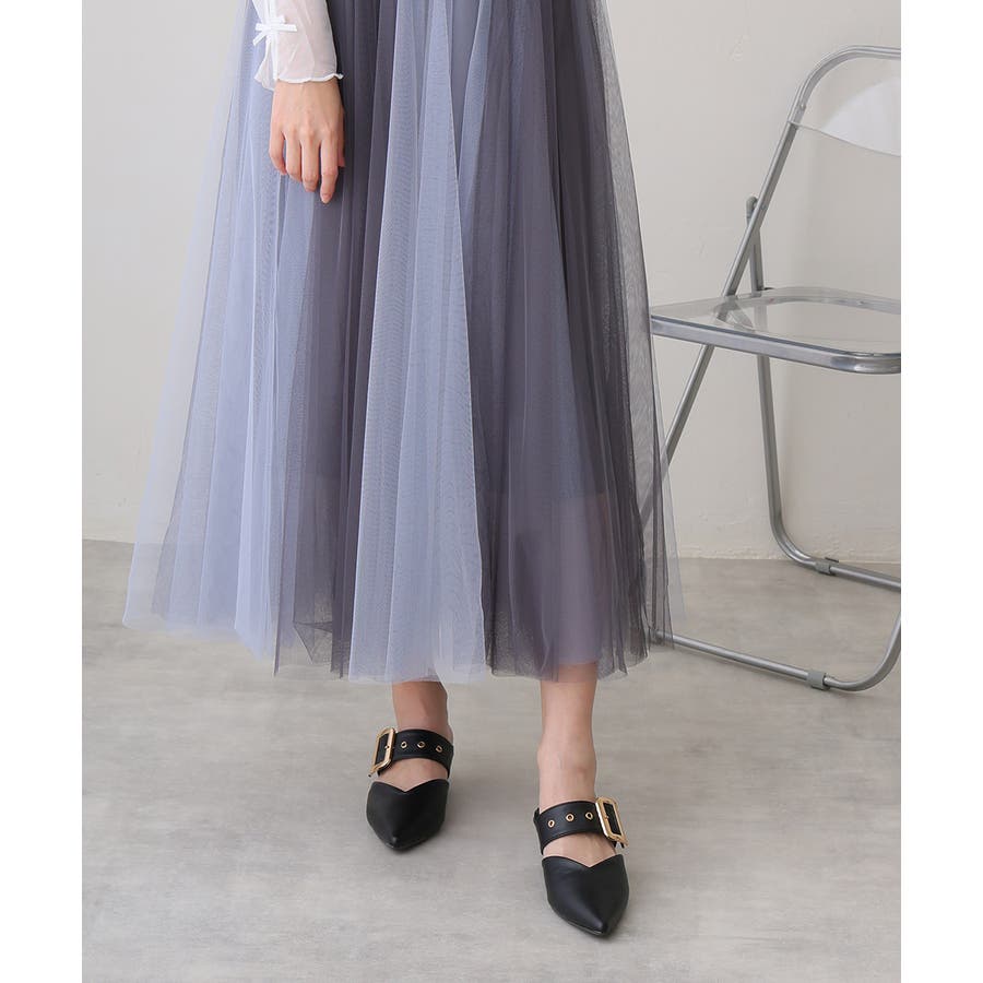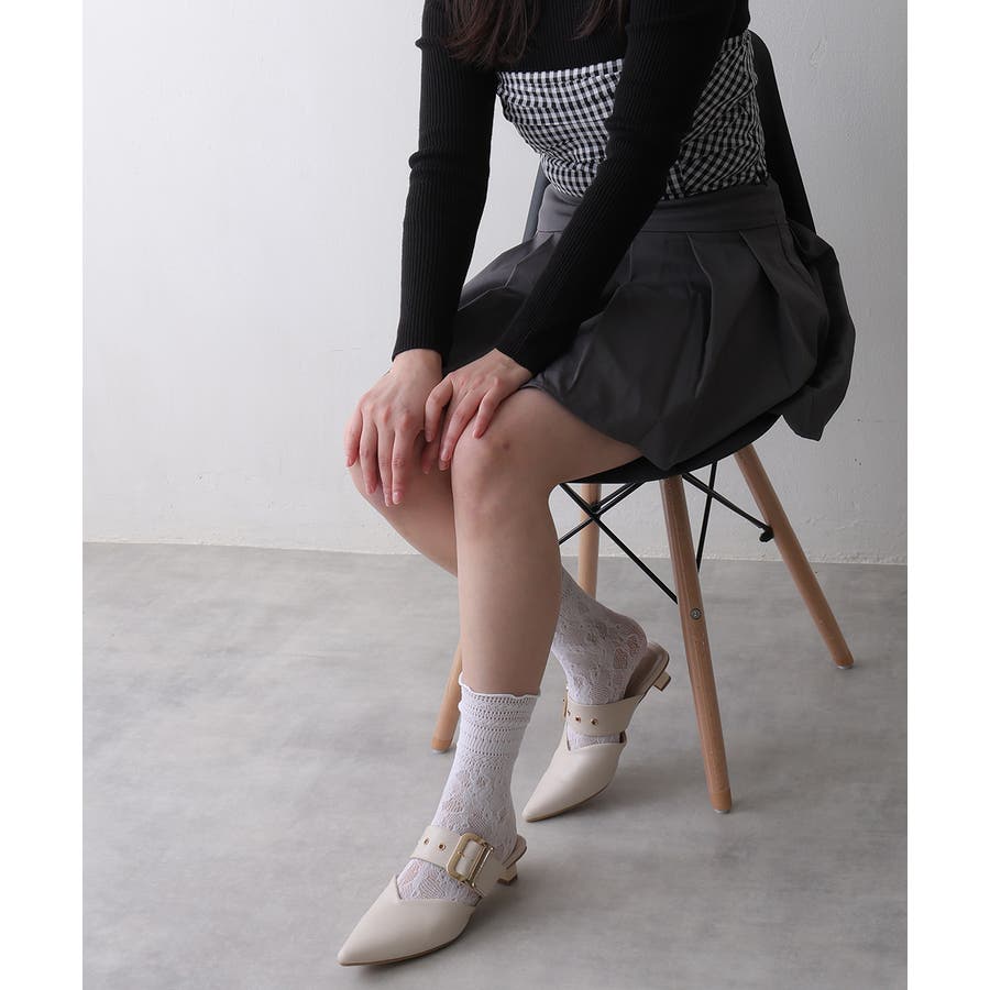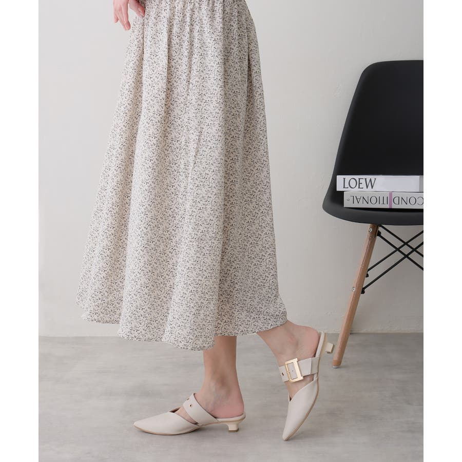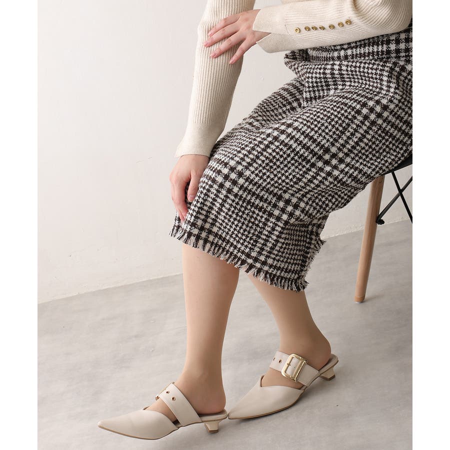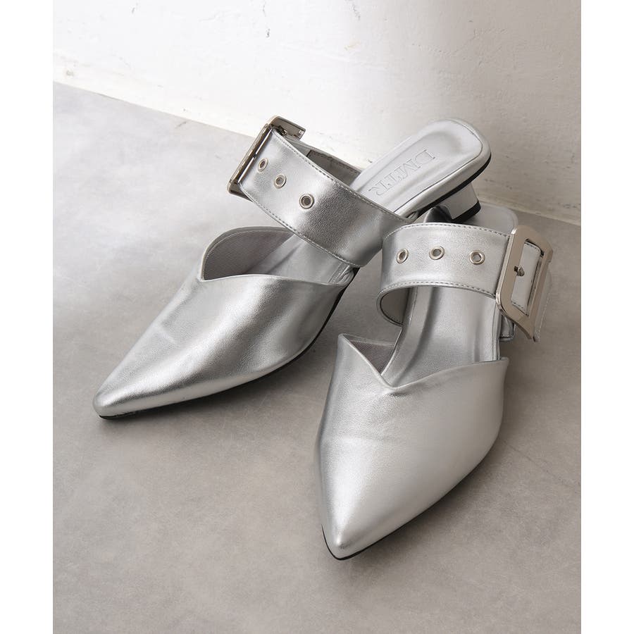 【25年春夏新作】ポインテッドトゥ バックルベルト ミュールパンプス
