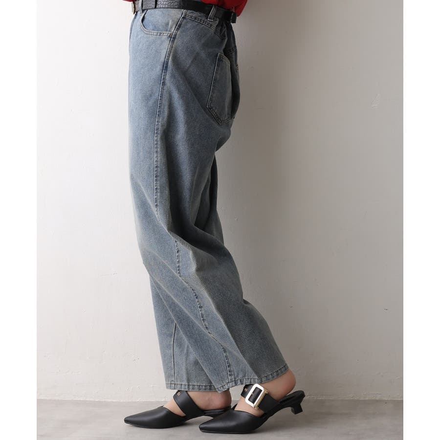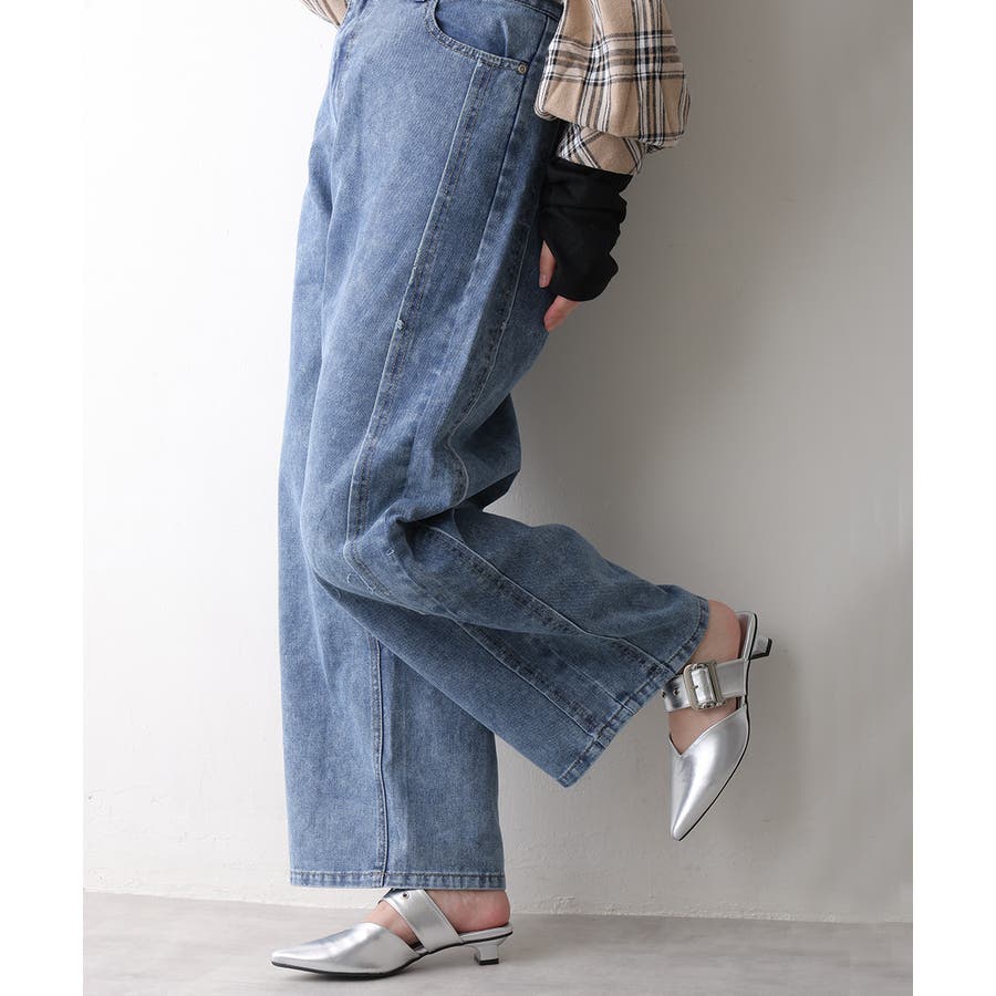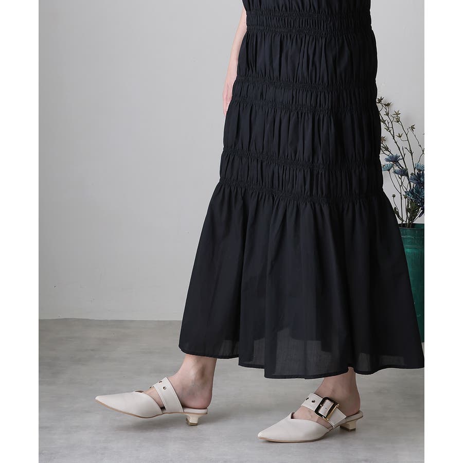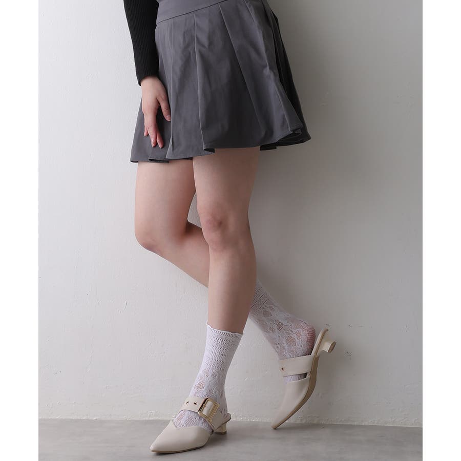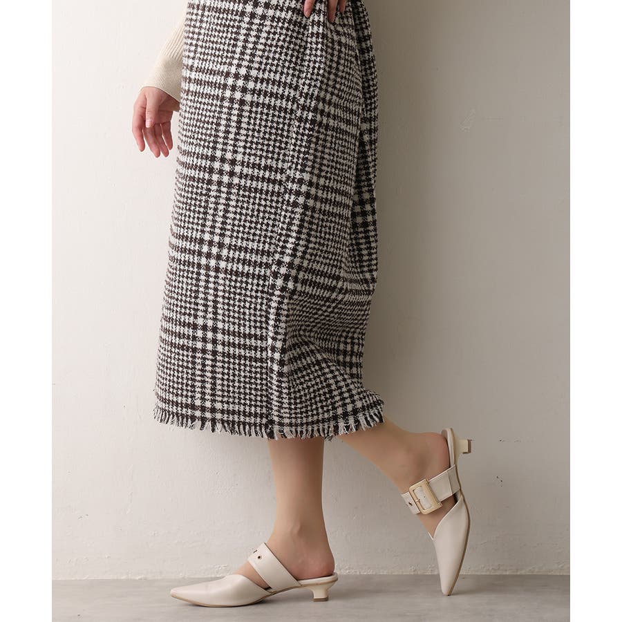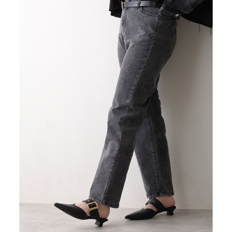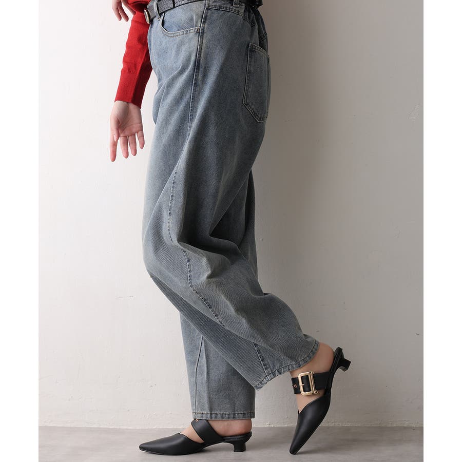 【25年春夏新作】ポインテッドトゥ バックルベルト ミュールパンプス