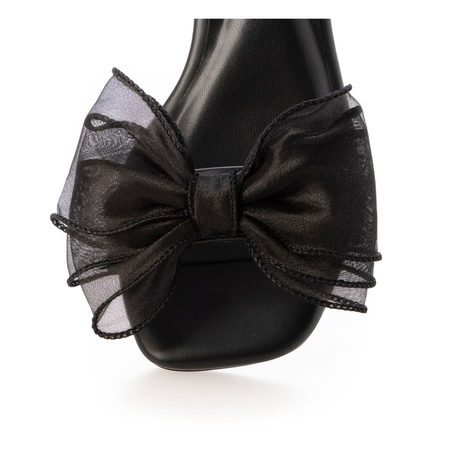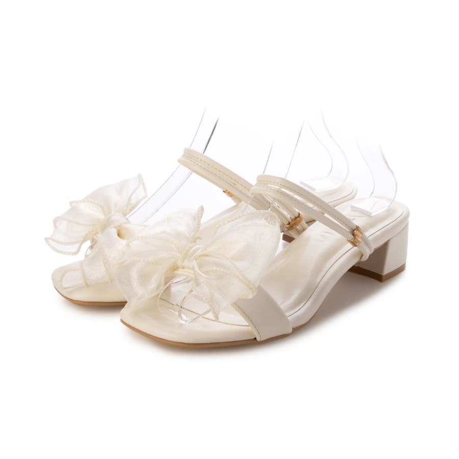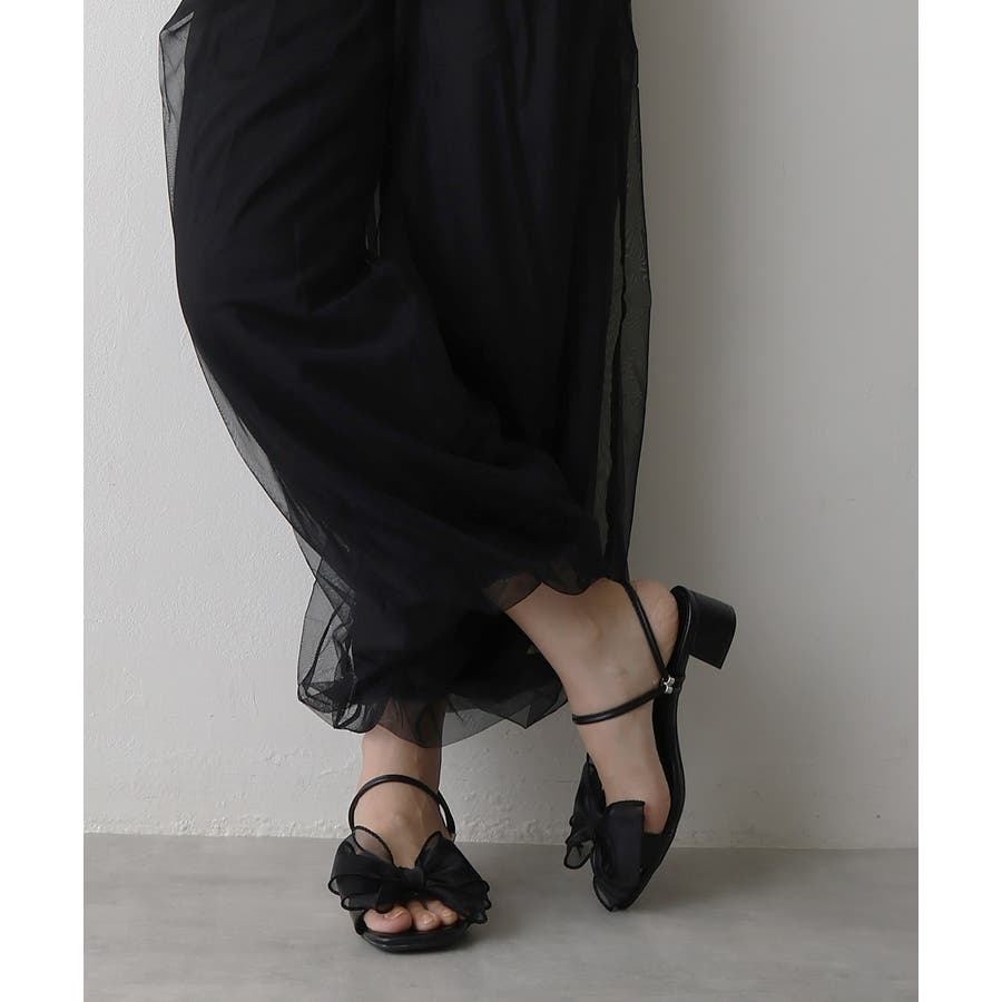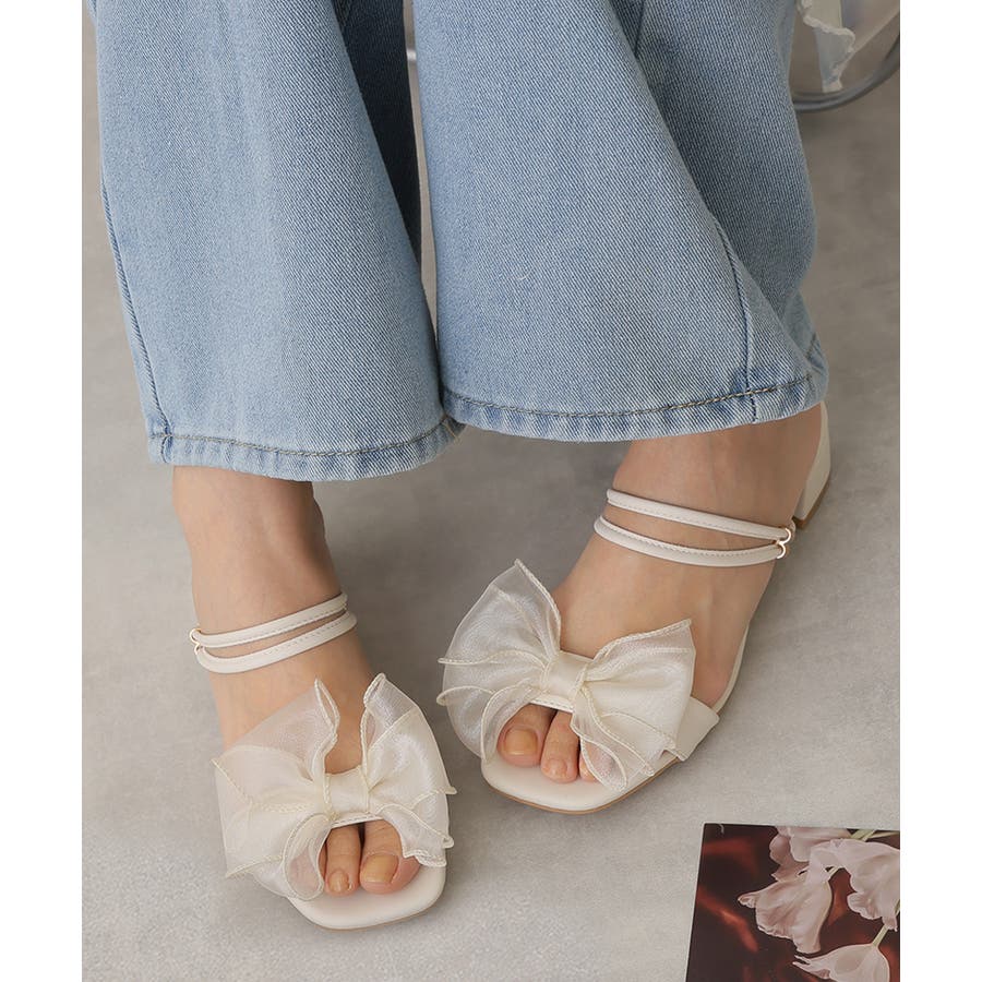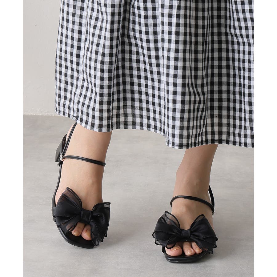 【25年春夏新作】2WAY スクエアトゥ シフォンリボン ストラップサンダル