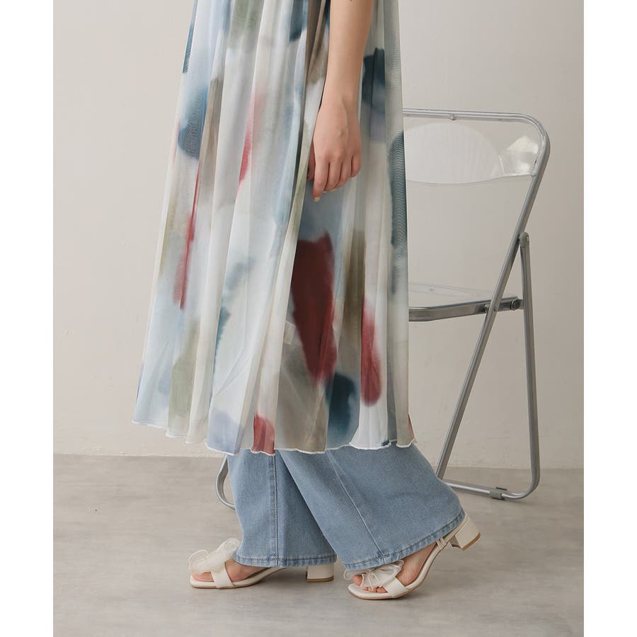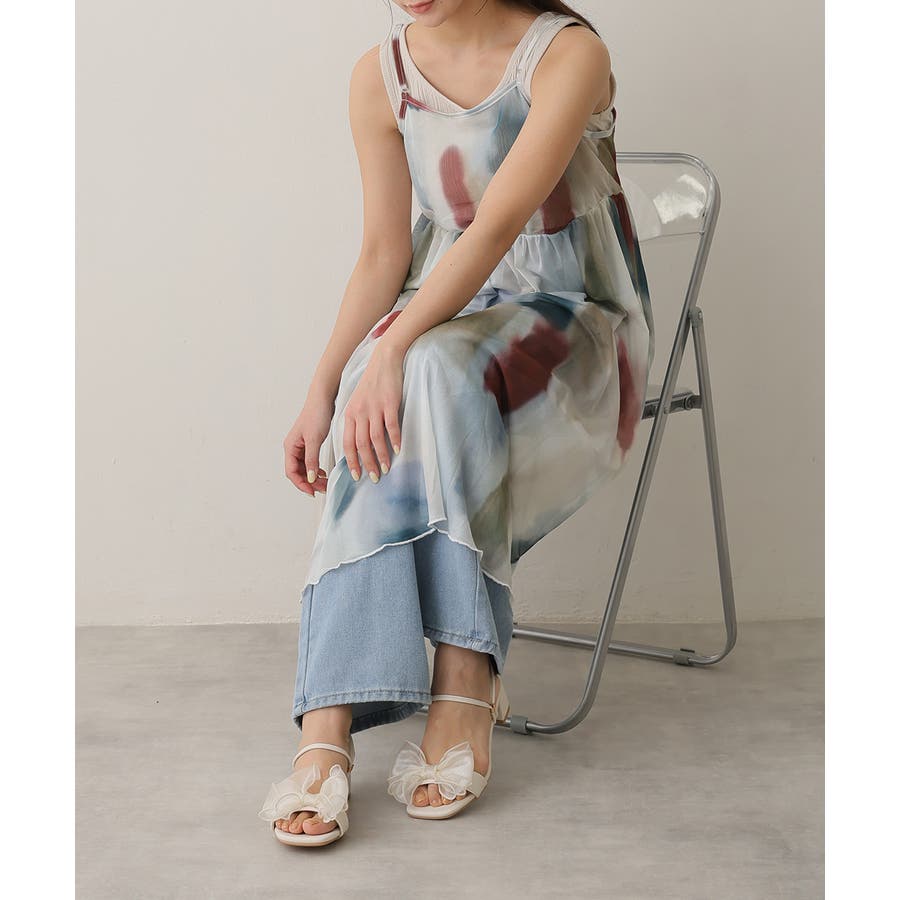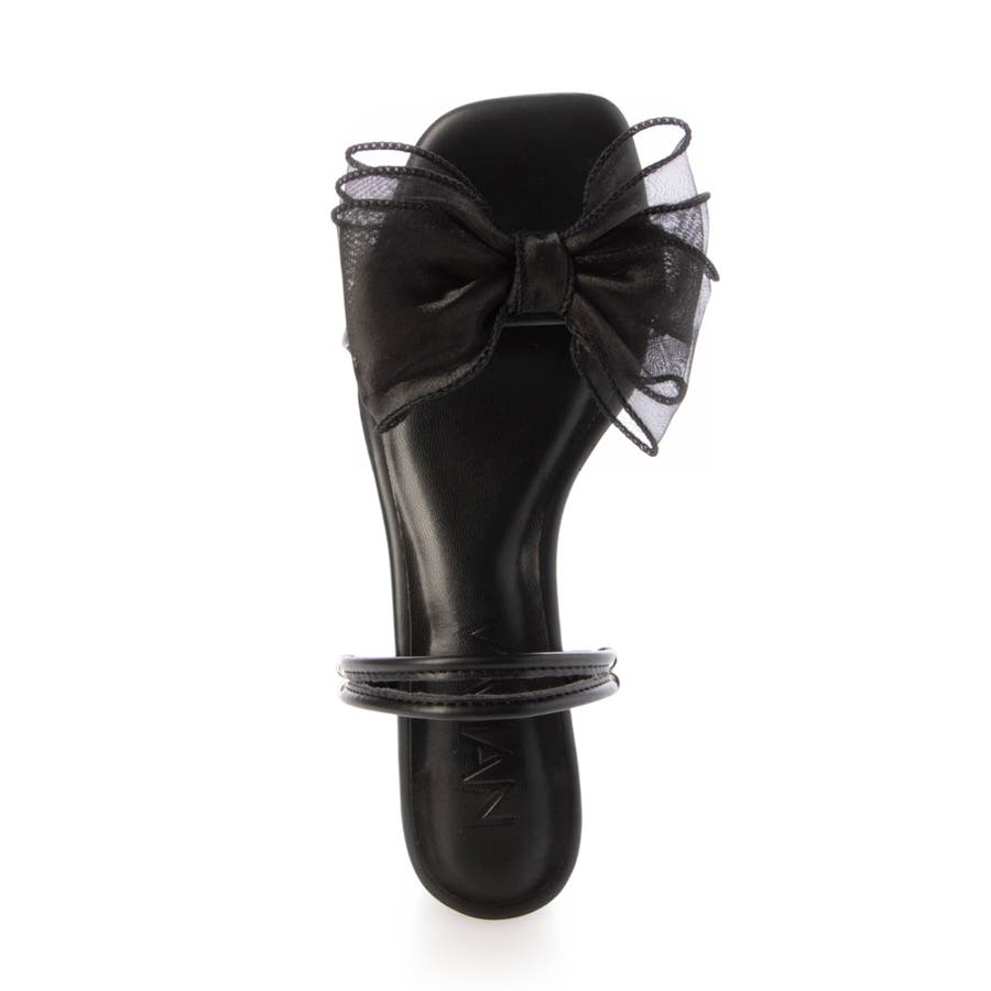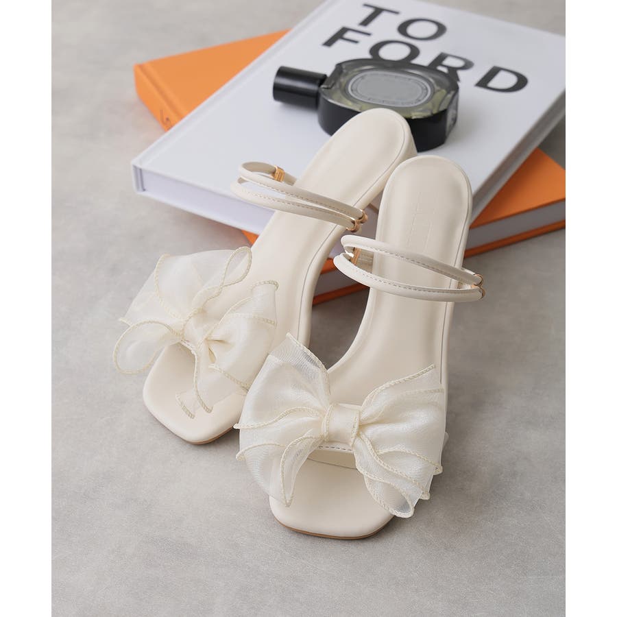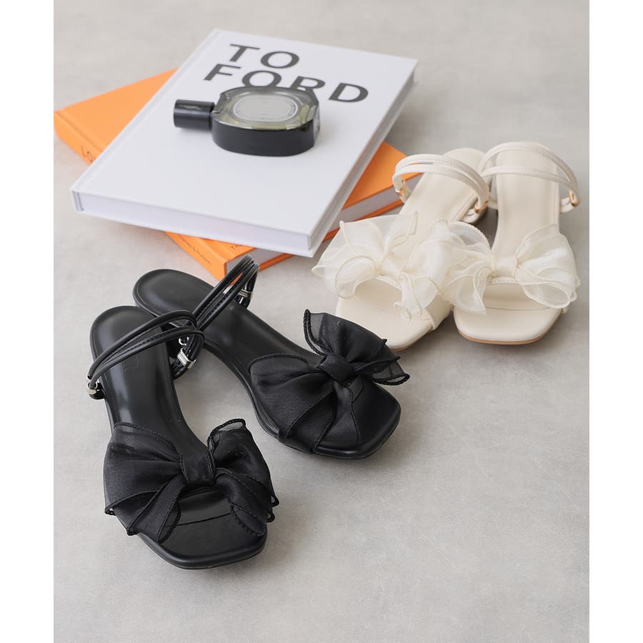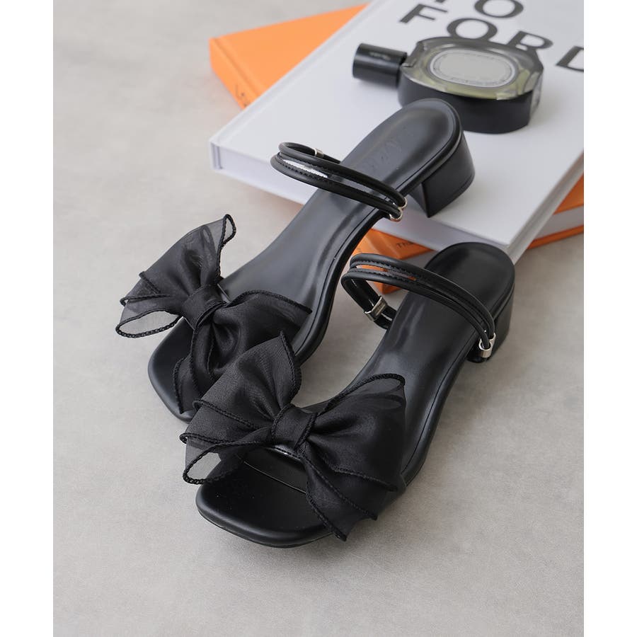 【25年春夏新作】2WAY スクエアトゥ シフォンリボン ストラップサンダル