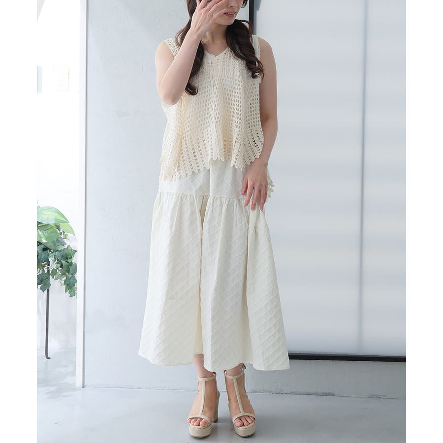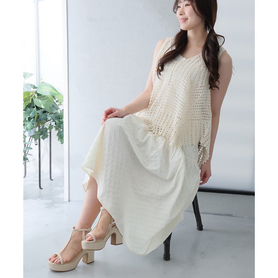 ワンピースやスカートと合わせると、程よい透け感が女性らしさを引き立ててくれます。