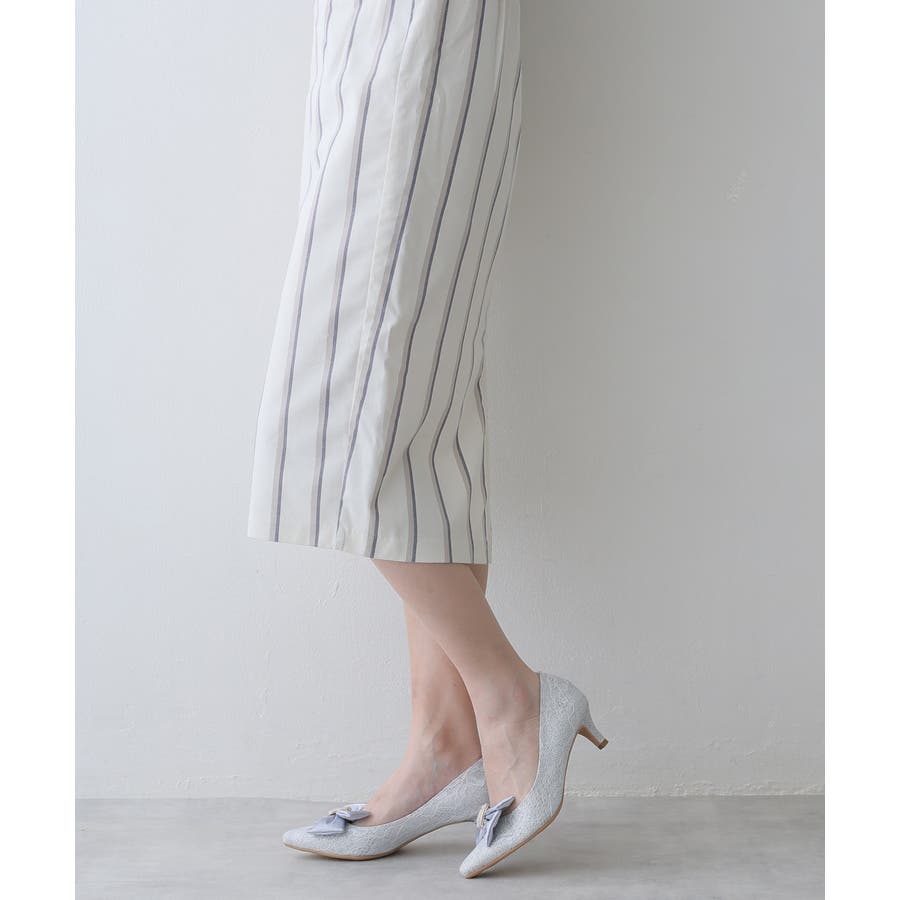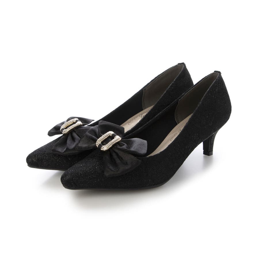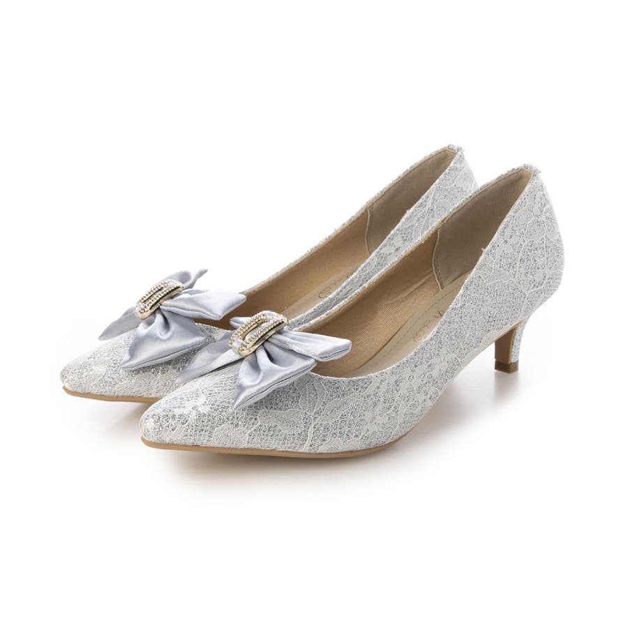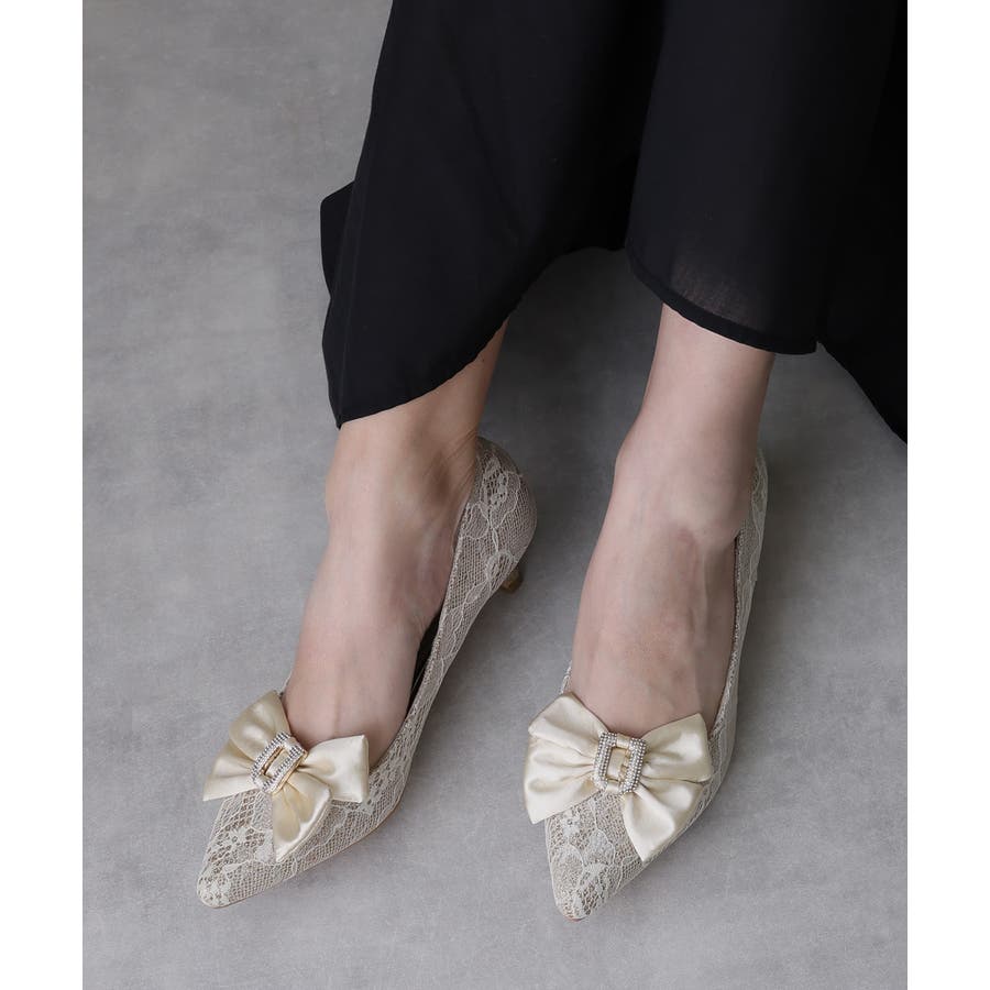 人気のリボンパンプスに目を引くグリッターレース素材でエレガントさを演出してくれます☆