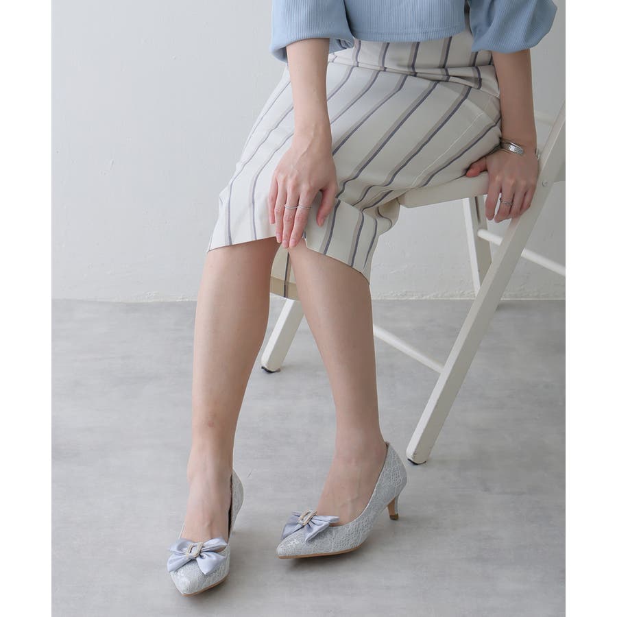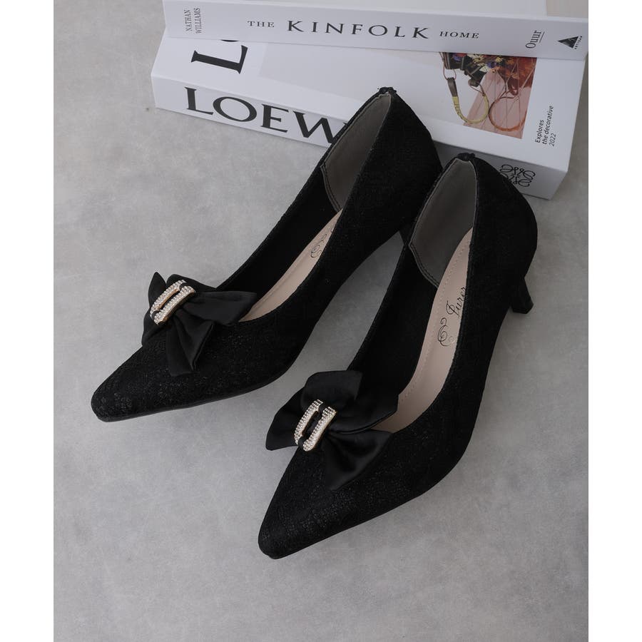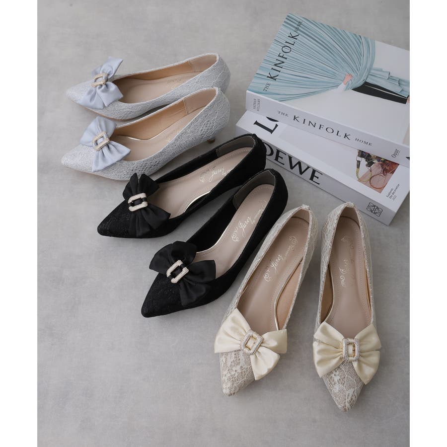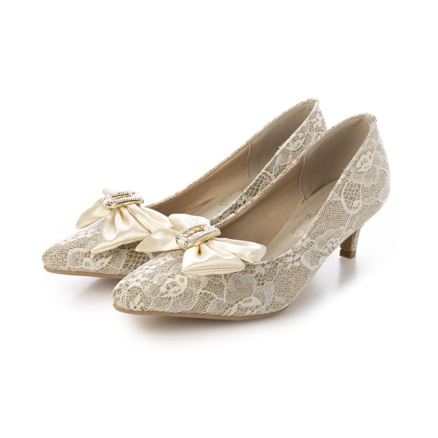 人気のリボンパンプスに目を引くグリッターレース素材でエレガントさを演出してくれます☆