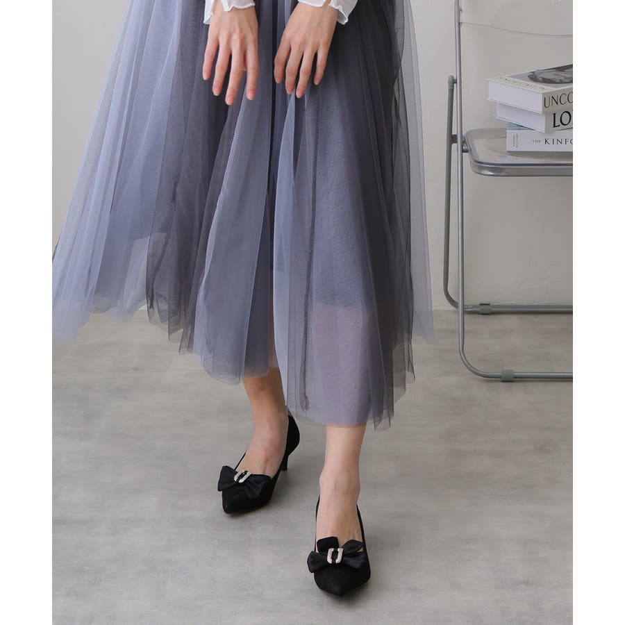 リボンにあしらわれたビジューバックルもアクセントに。