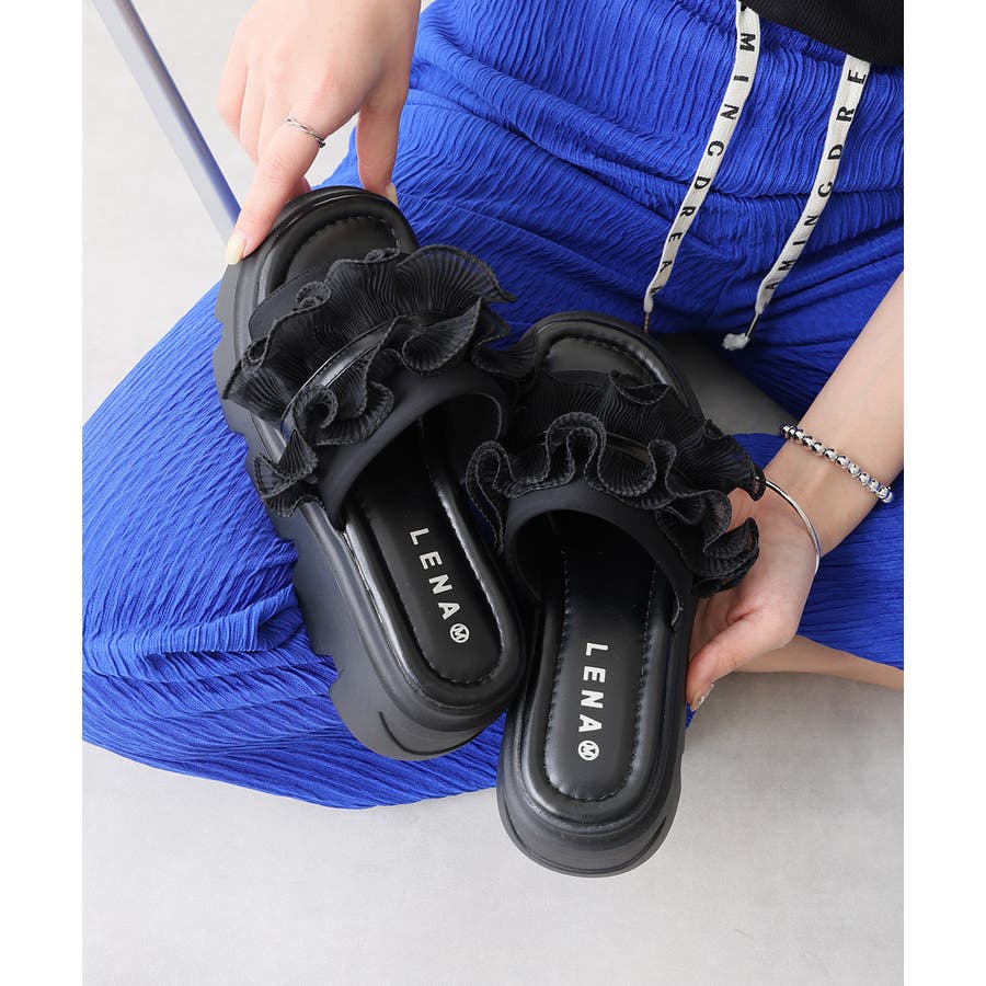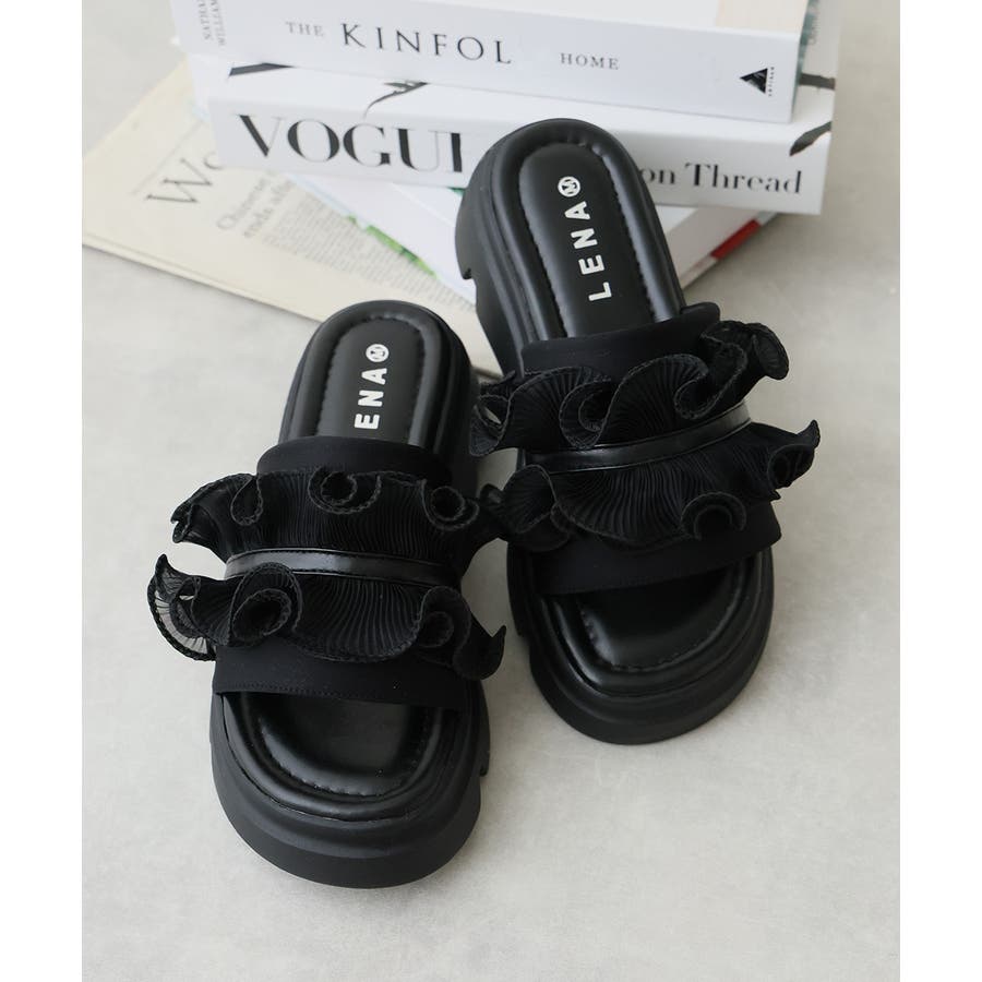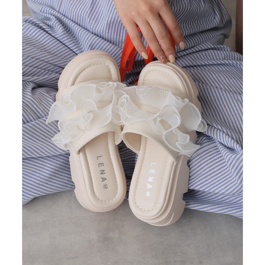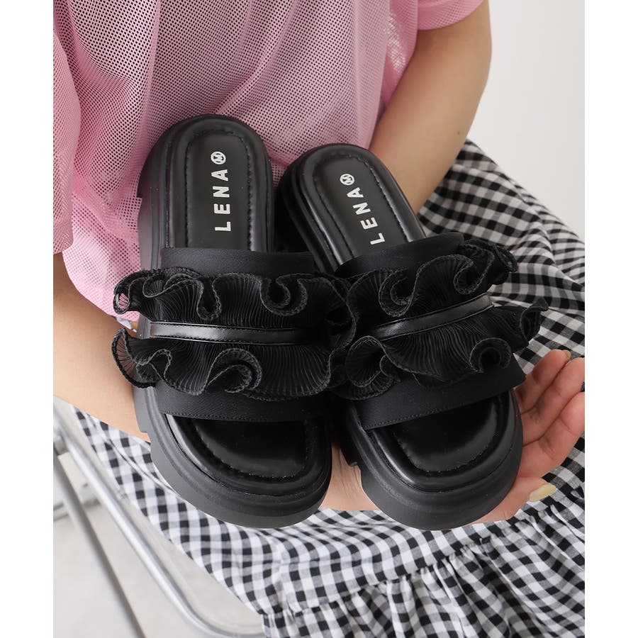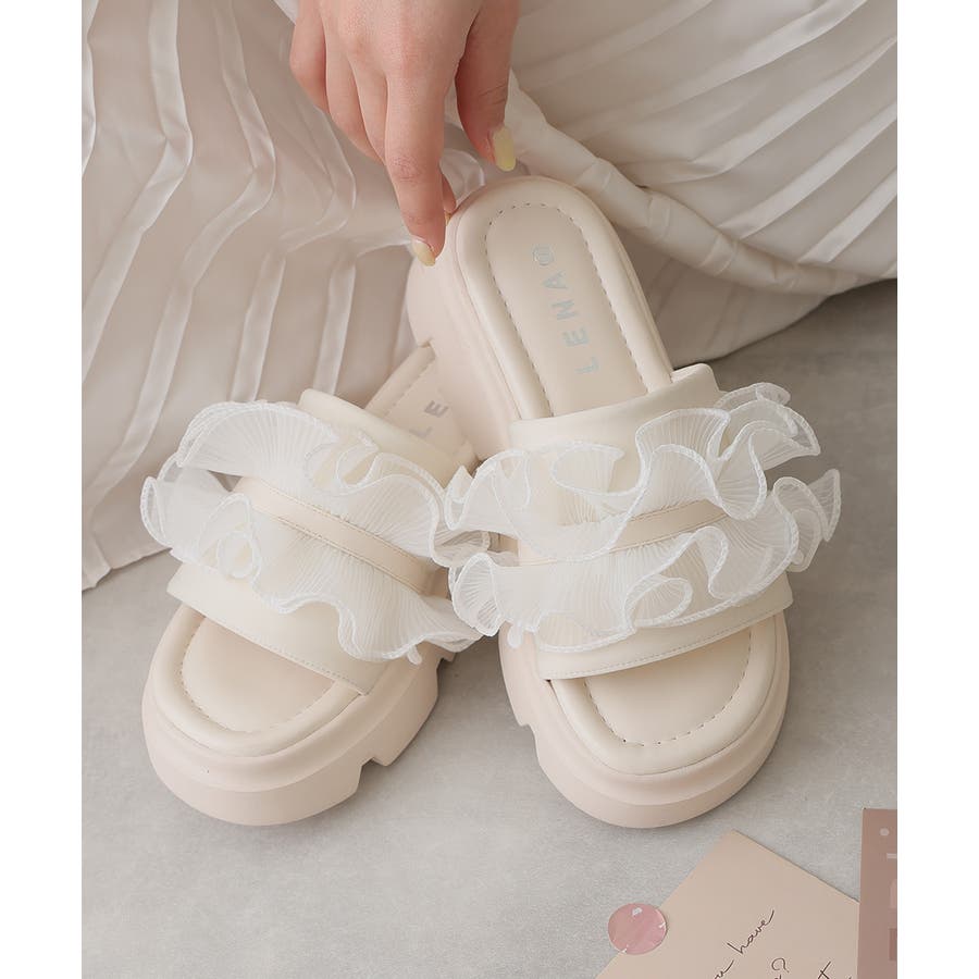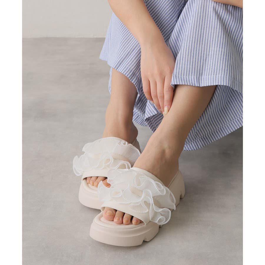 甘すぎない上品なフリルとさりげないボリューム感の厚底で、足元に程よい存在感をプラスします♪
