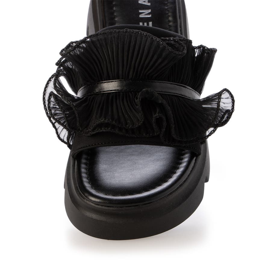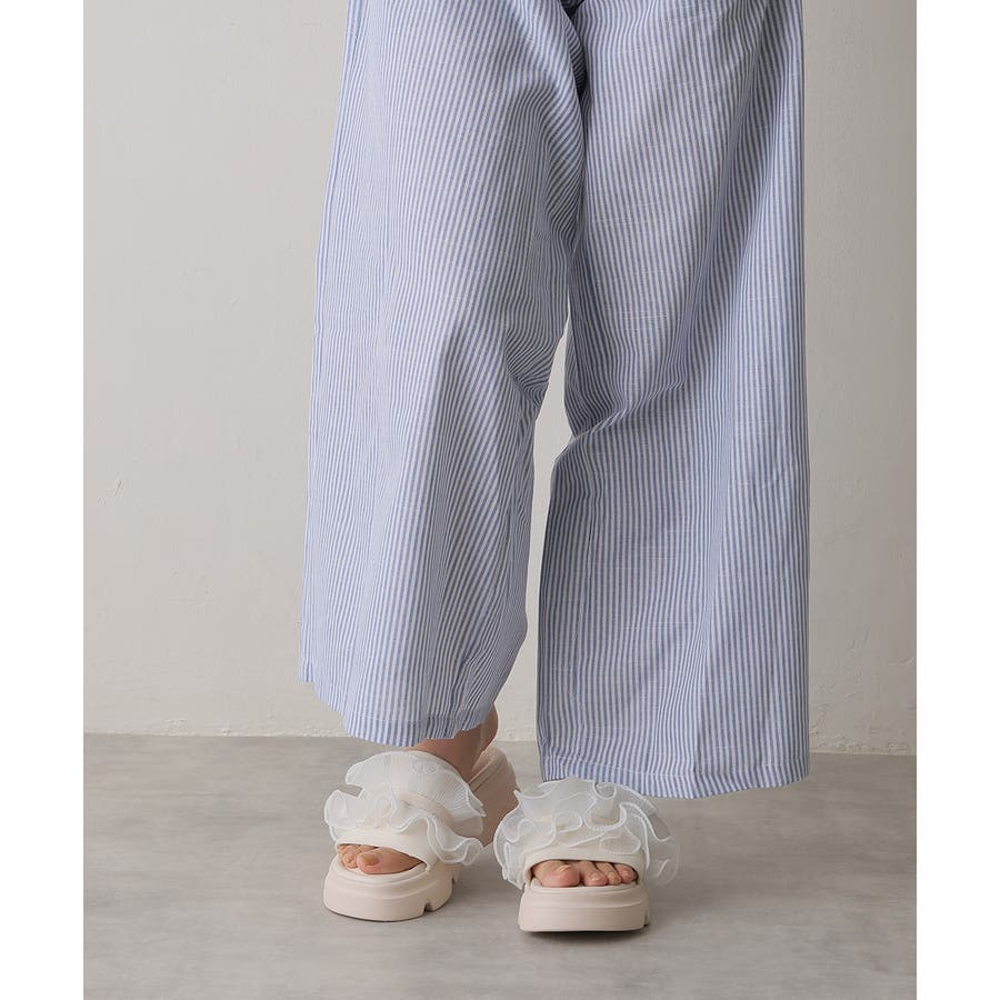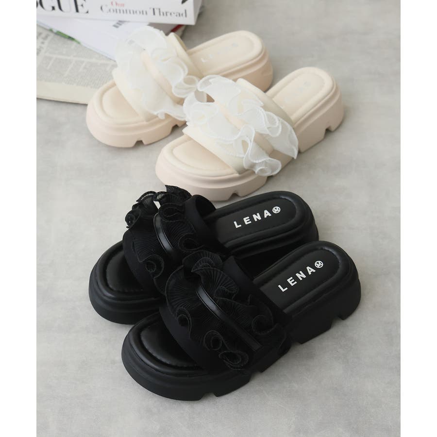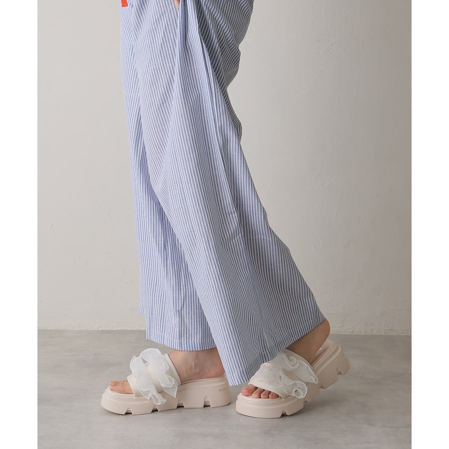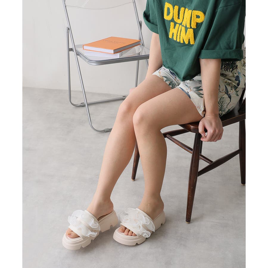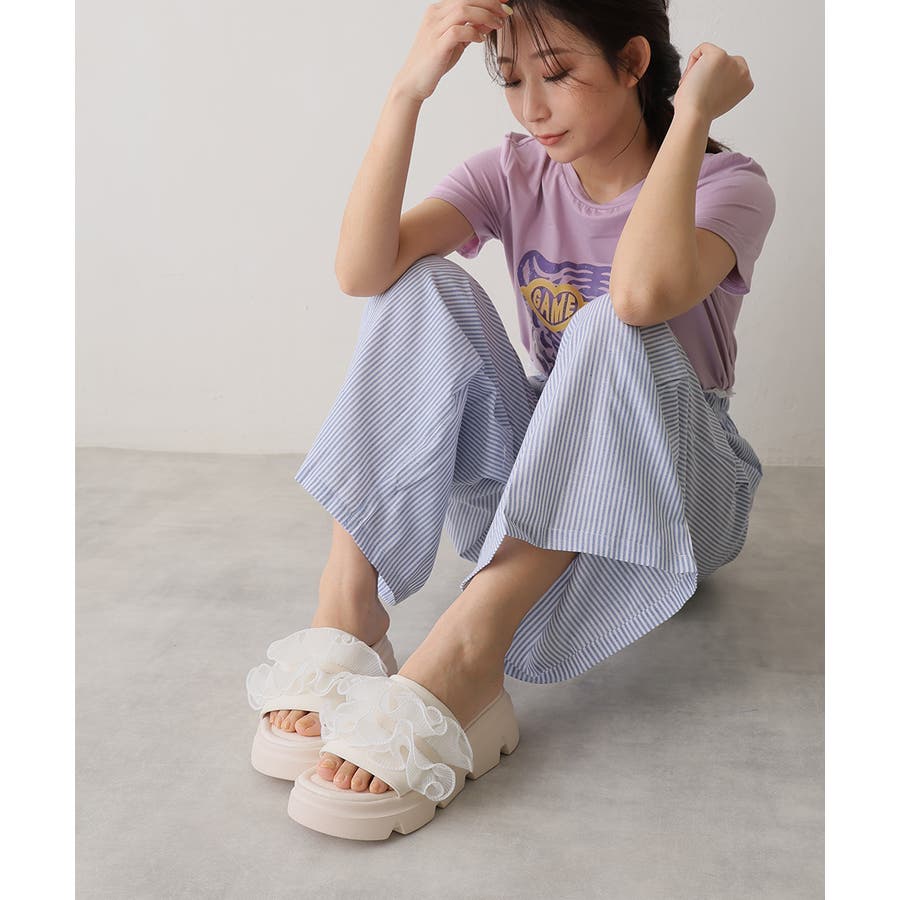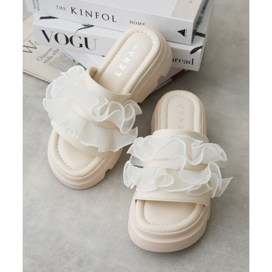 甘すぎない上品なフリルとさりげないボリューム感の厚底で、足元に程よい存在感をプラスします♪