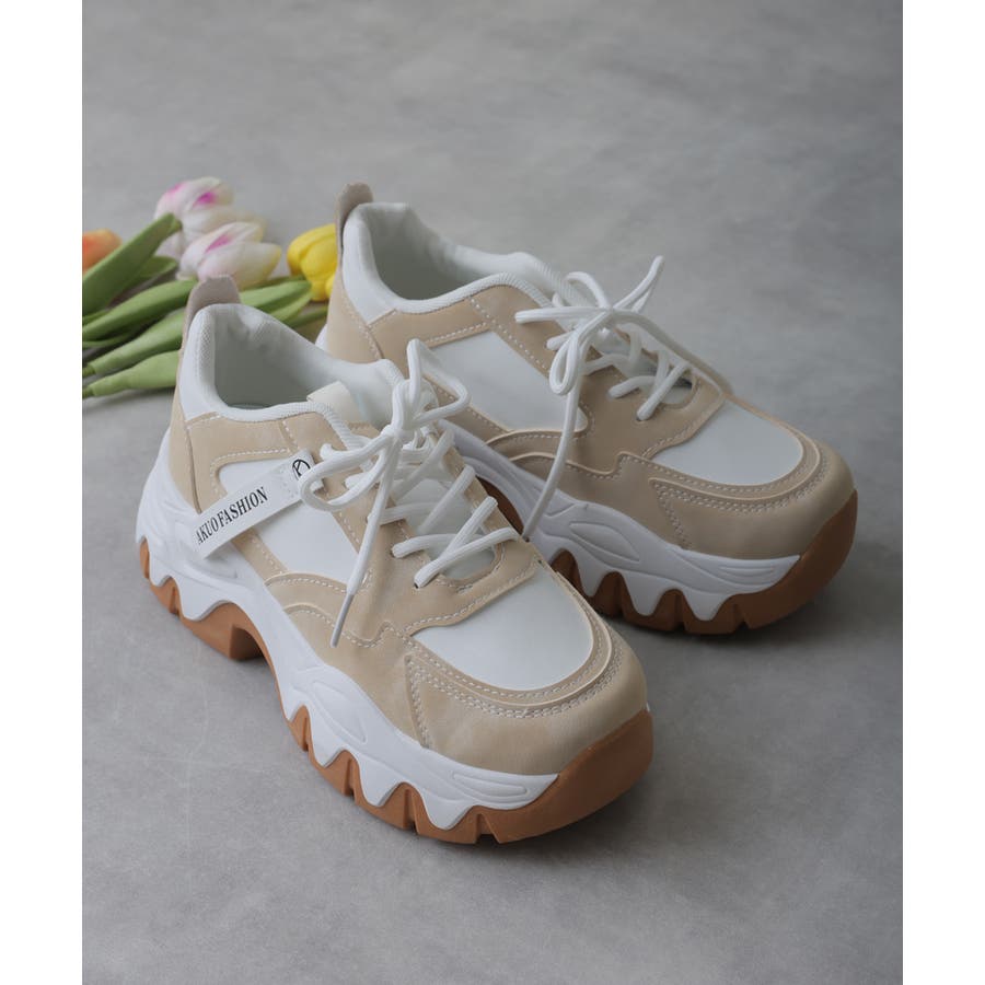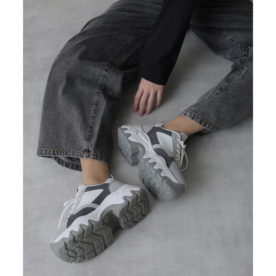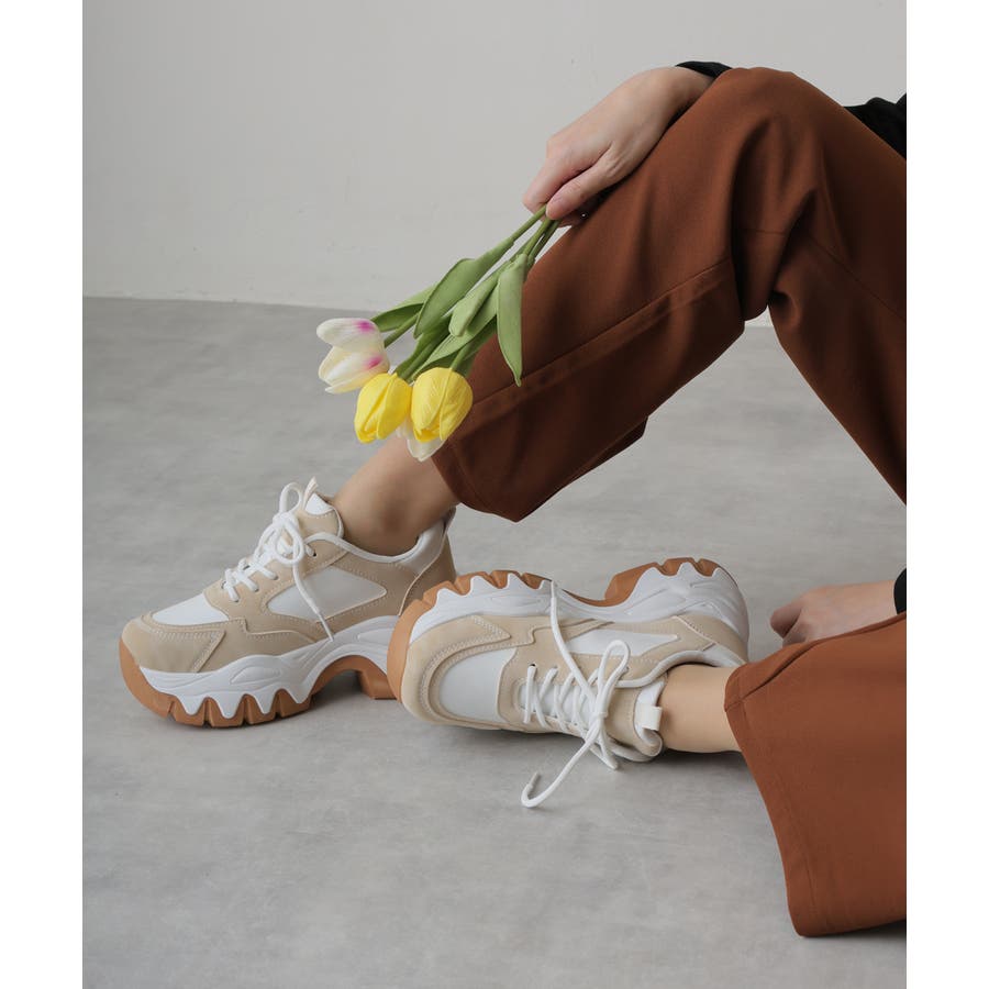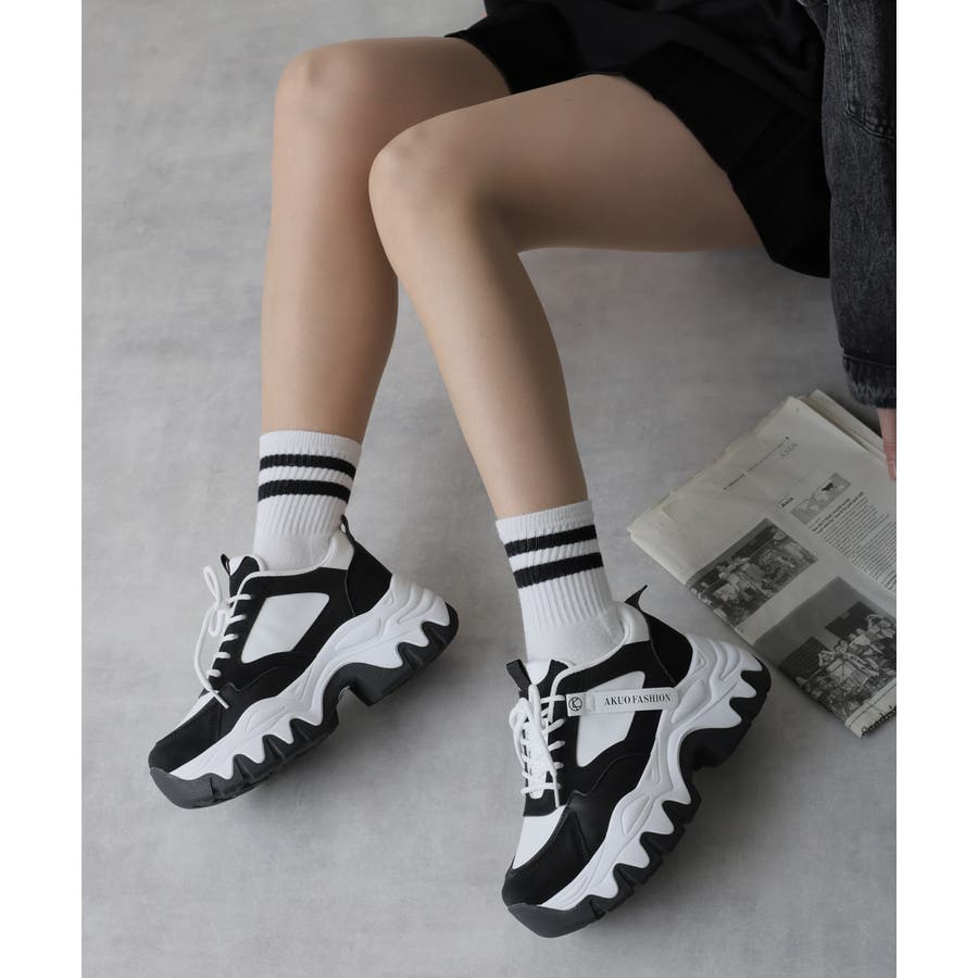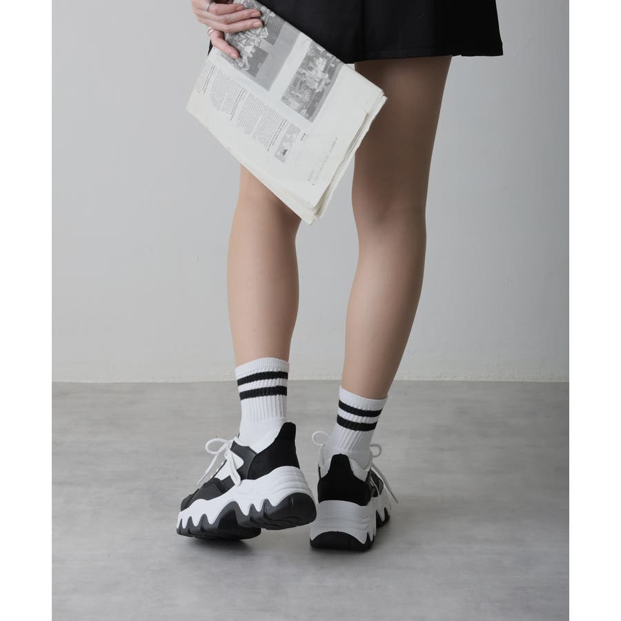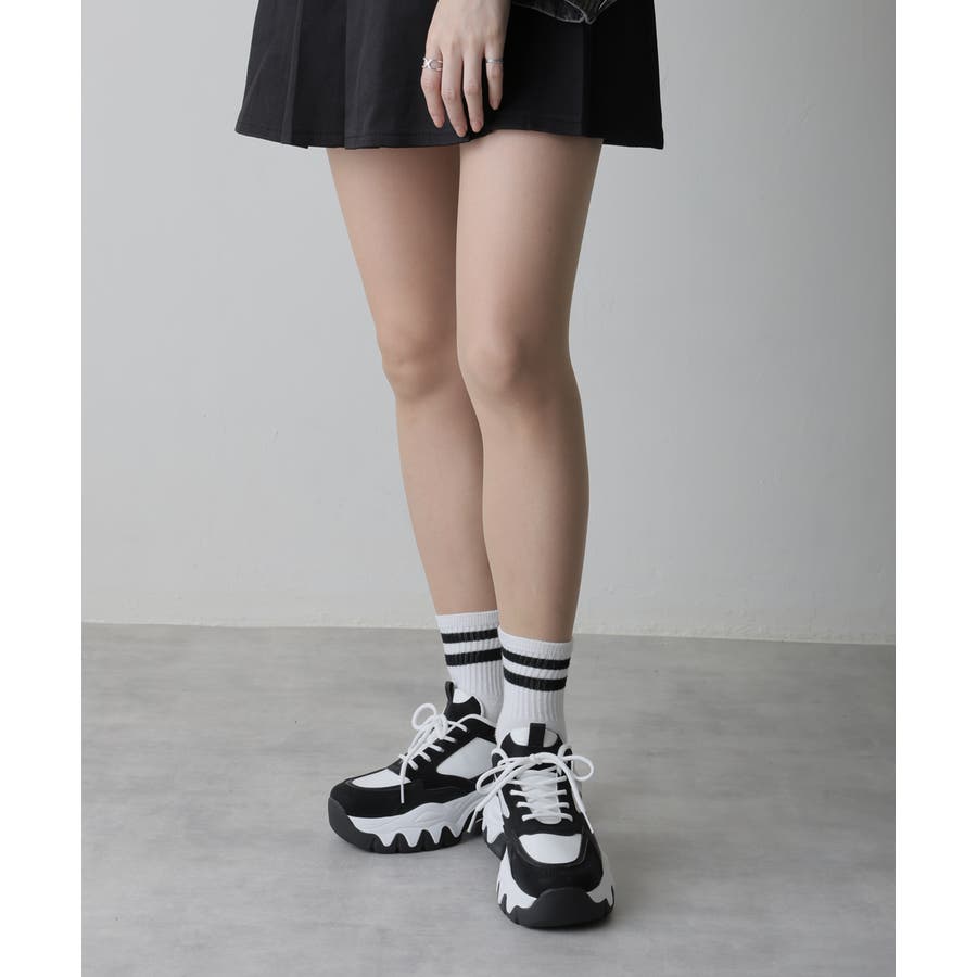 【24年秋冬新作】厚底 凹凸ボリュームソール 配色カラー スニーカー