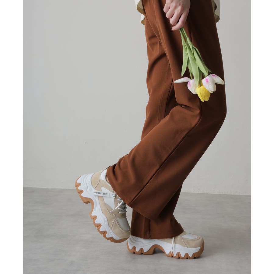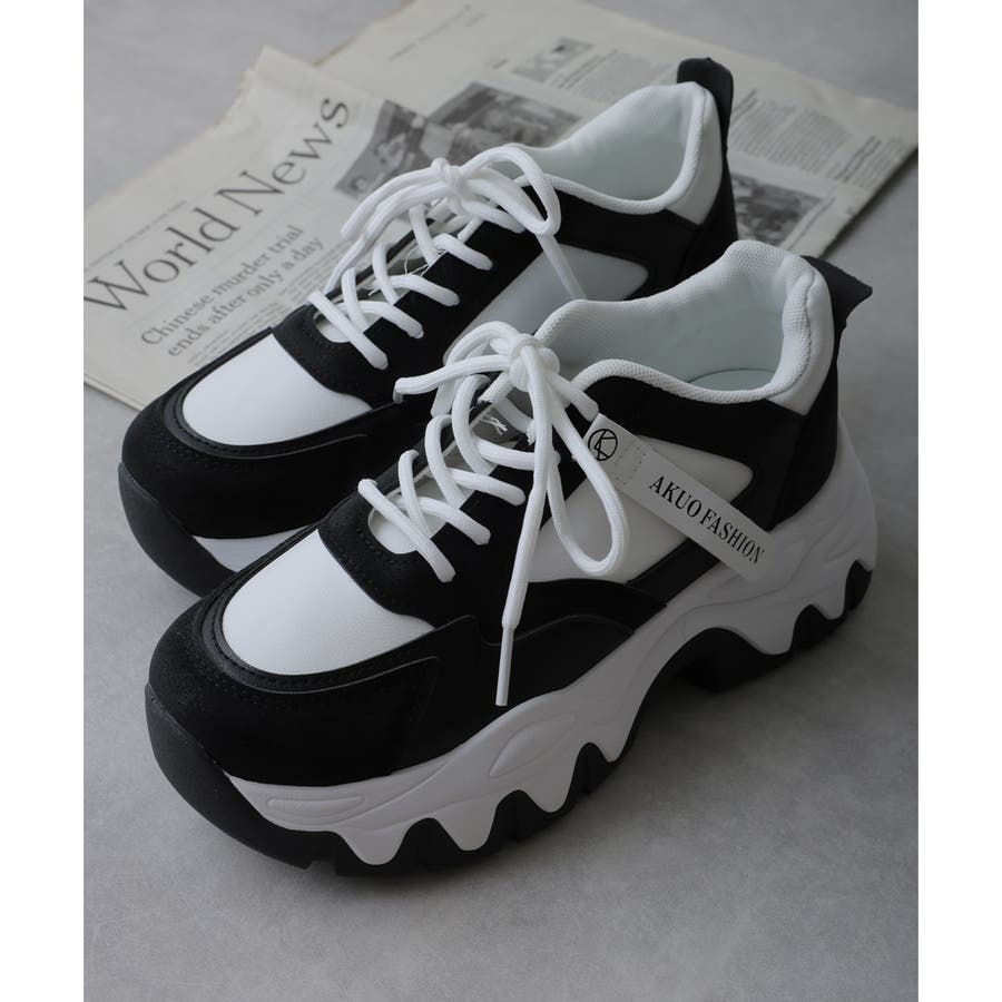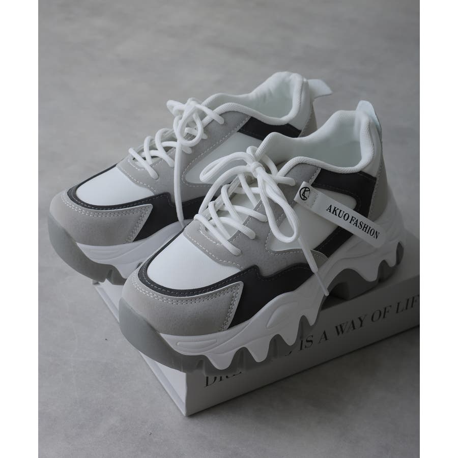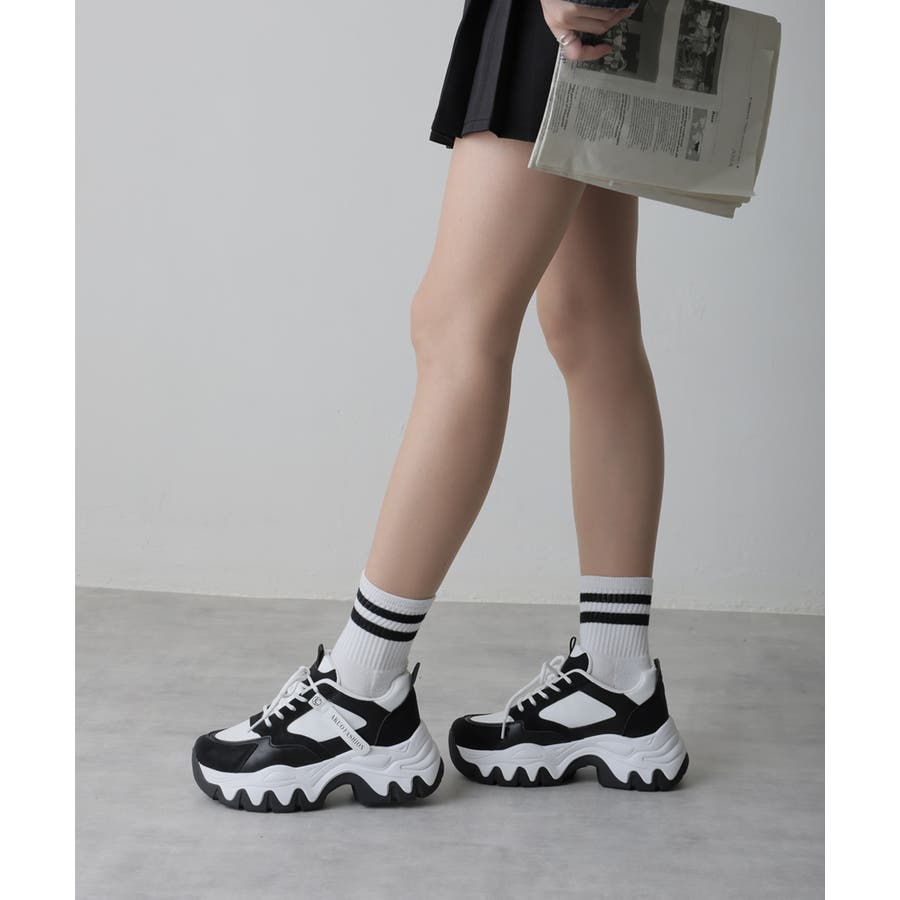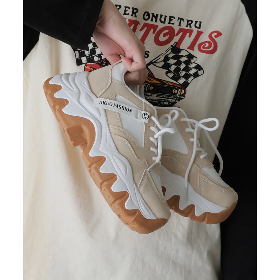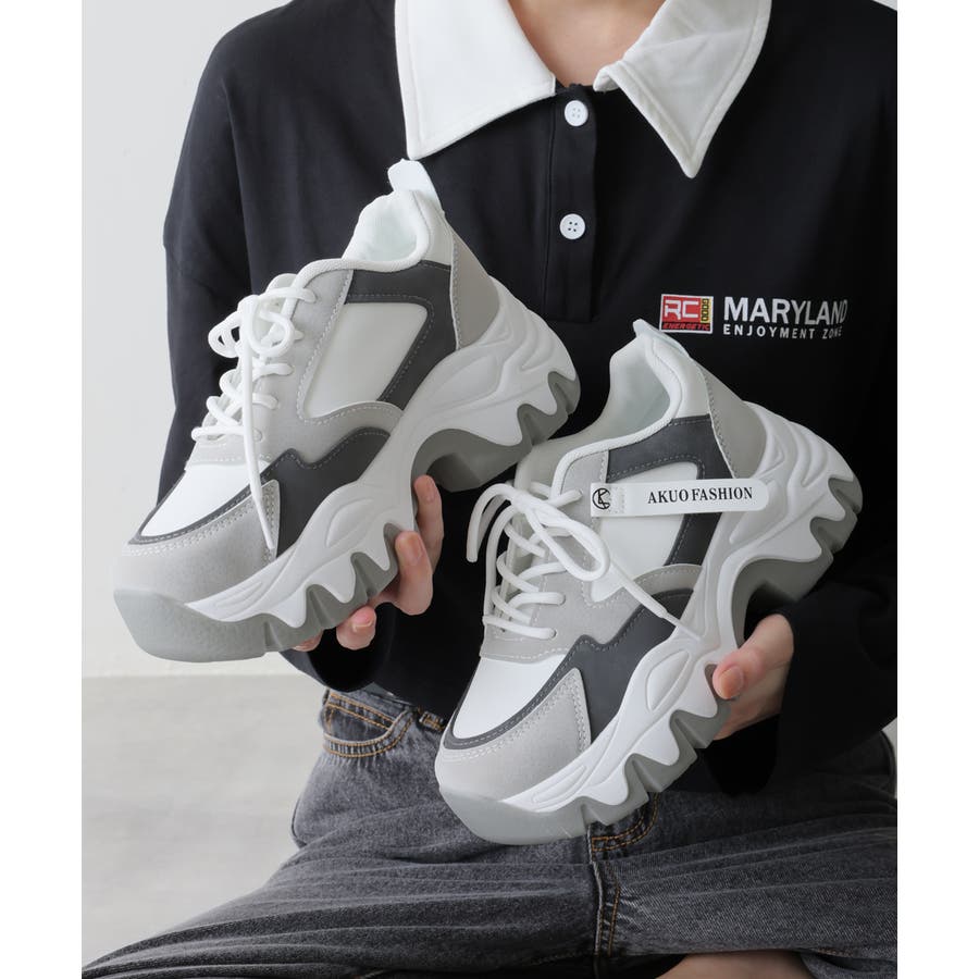 【24年秋冬新作】厚底 凹凸ボリュームソール 配色カラー スニーカー