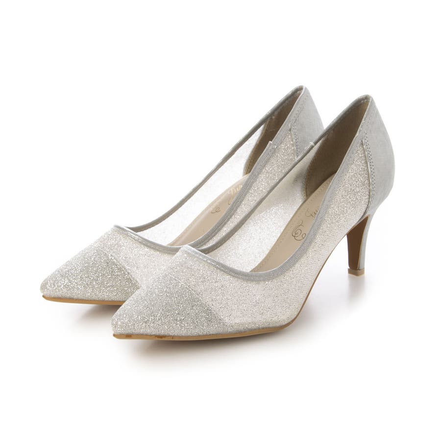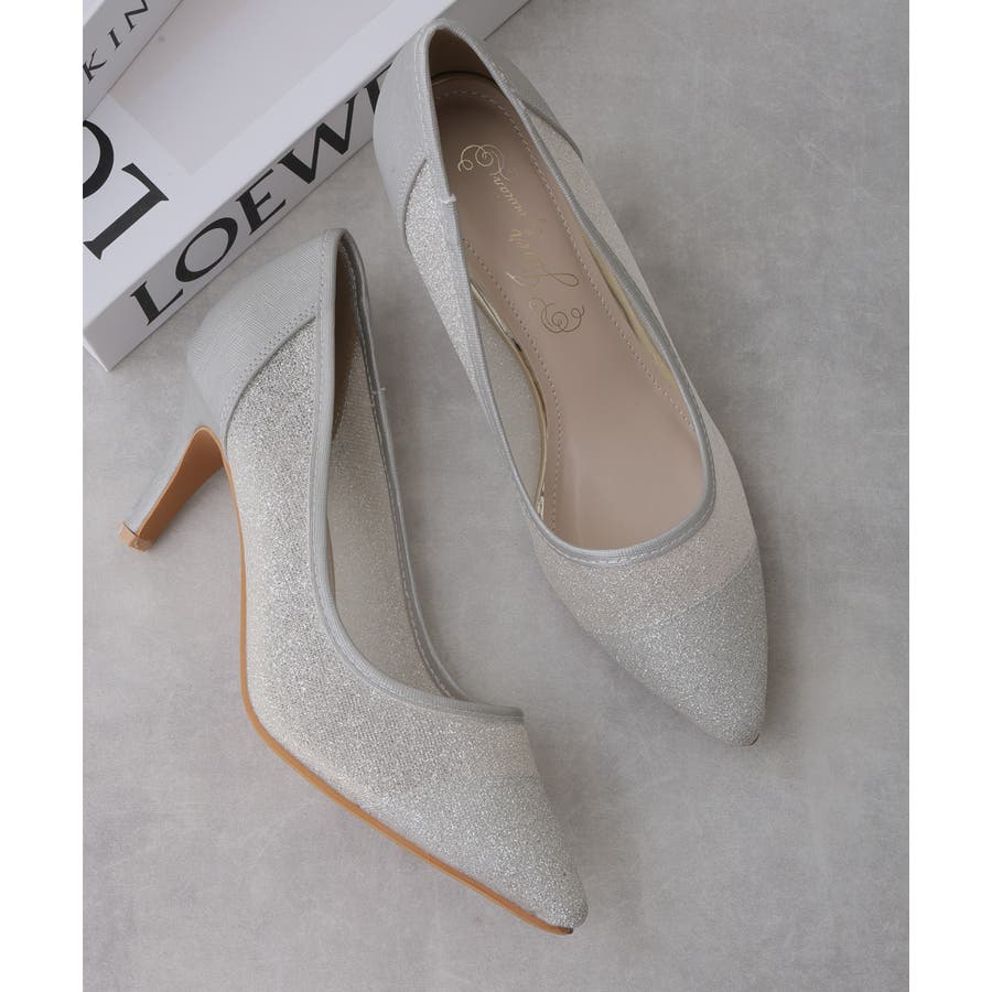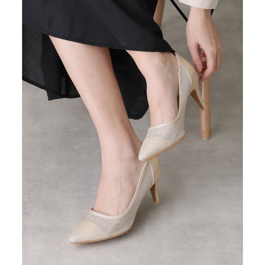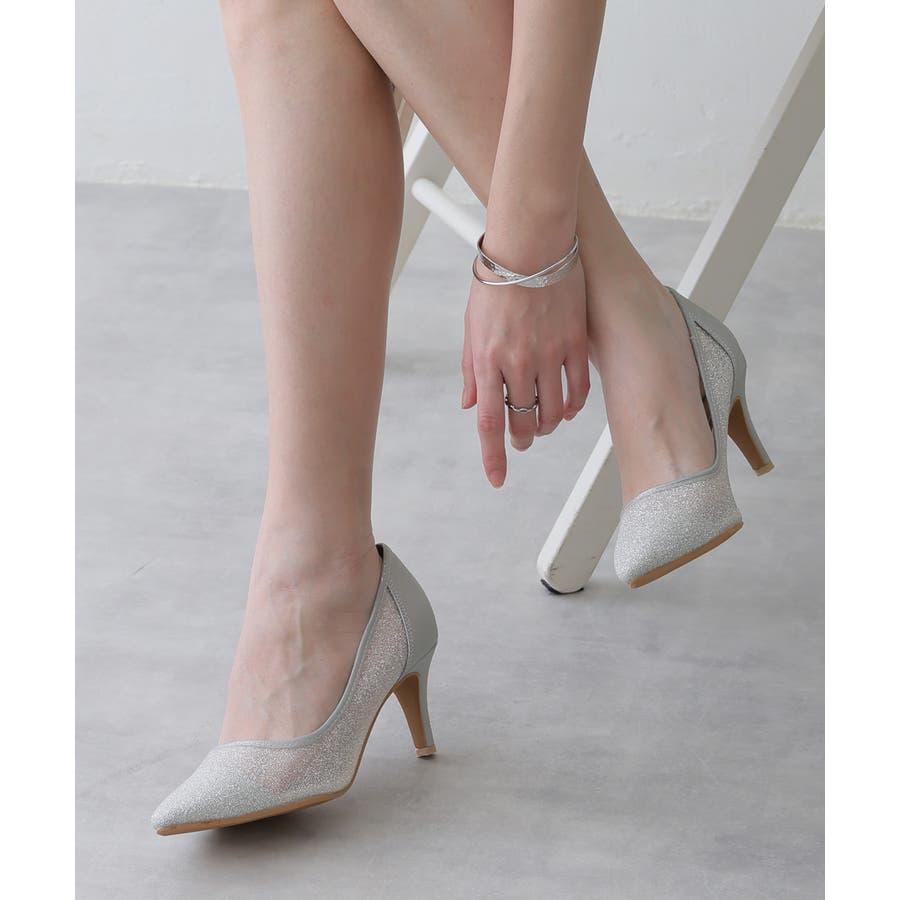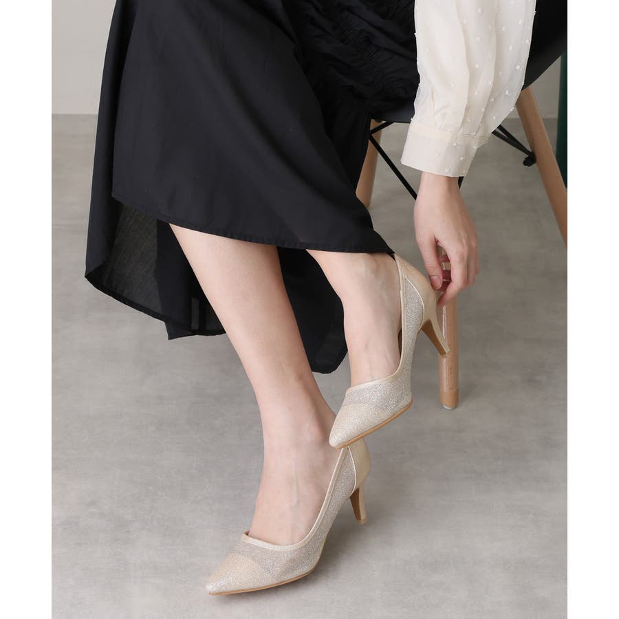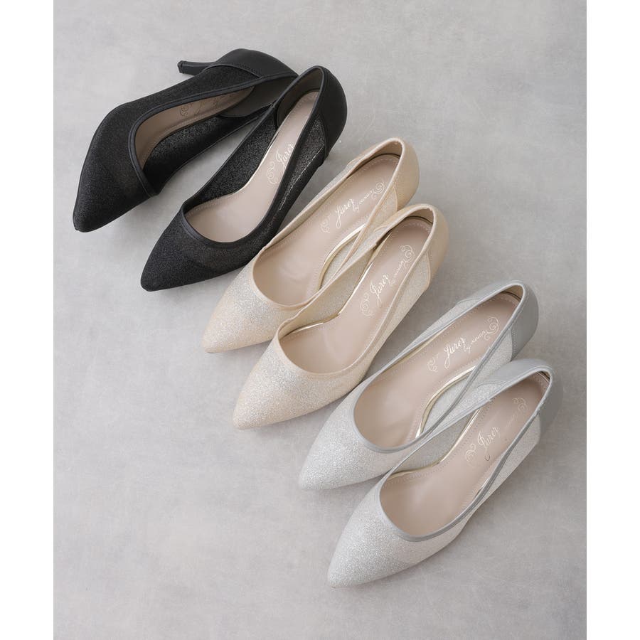 チュール素材で透け感のあるキラキラグリッターパンプス!