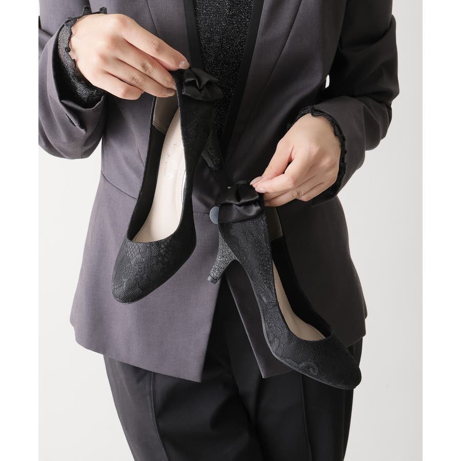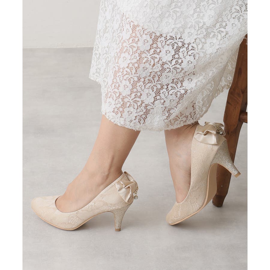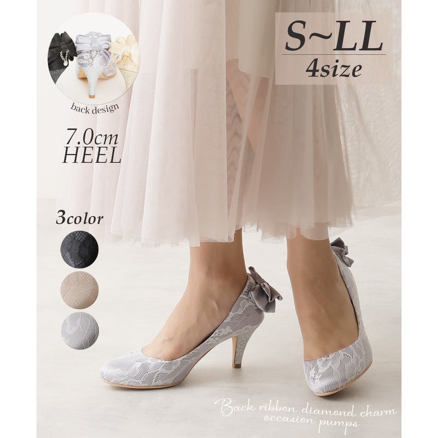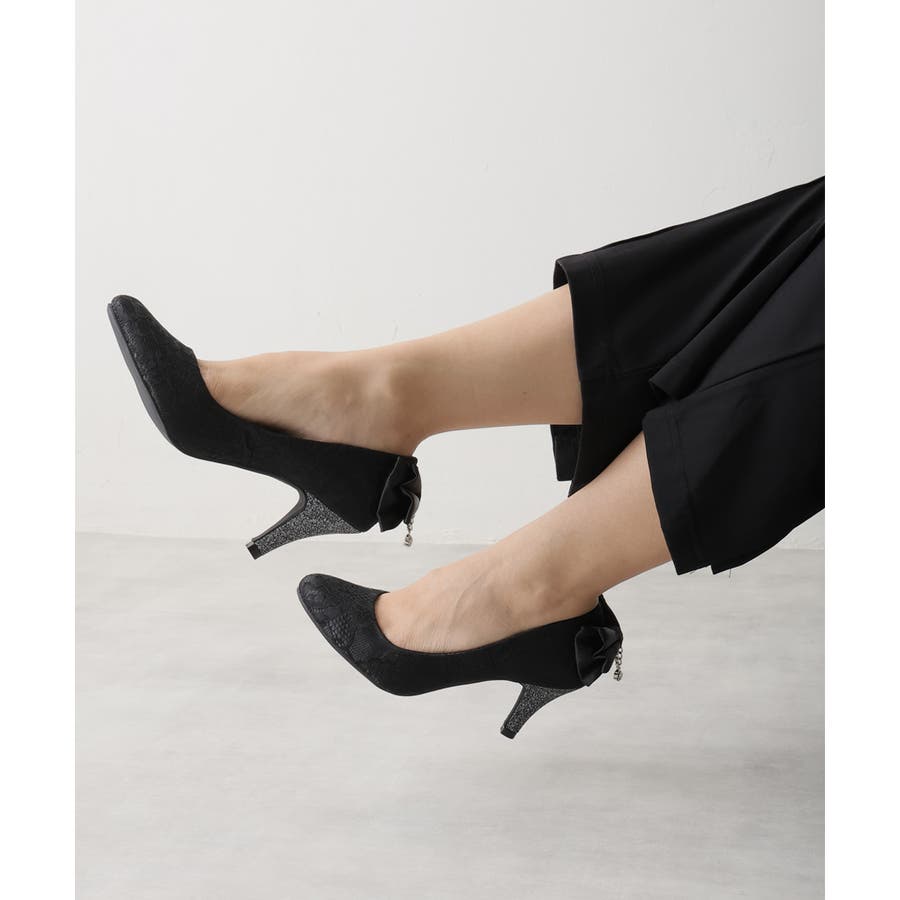 【25年春夏新作】バックリボン ダイヤチャーム オケージョンパンプス