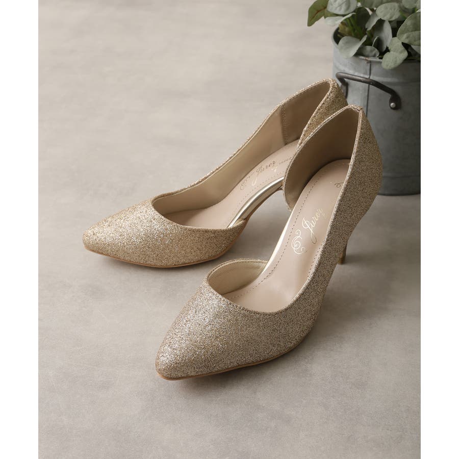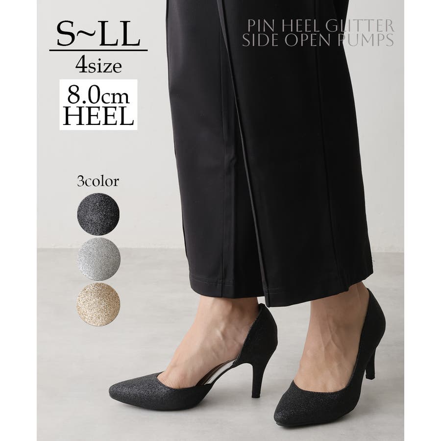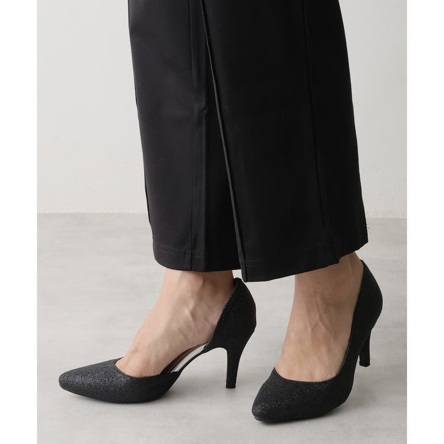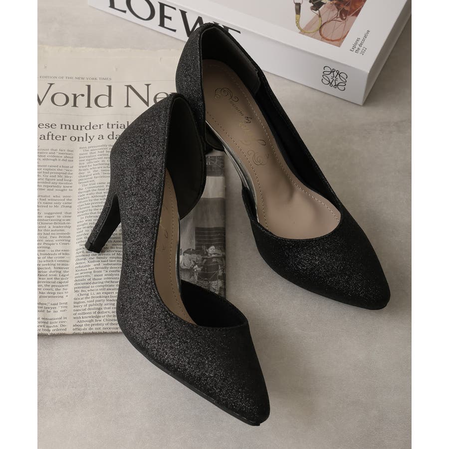 【25年春夏新作】8.0cm ピンヒール グリッター サイドオープン パンプス