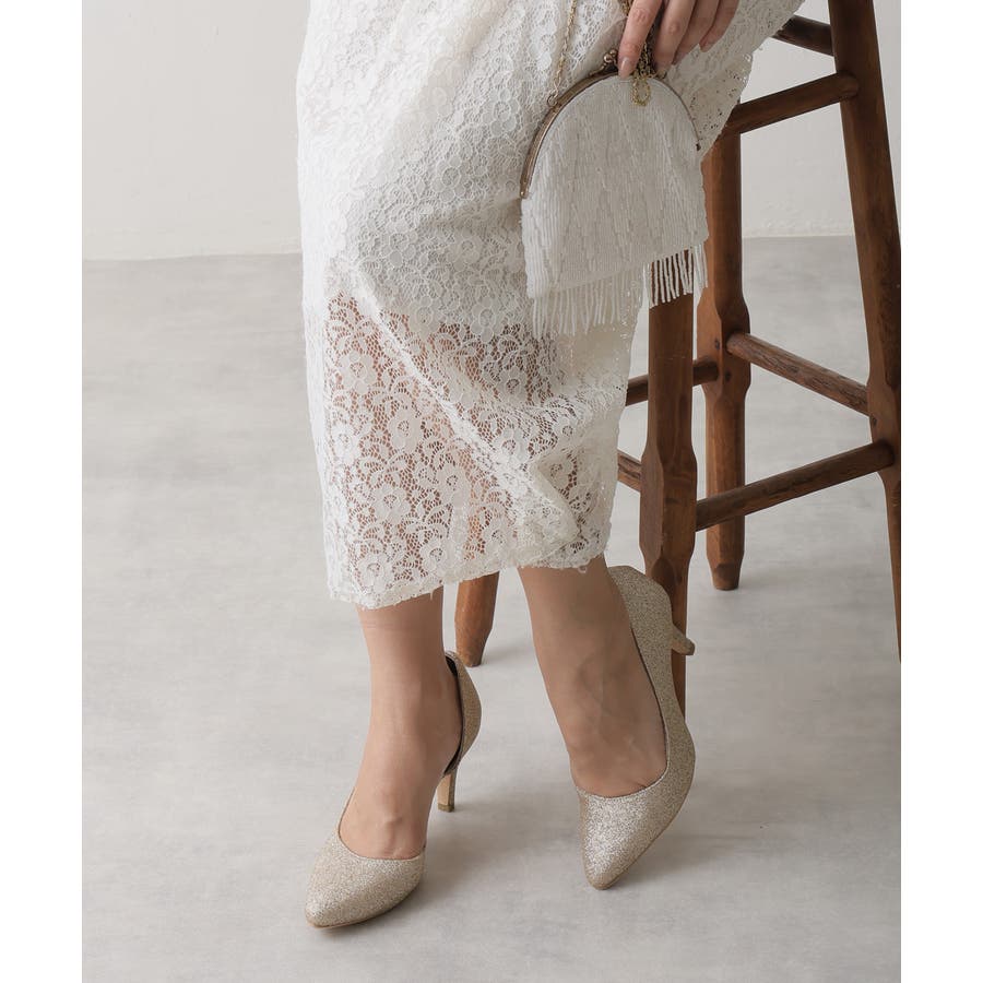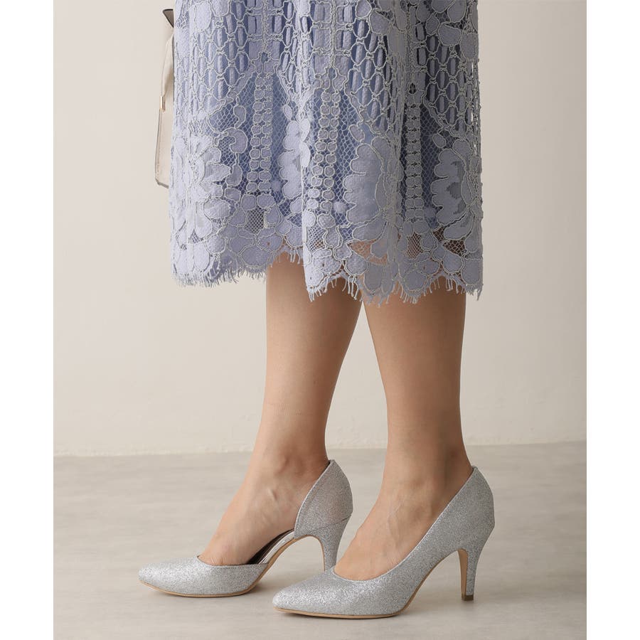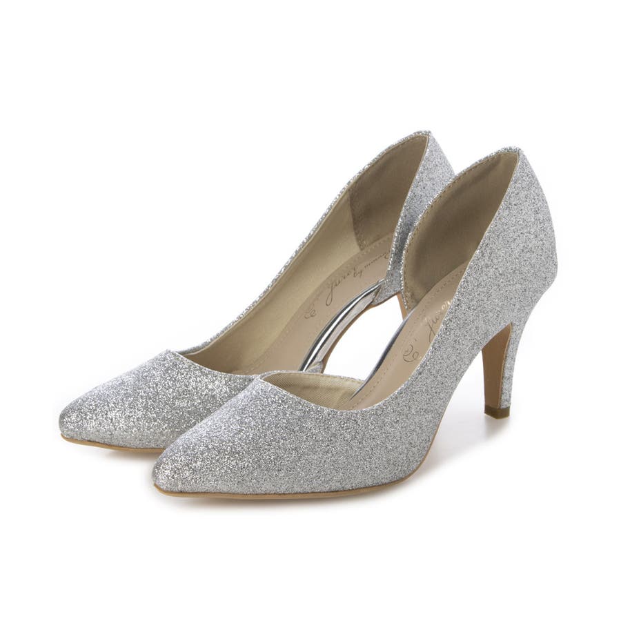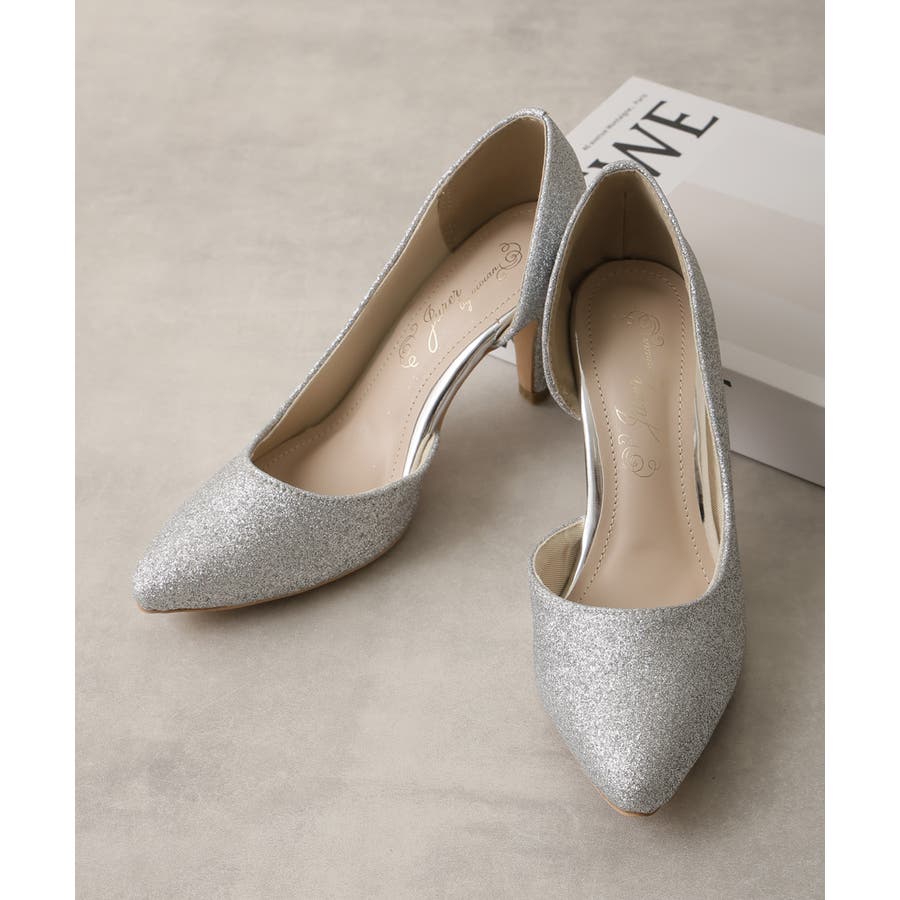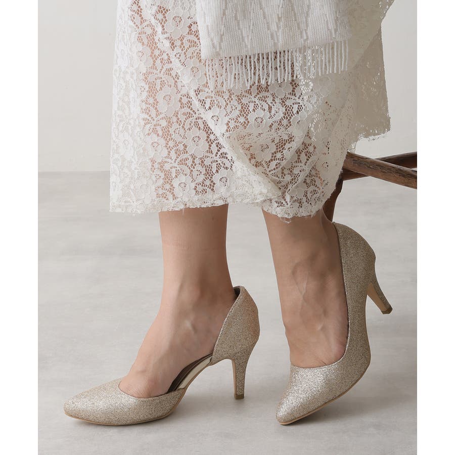【25年春夏新作】8.0cm ピンヒール グリッター サイドオープン パンプス