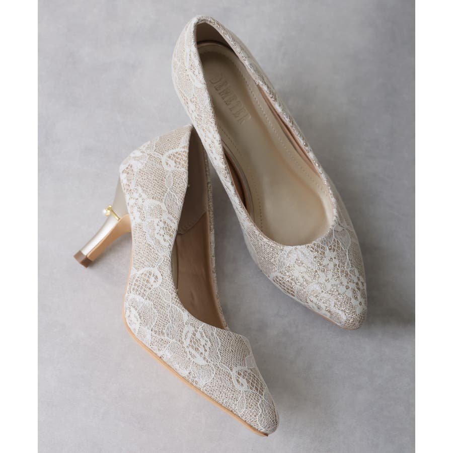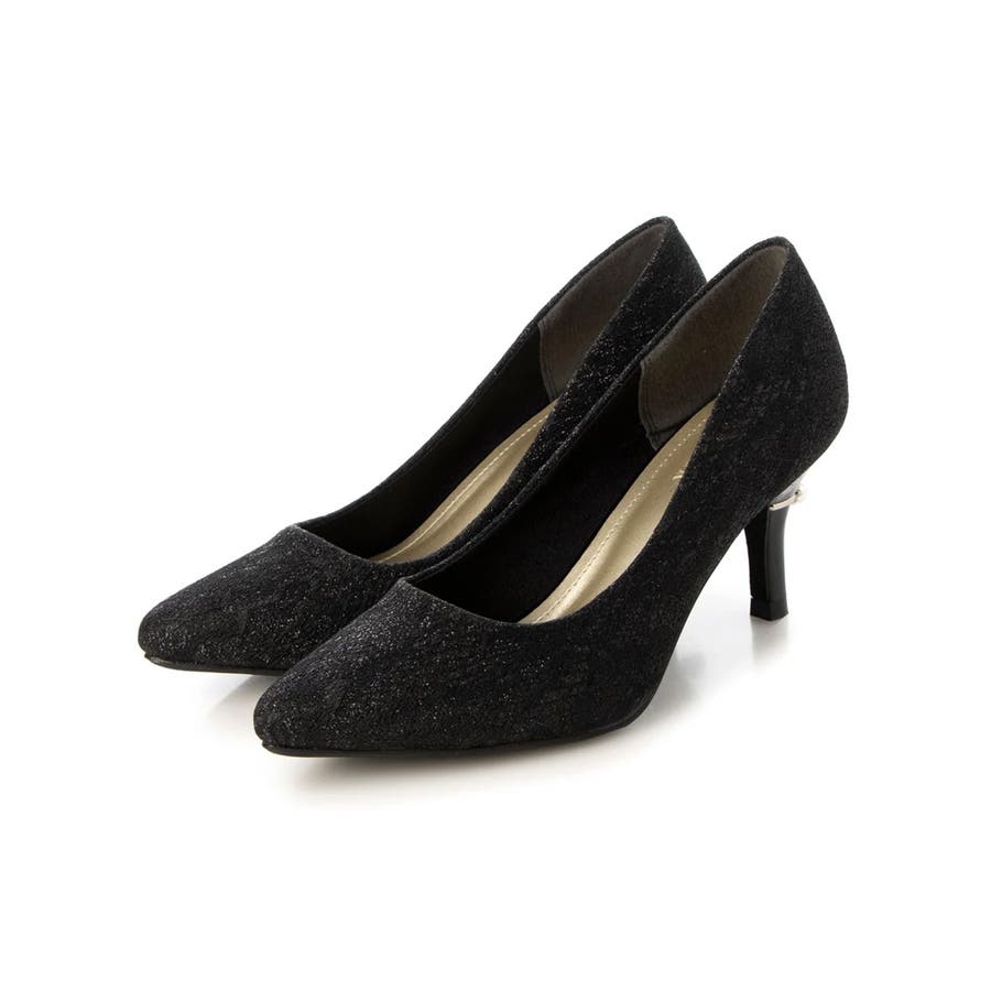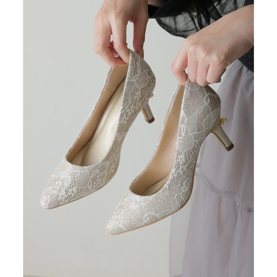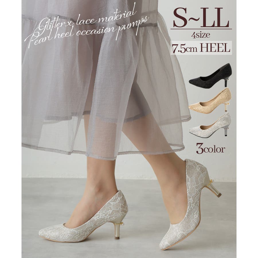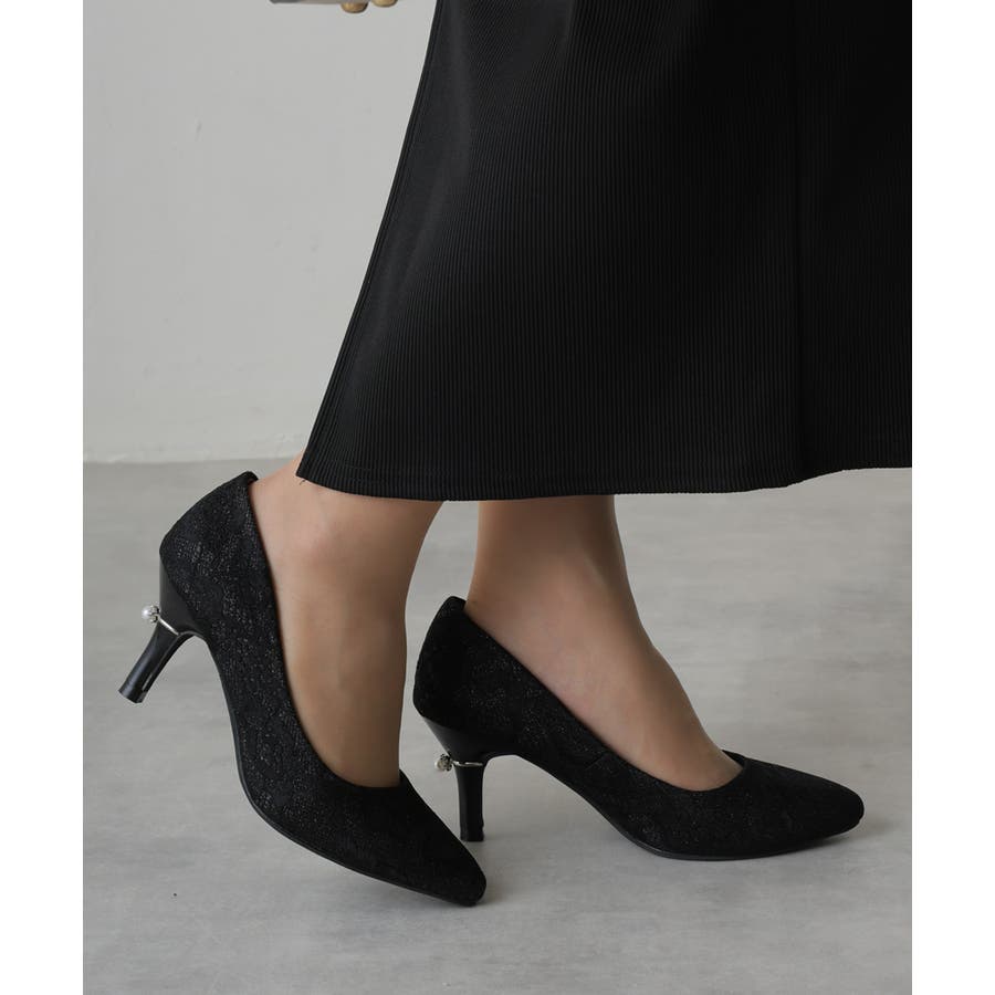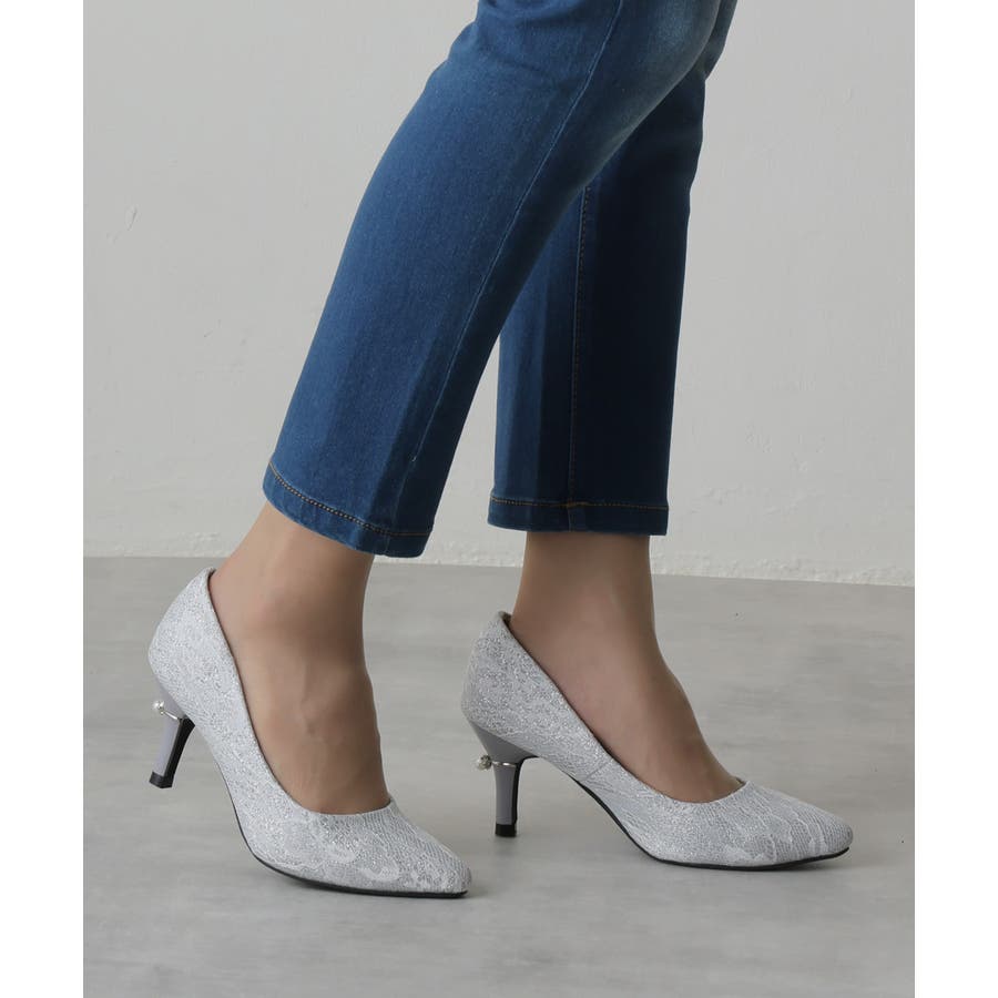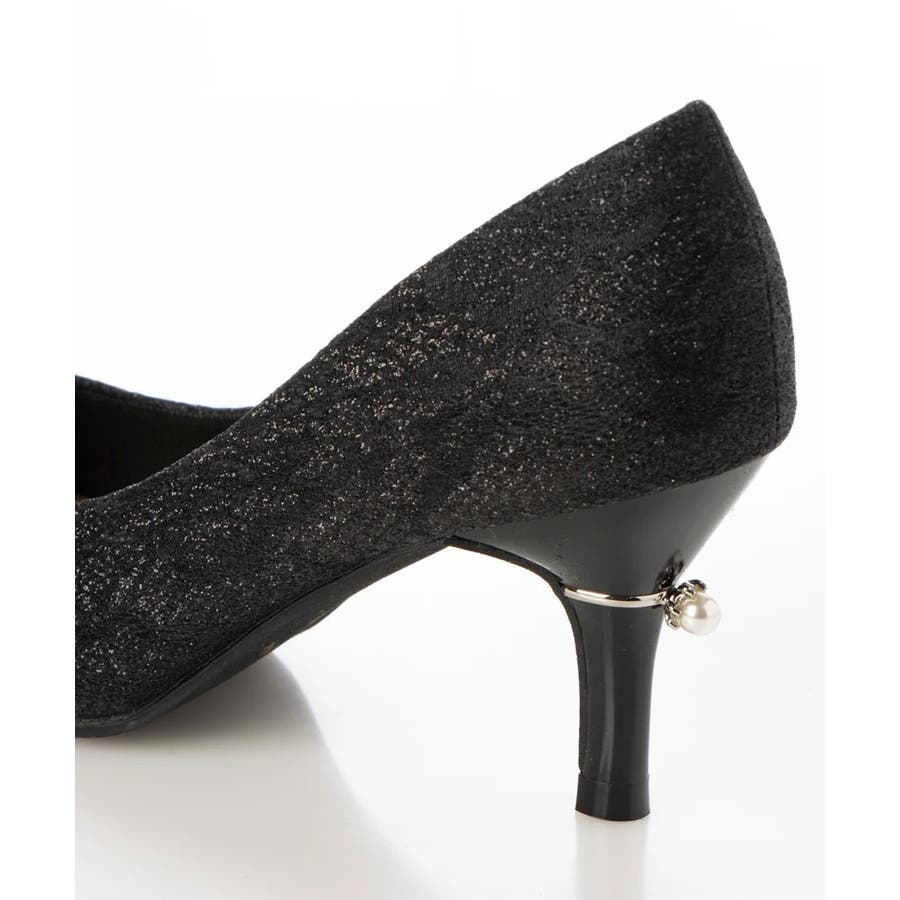 【25年春夏再販】グリッター×レース素材☆パールヒール オケージョンパンプス