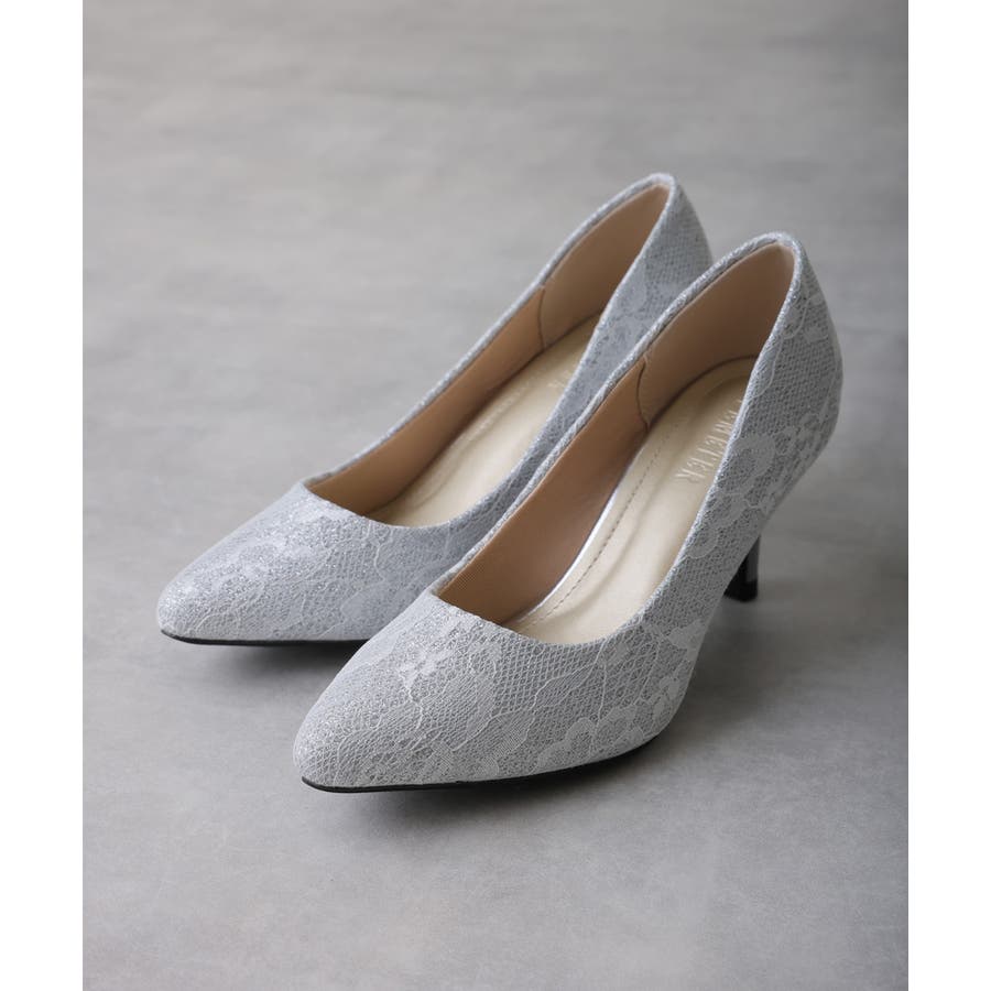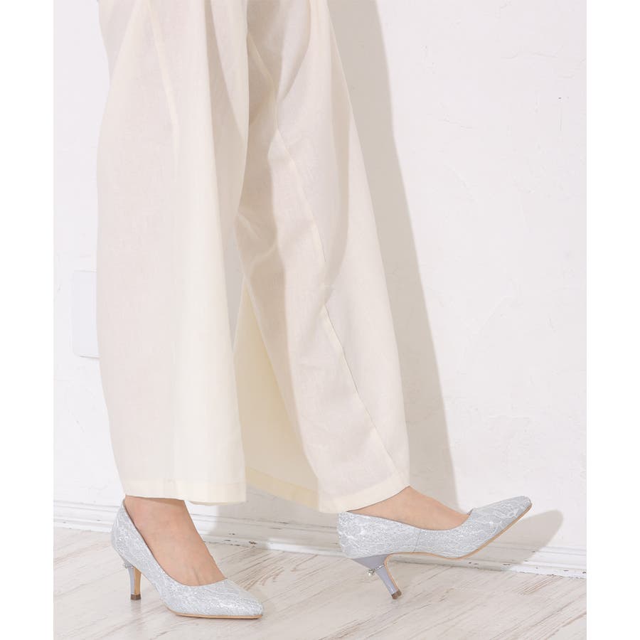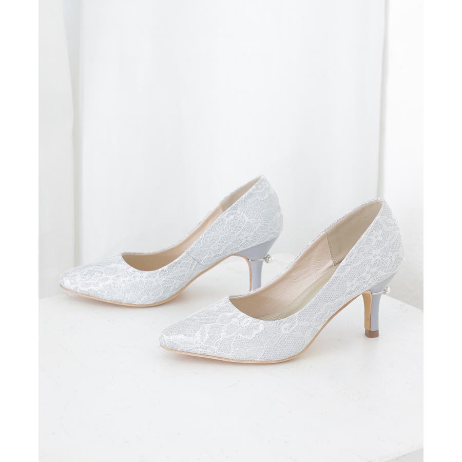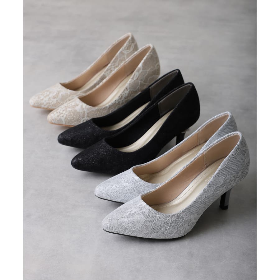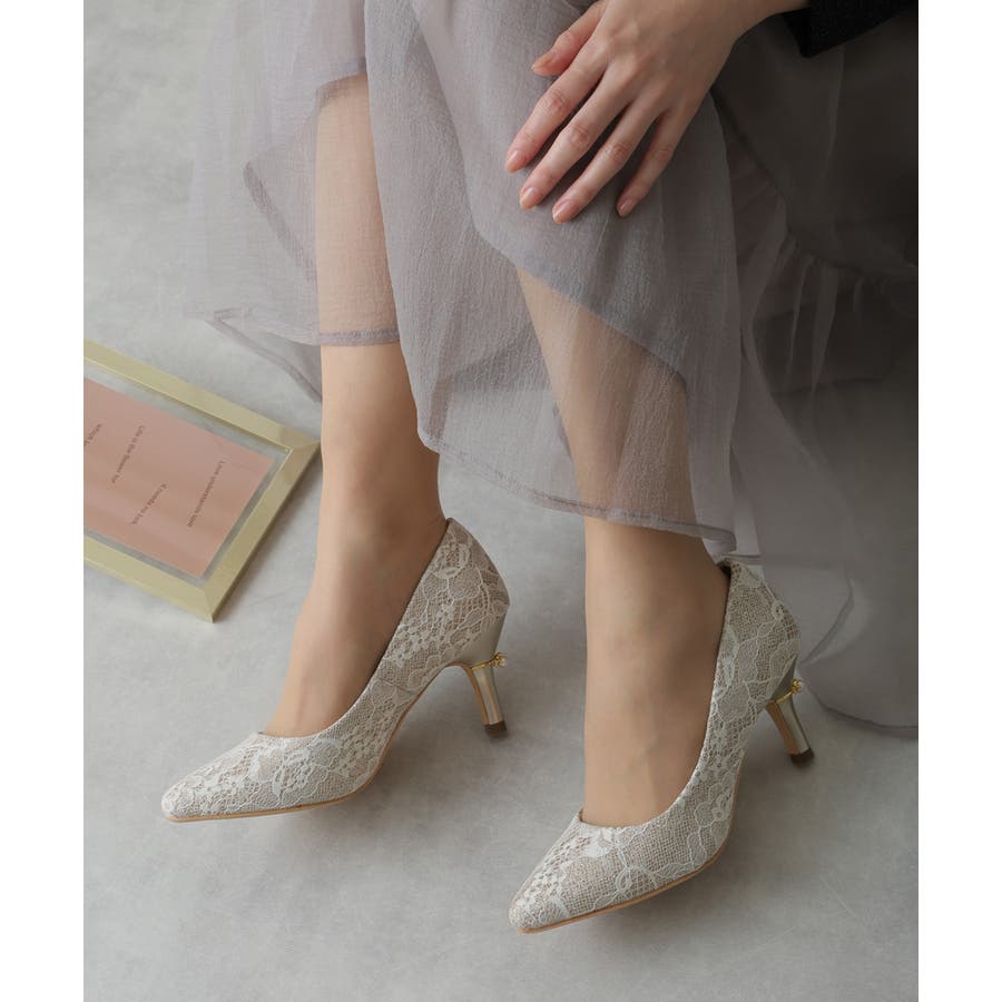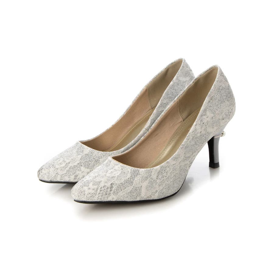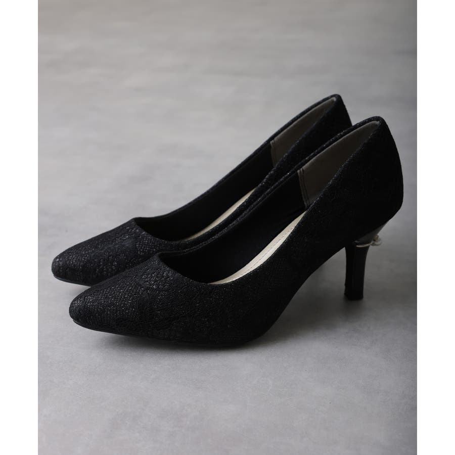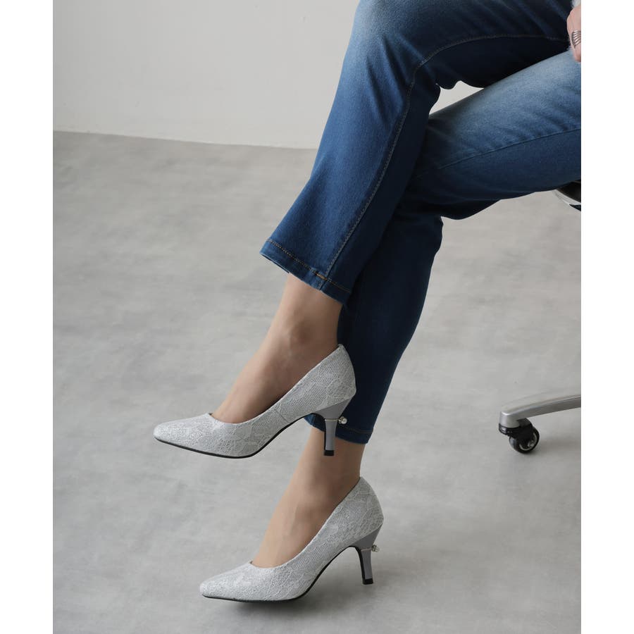 【25年春夏再販】グリッター×レース素材☆パールヒール オケージョンパンプス