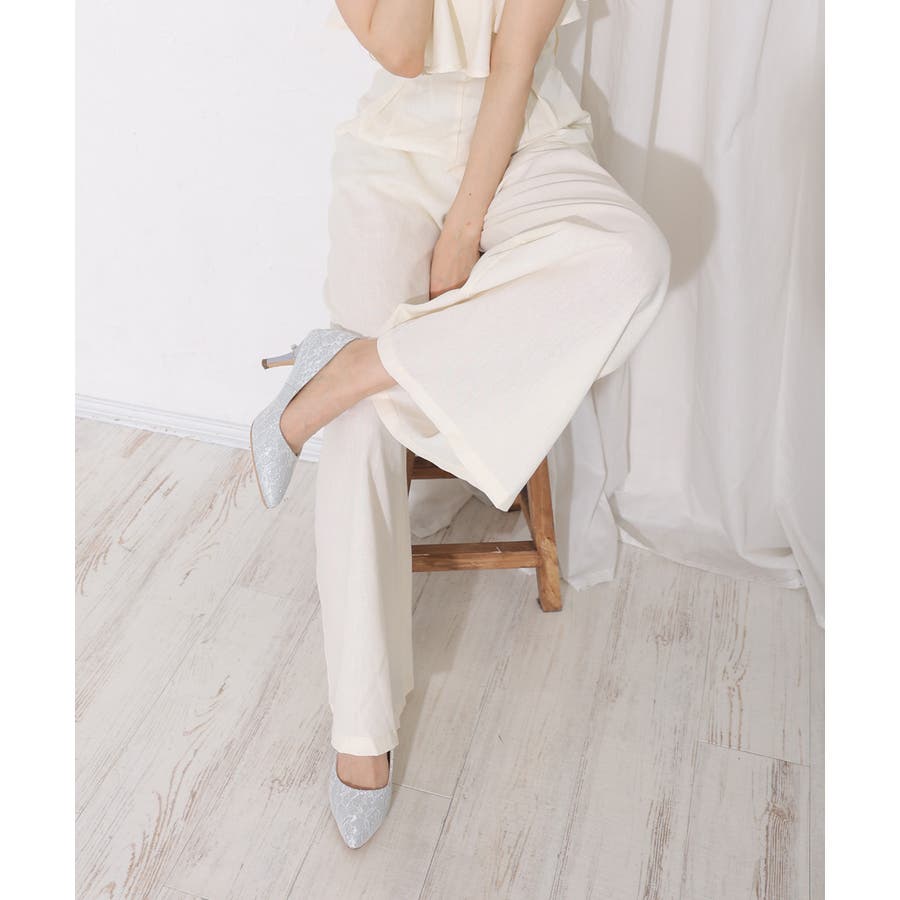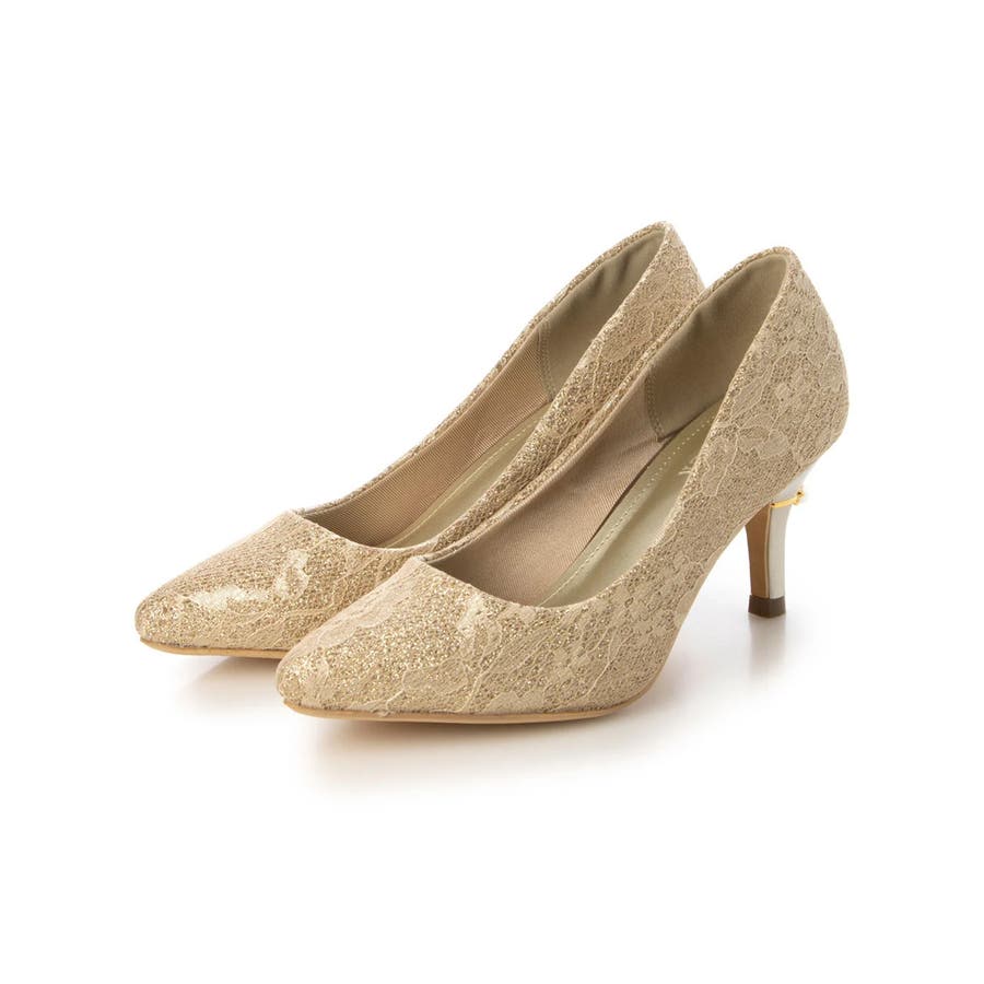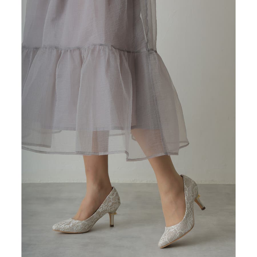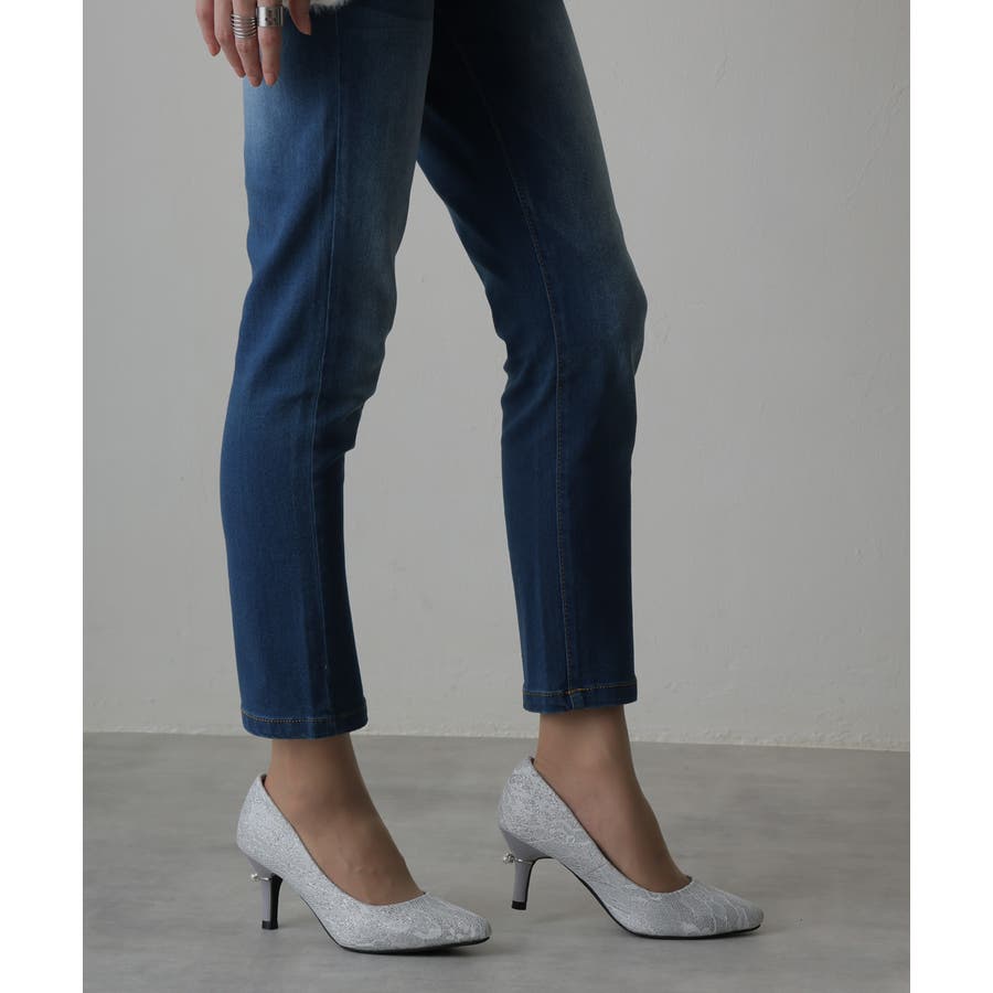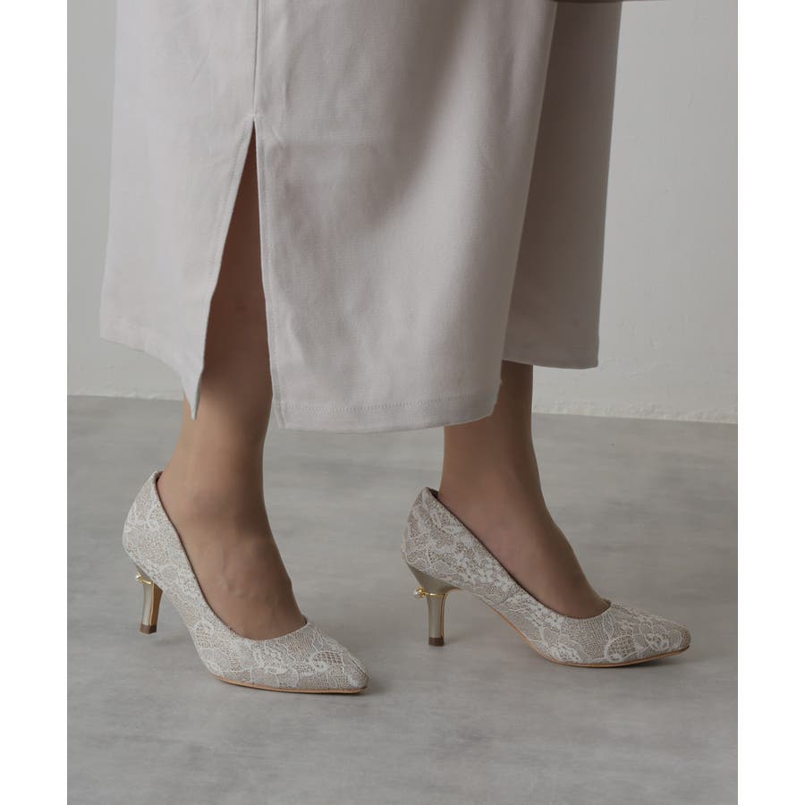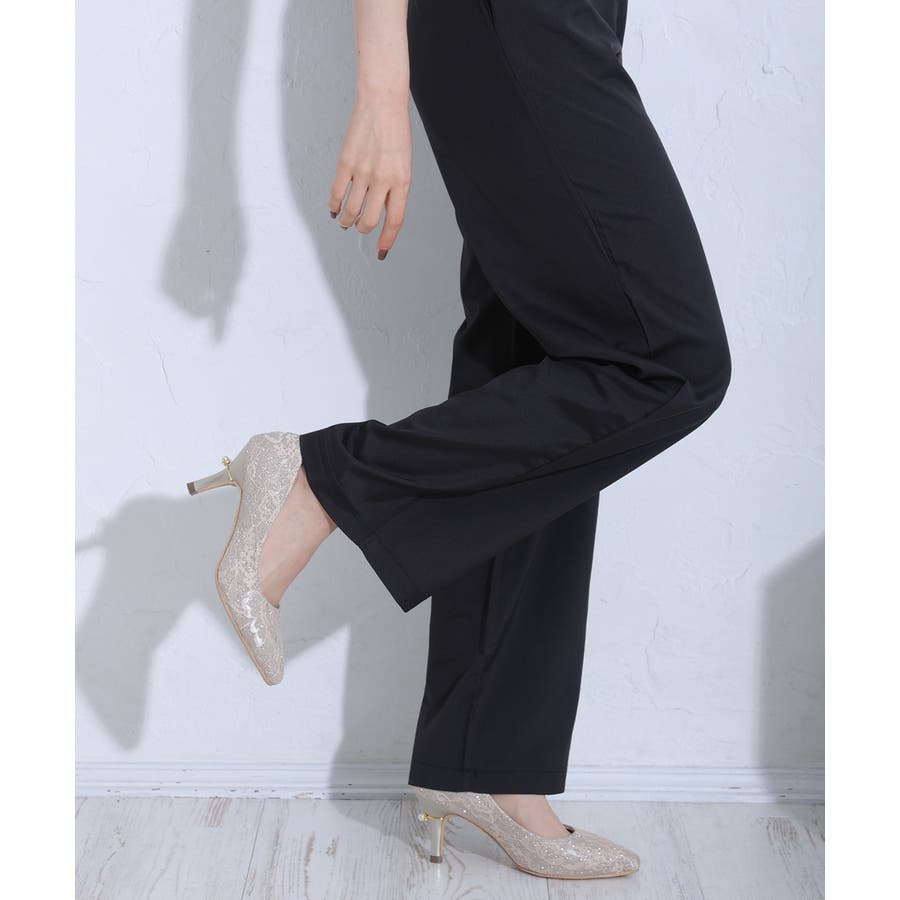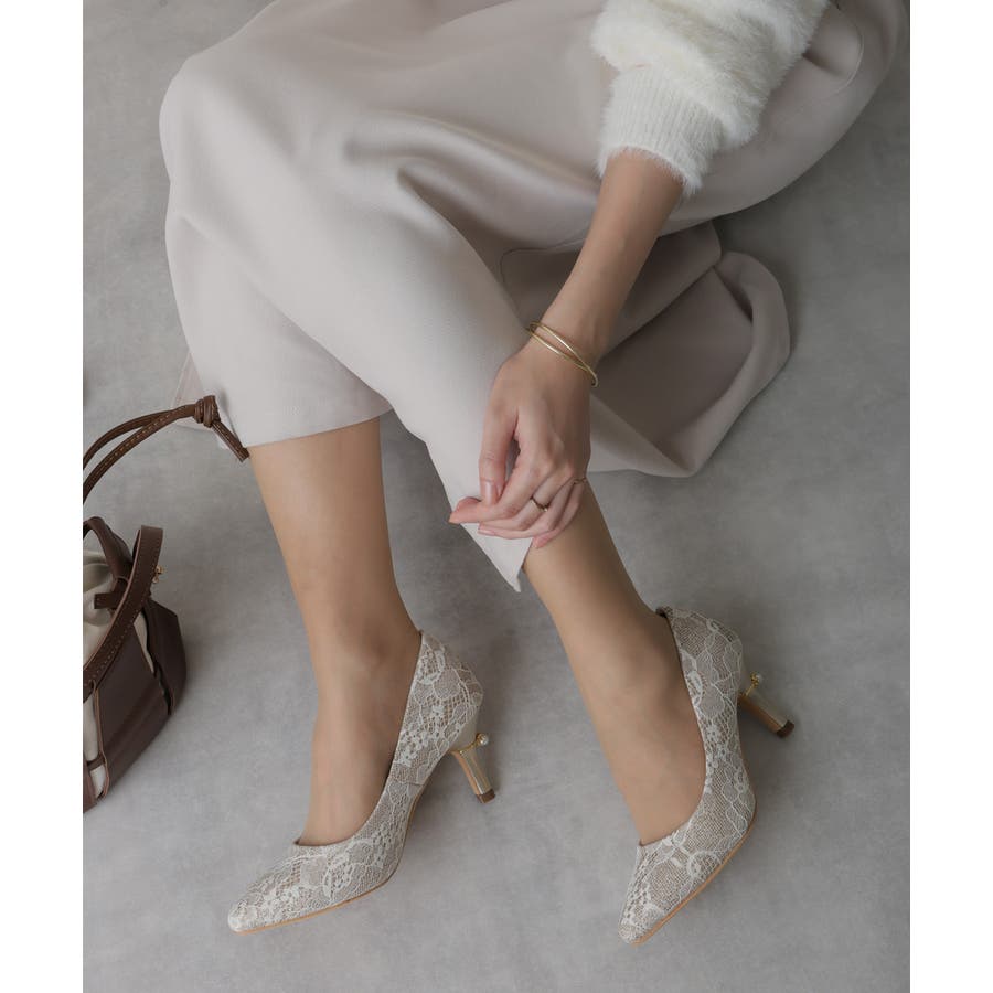 【25年春夏再販】グリッター×レース素材☆パールヒール オケージョンパンプス