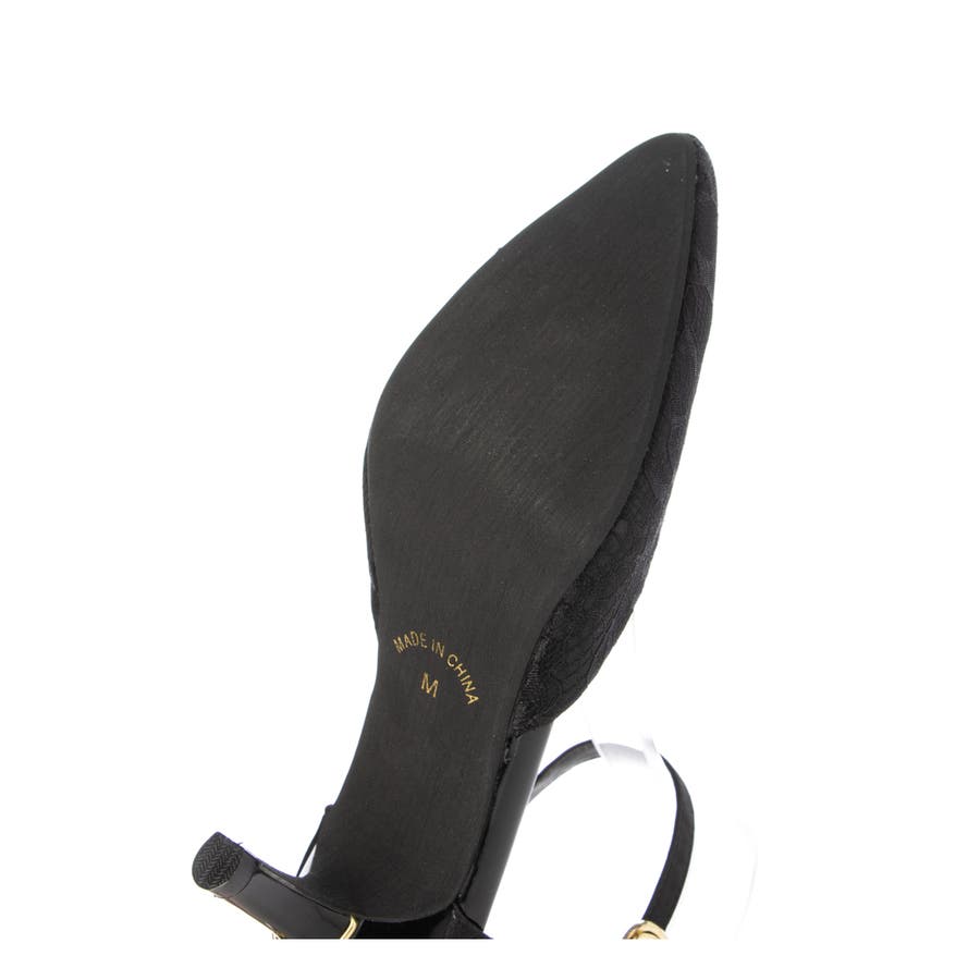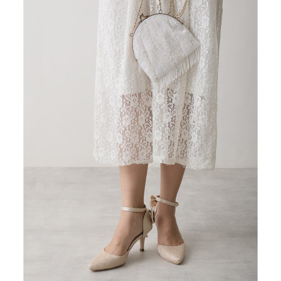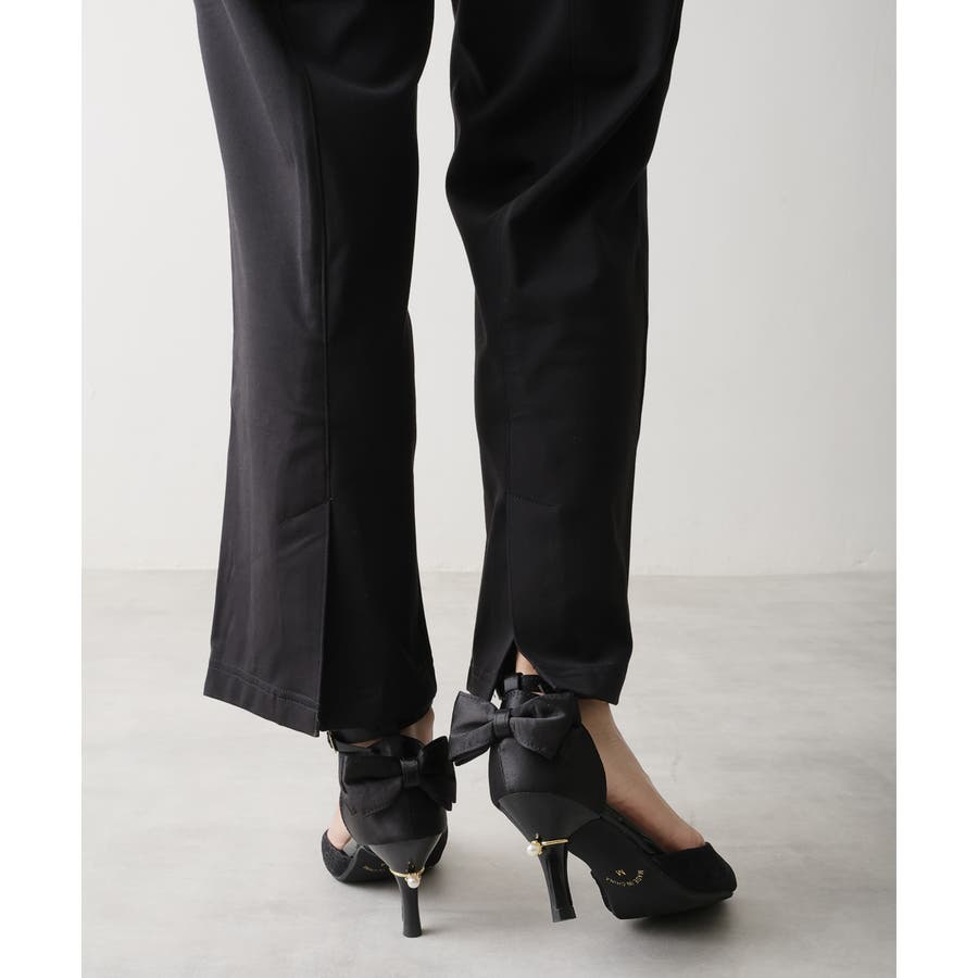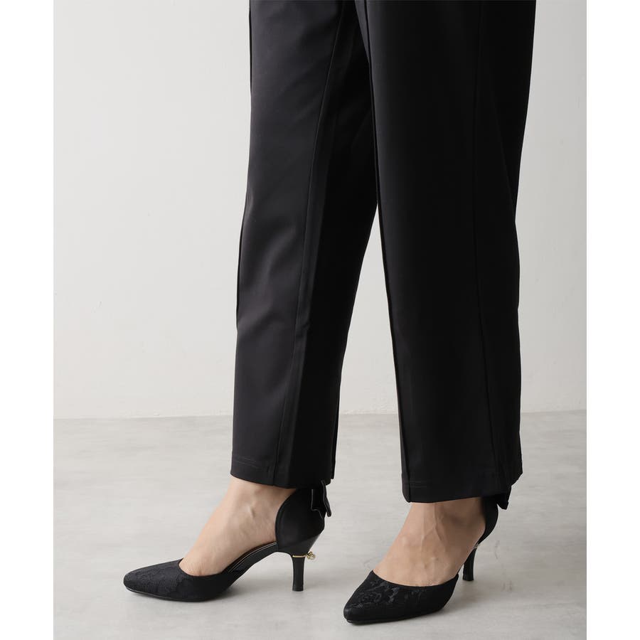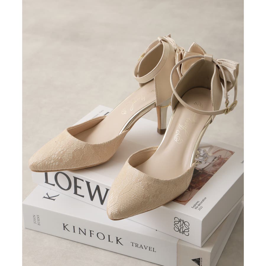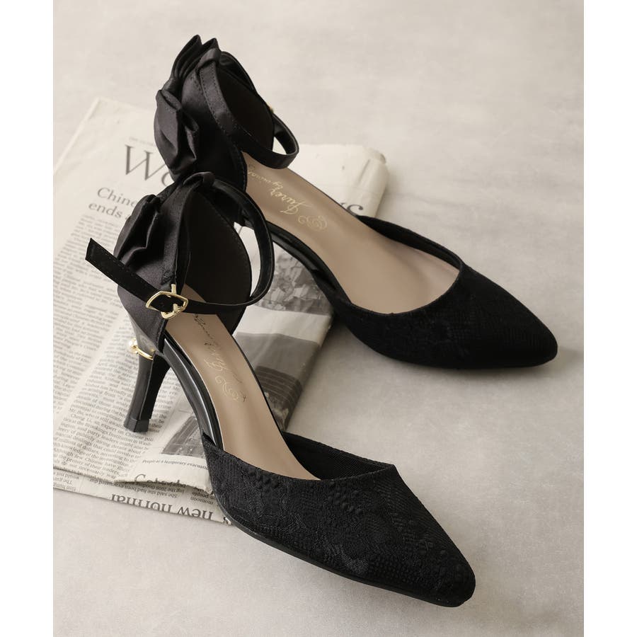 程良い高さの7.5cmピンヒールで安定感もあり、立体感のあるバックリボンとパールリング付きヒールでエレガントな美脚を演出!