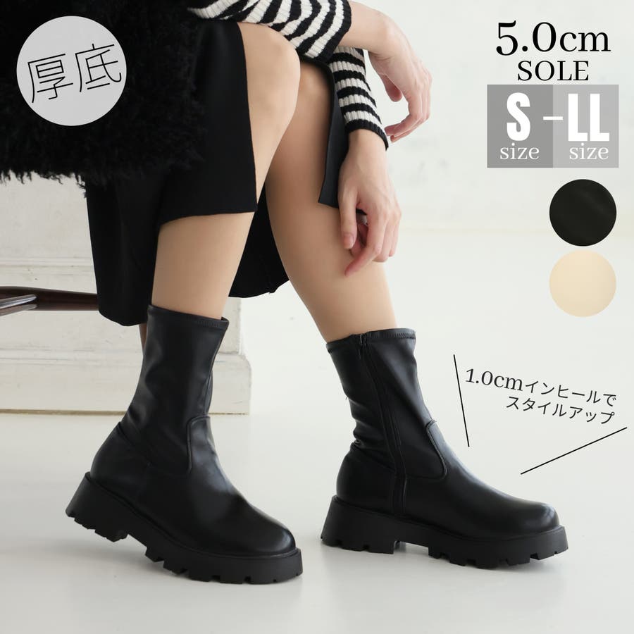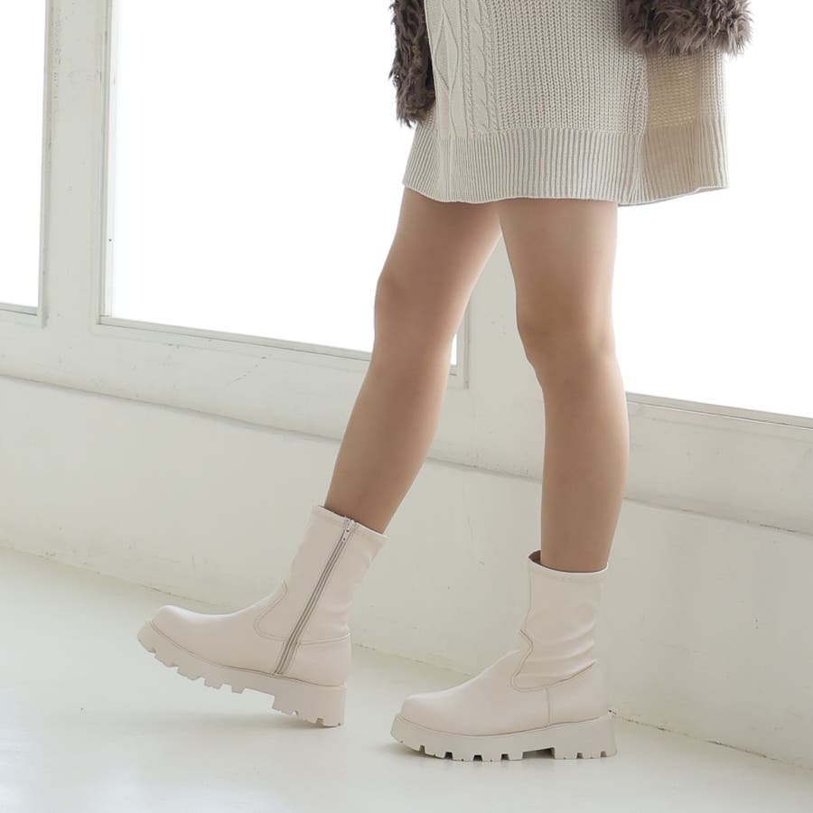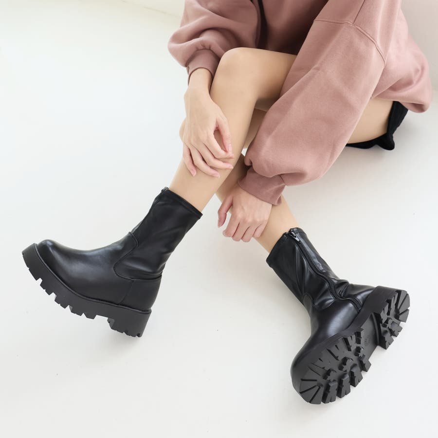 【厚底ソール☆インヒール ストレッチ ミドルブーツ】