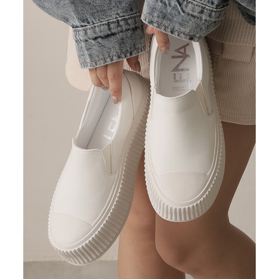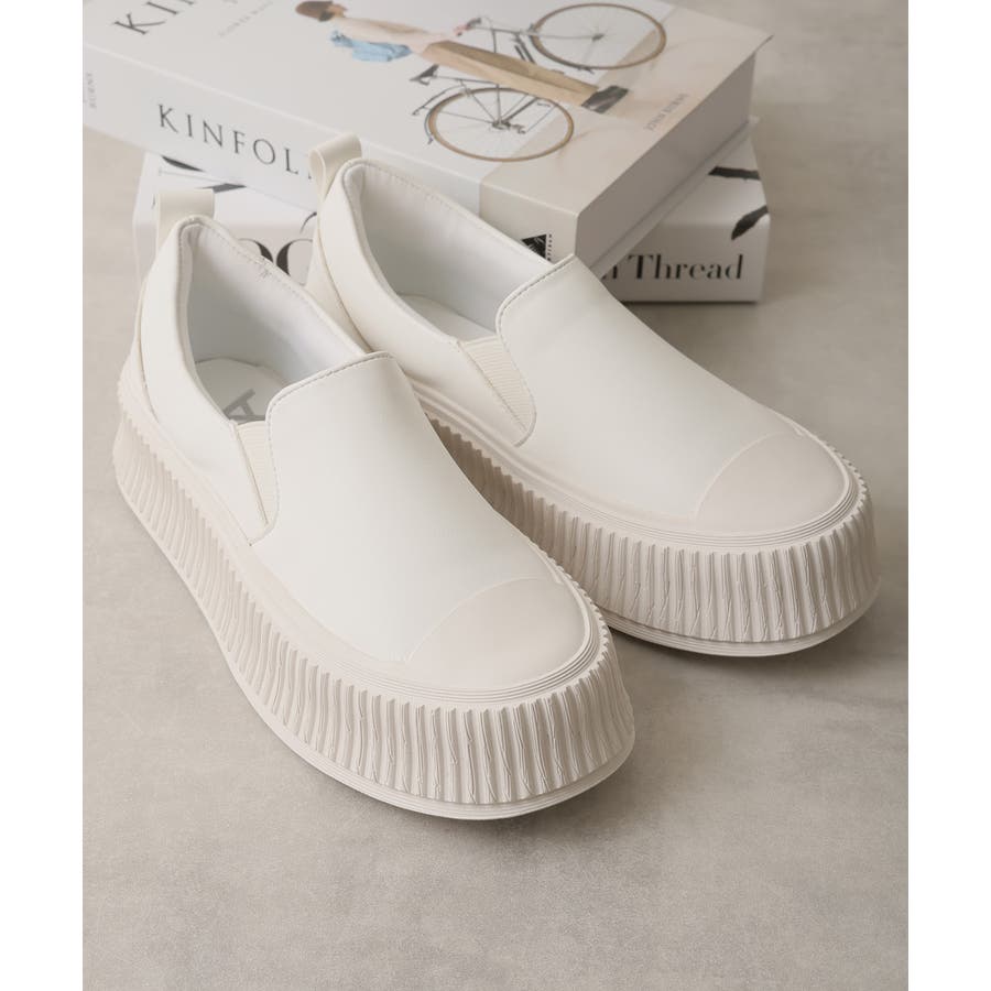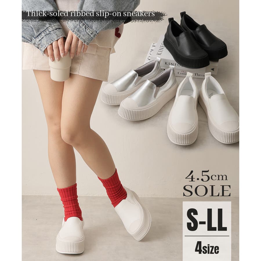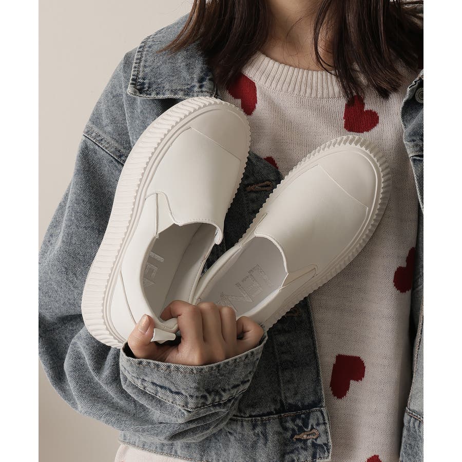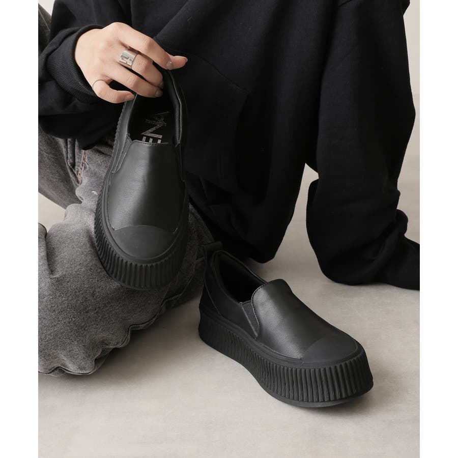 定番のスリッポンデザインも厚底リブソールで今っぽい足元に!
