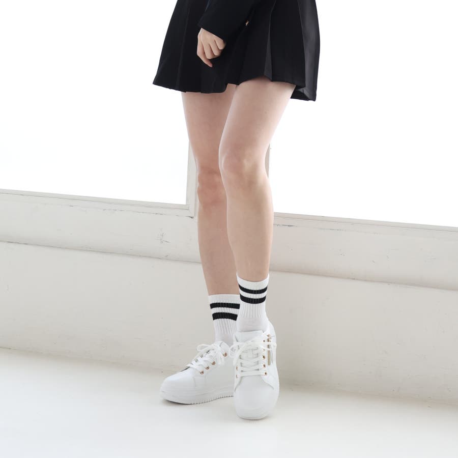 【軽量 厚底ソール サイドジップ レースアップ スニーカー】