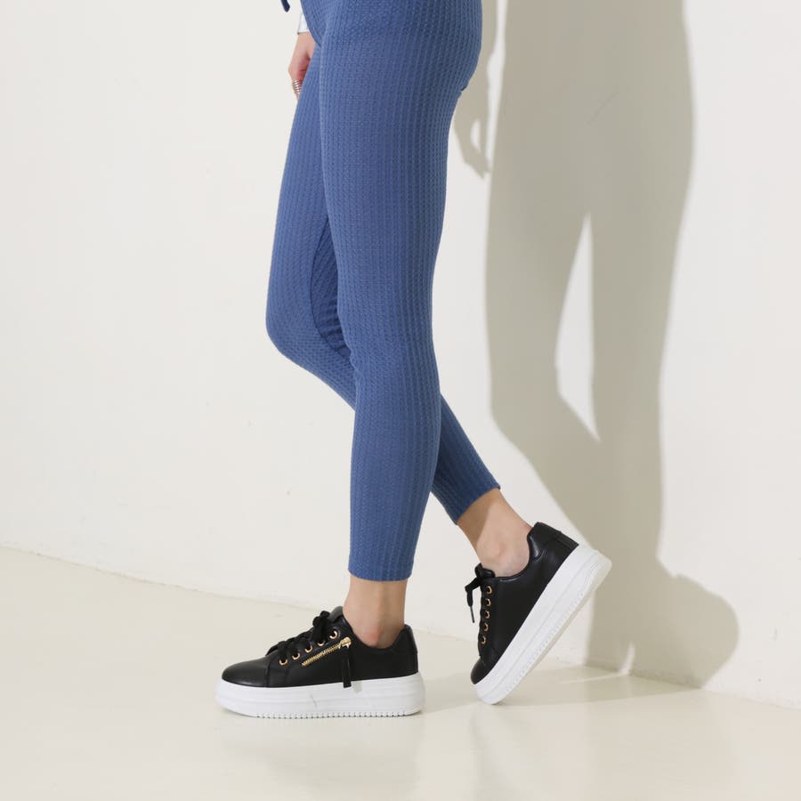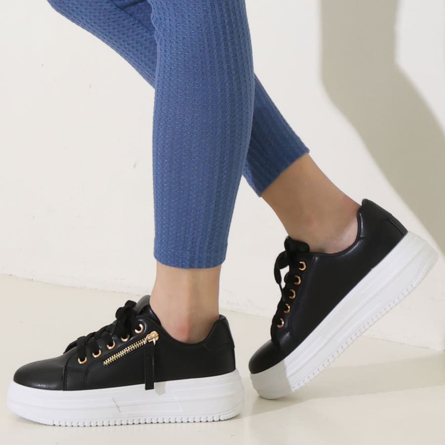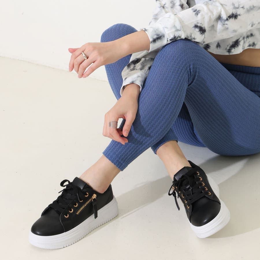 【24年春夏新作】軽量 厚底ソール サイドジップ レースアップ スニーカー