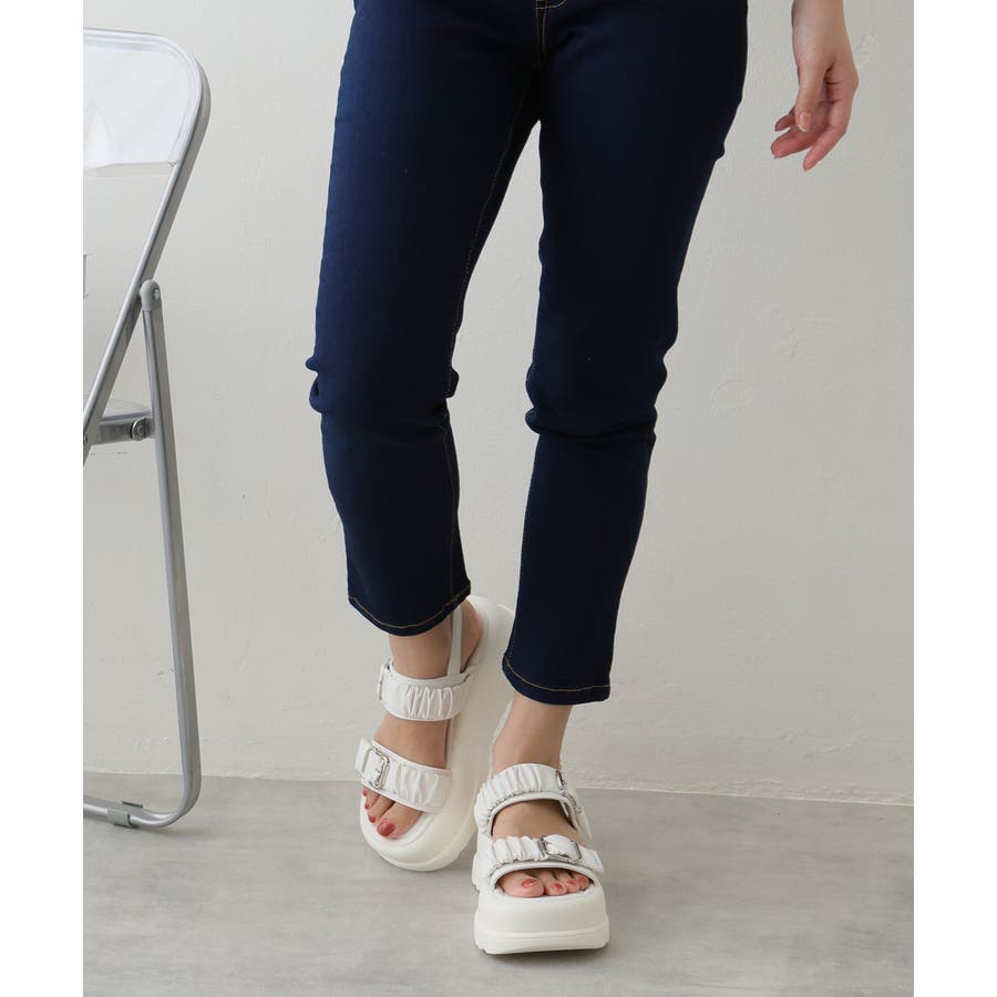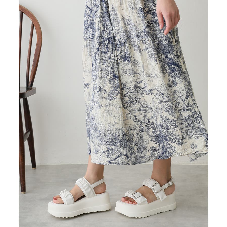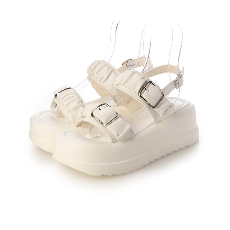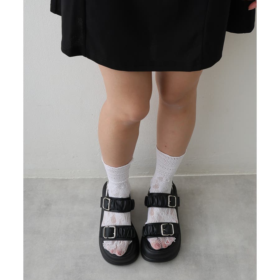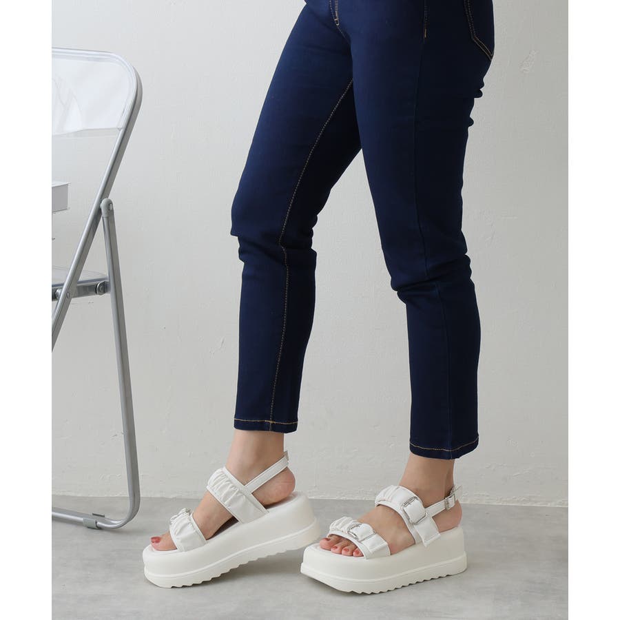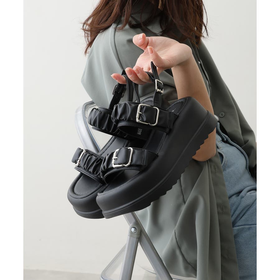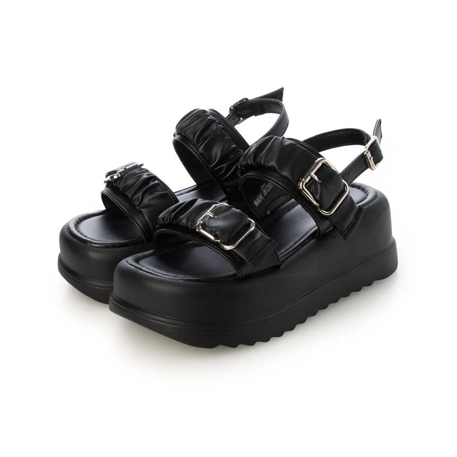 クシュっとシャーリングデザインのダブルベルトが個性的なサンダルです。