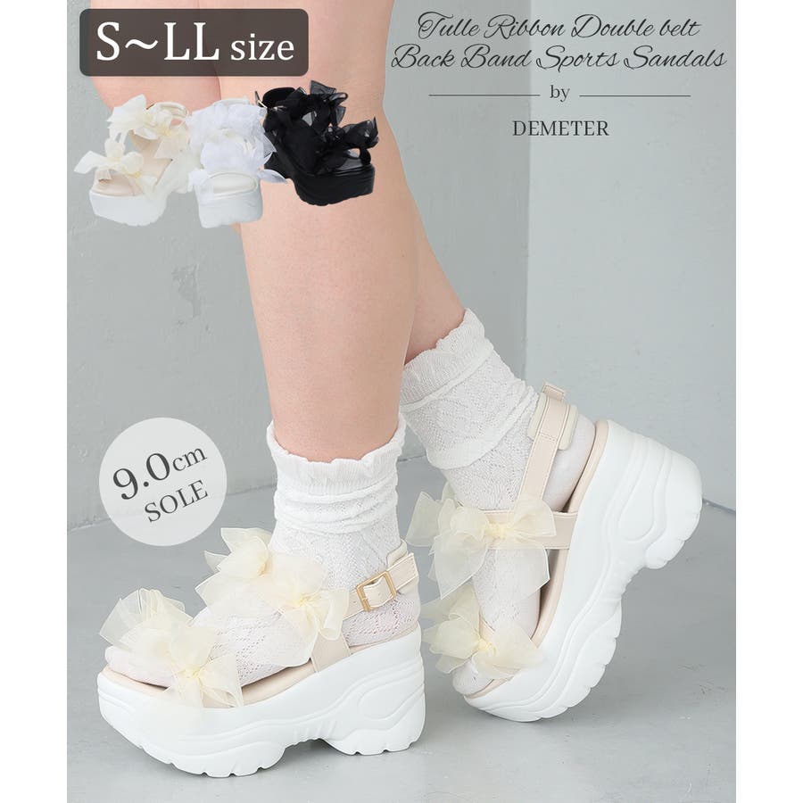 レディース/DMTR/DEMETER/デメテル/シューズ/靴/パンプス/スニーカー/ダッドスニーカー/ボリュームスニーカー/サンダル/ローファー/マニッシュ/ブーツ/ショートブーツ/ロングブーツ/ヒール/チャンキーヒール/太ヒール/厚底/厚底ソール/ボリュームソール/プラットフォーム/バルキー/美脚/脚長/人気/プチプラ/韓国/韓国ファッション/おすすめ/カジュアル/キレイめ/おしゃれ/オシャレ/お洒落/秋/冬/秋冬/秋物/冬物/春/夏/春夏/春物/夏物/新作/AW/SS/セクシー/大人/ストリート/シンプル/スポサン/厚底スポサン/スポーツサンダル/厚底スポーツサンダル/厚底サンダル/リボン/チュールリボン/リボンデザイン/チュール/ダブルベルト/ベルトサンダル/バックバンド/ストラップ/ストラップサンダル/ゴム/ゴムストラップ/ゴムバンド/ソックスコーデ/ソックス合わせ/ソックススタイル/トレンド/ガーリー/キュート/フェミニン/スタイルアップ/デイリー/安定感/歩きやすい/履きやすい/S/M/L/LL/黒/ブラック/BLACK/白/ホワイト/WHITE/ベージュ/BEIGE/スムース